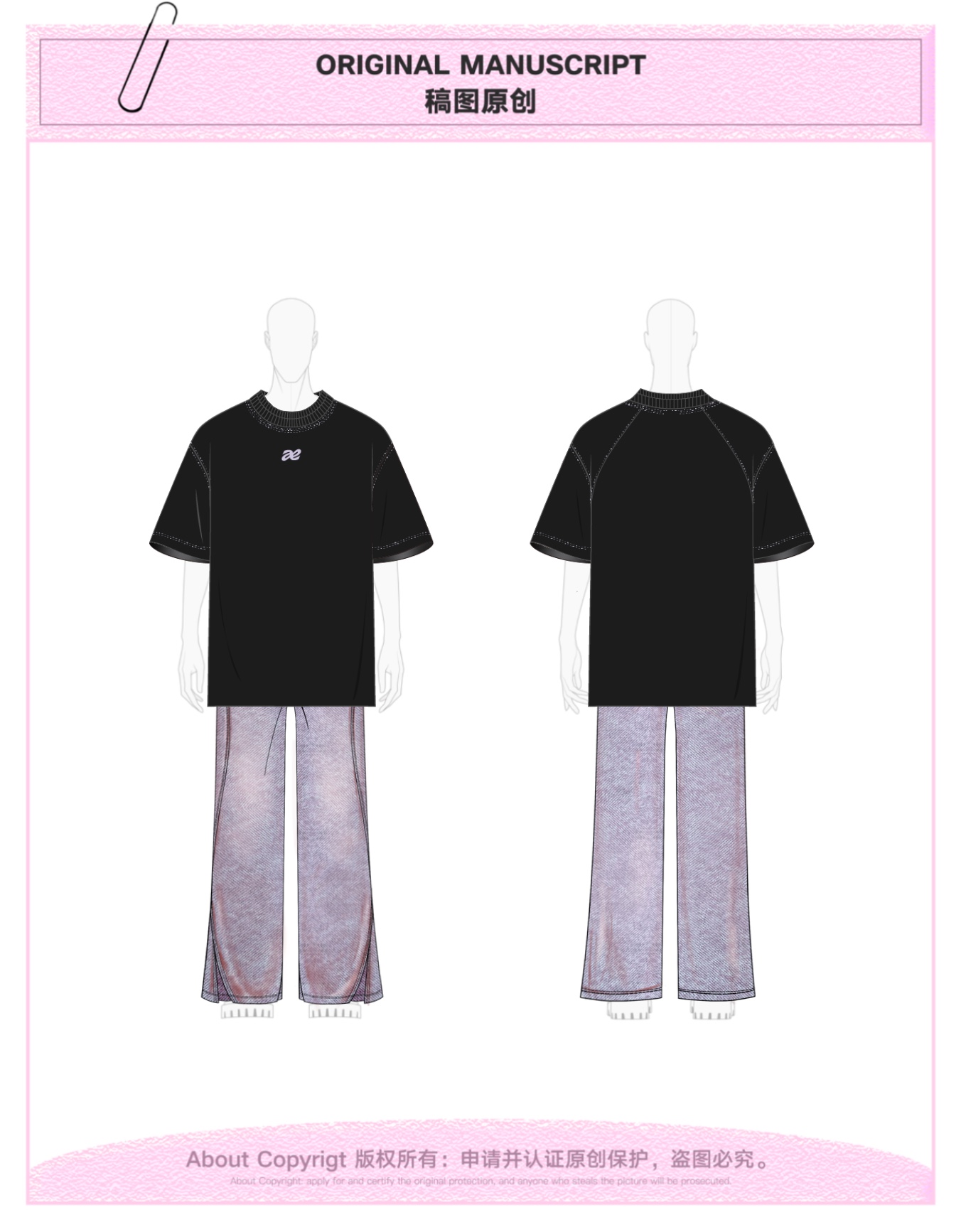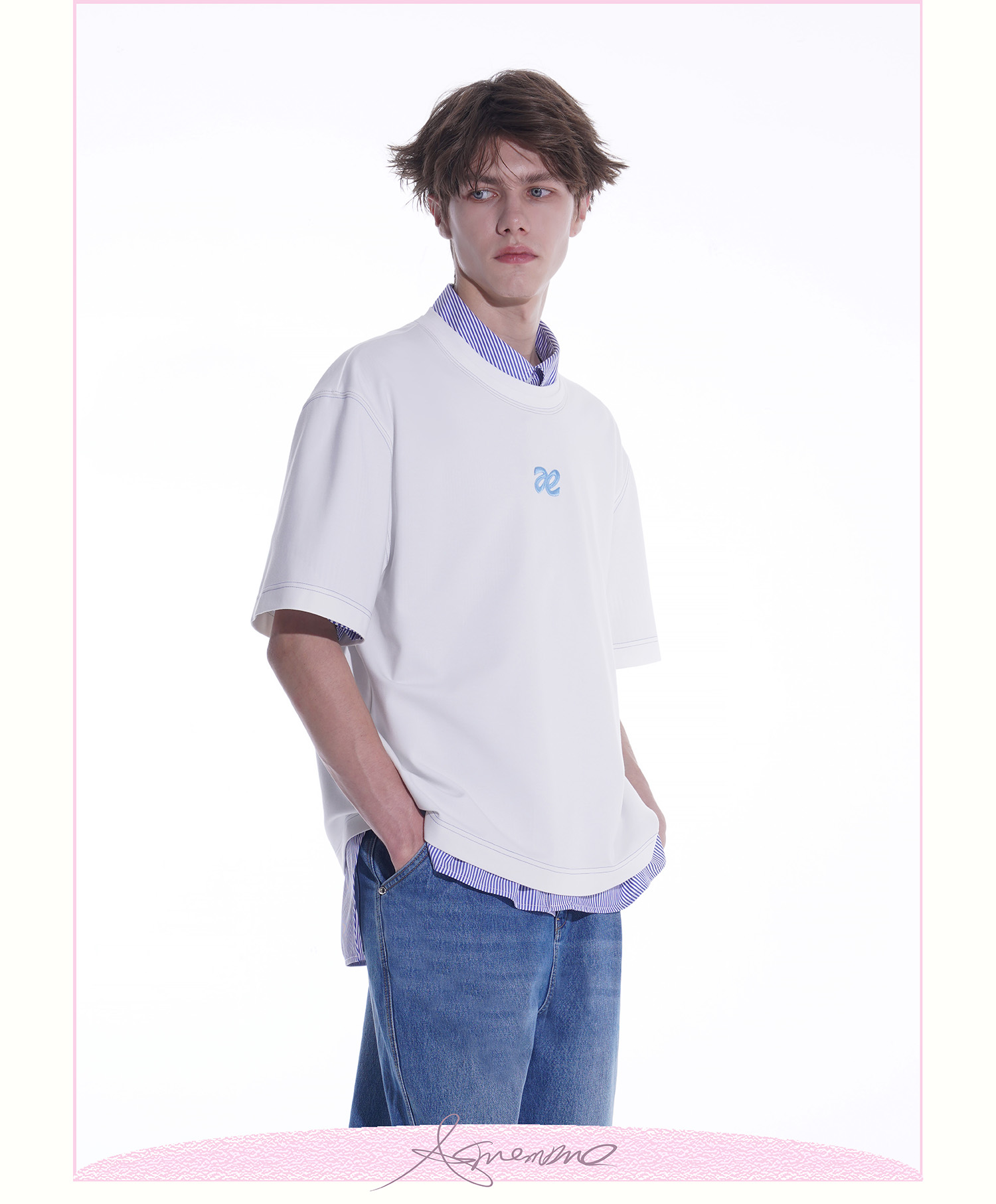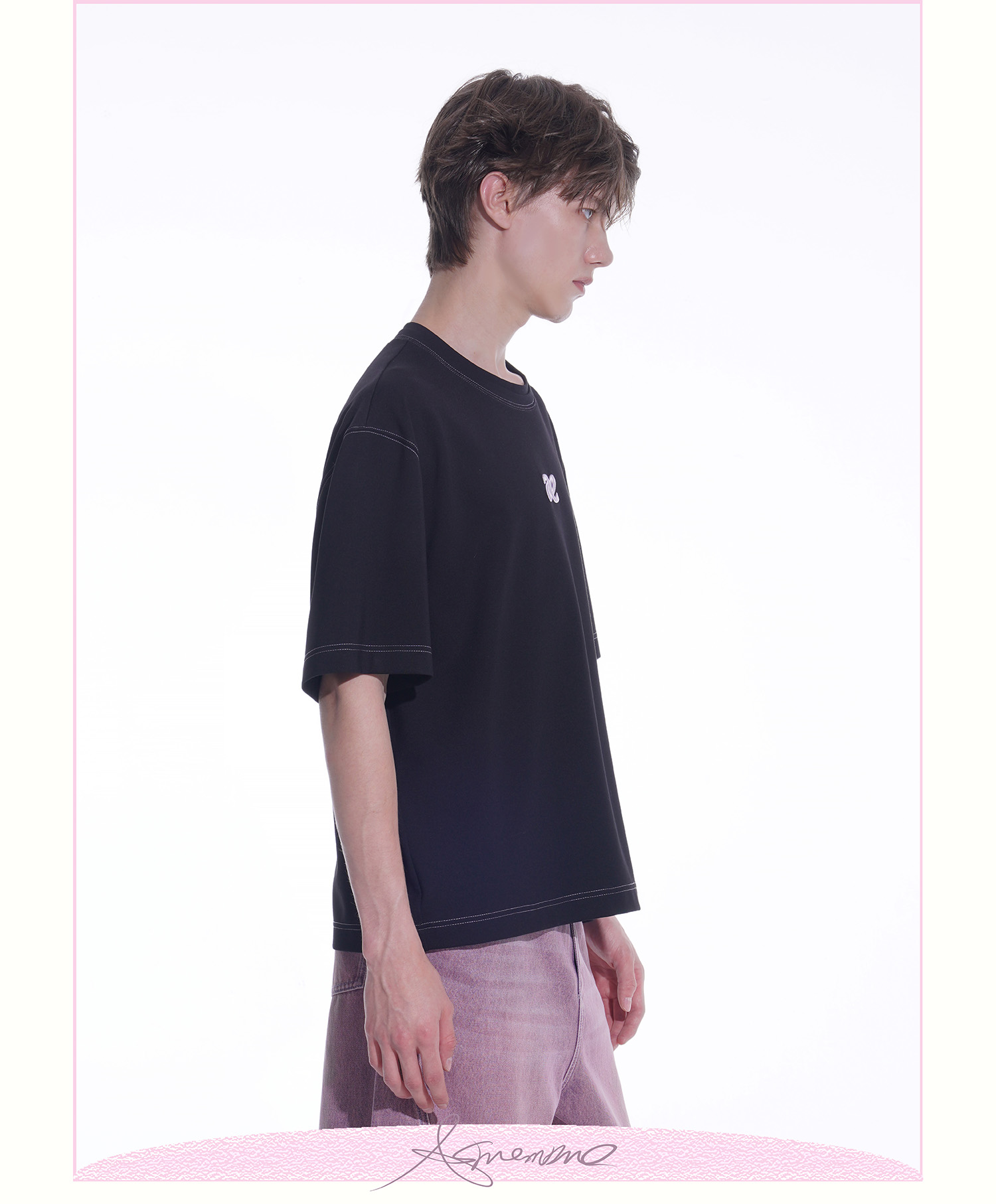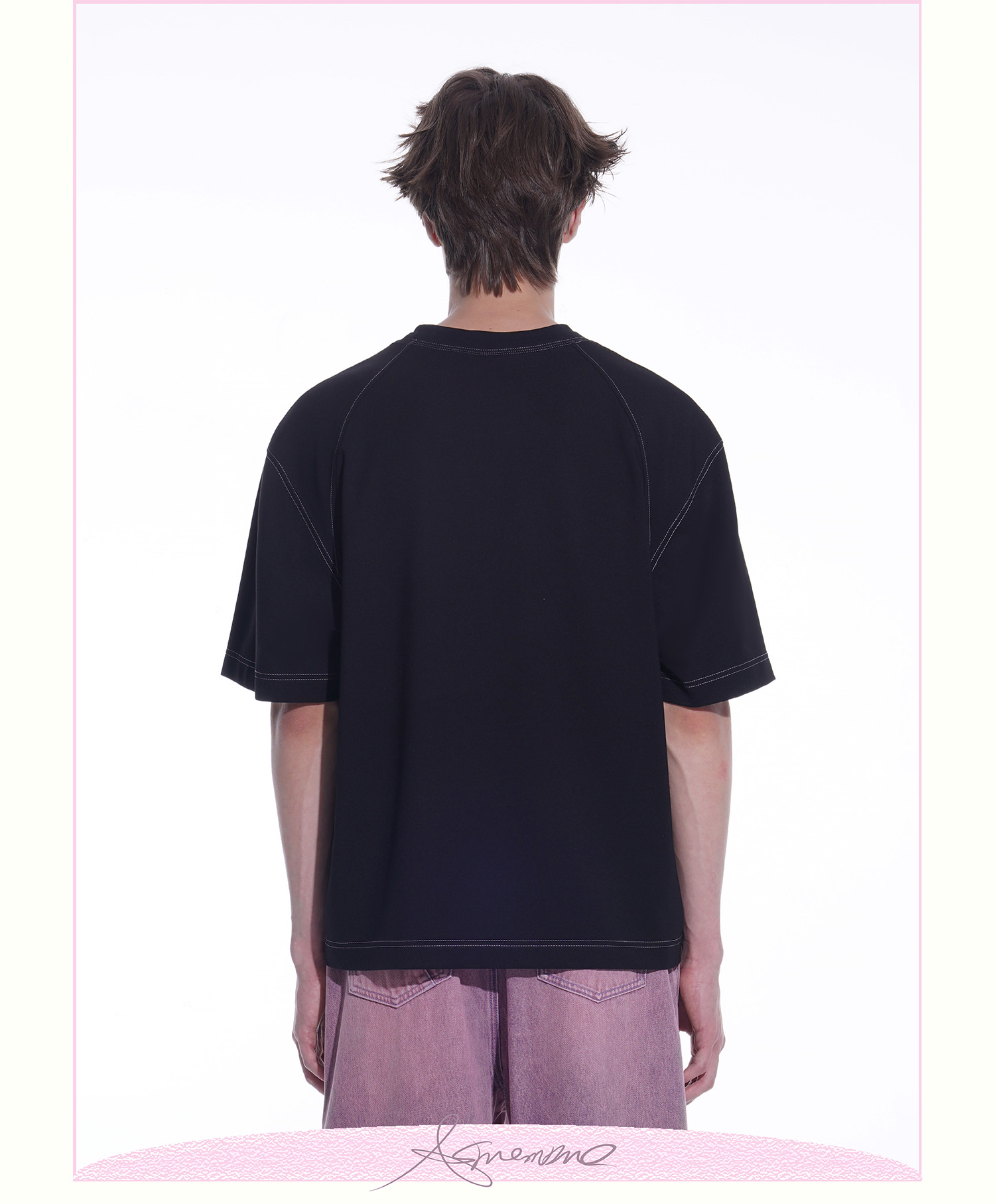 ASMEMMO咦哇•“留声唱片机”撞色绣花T恤
