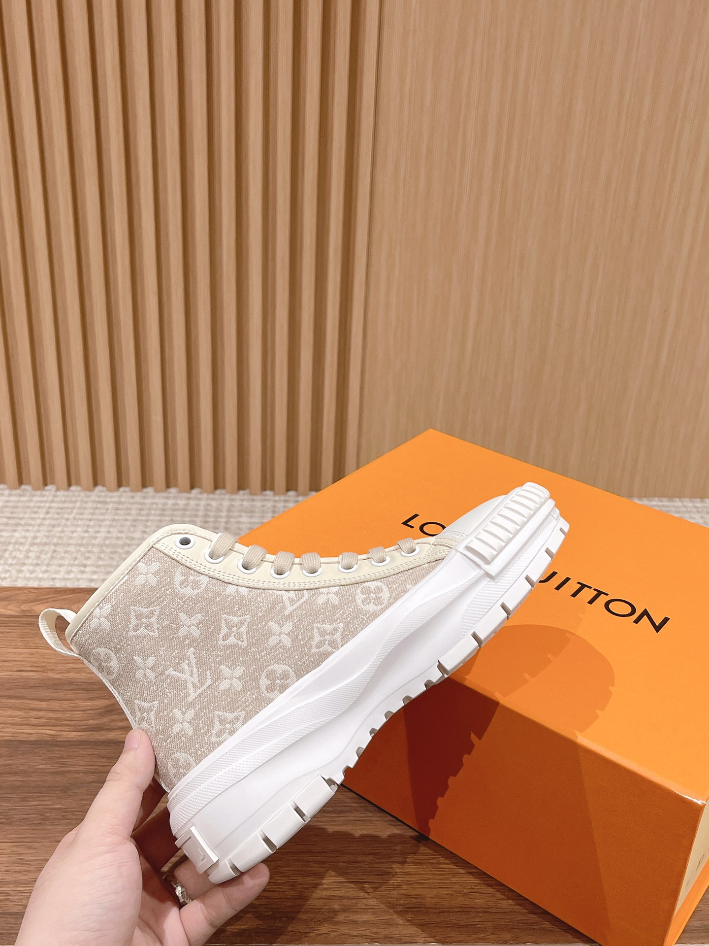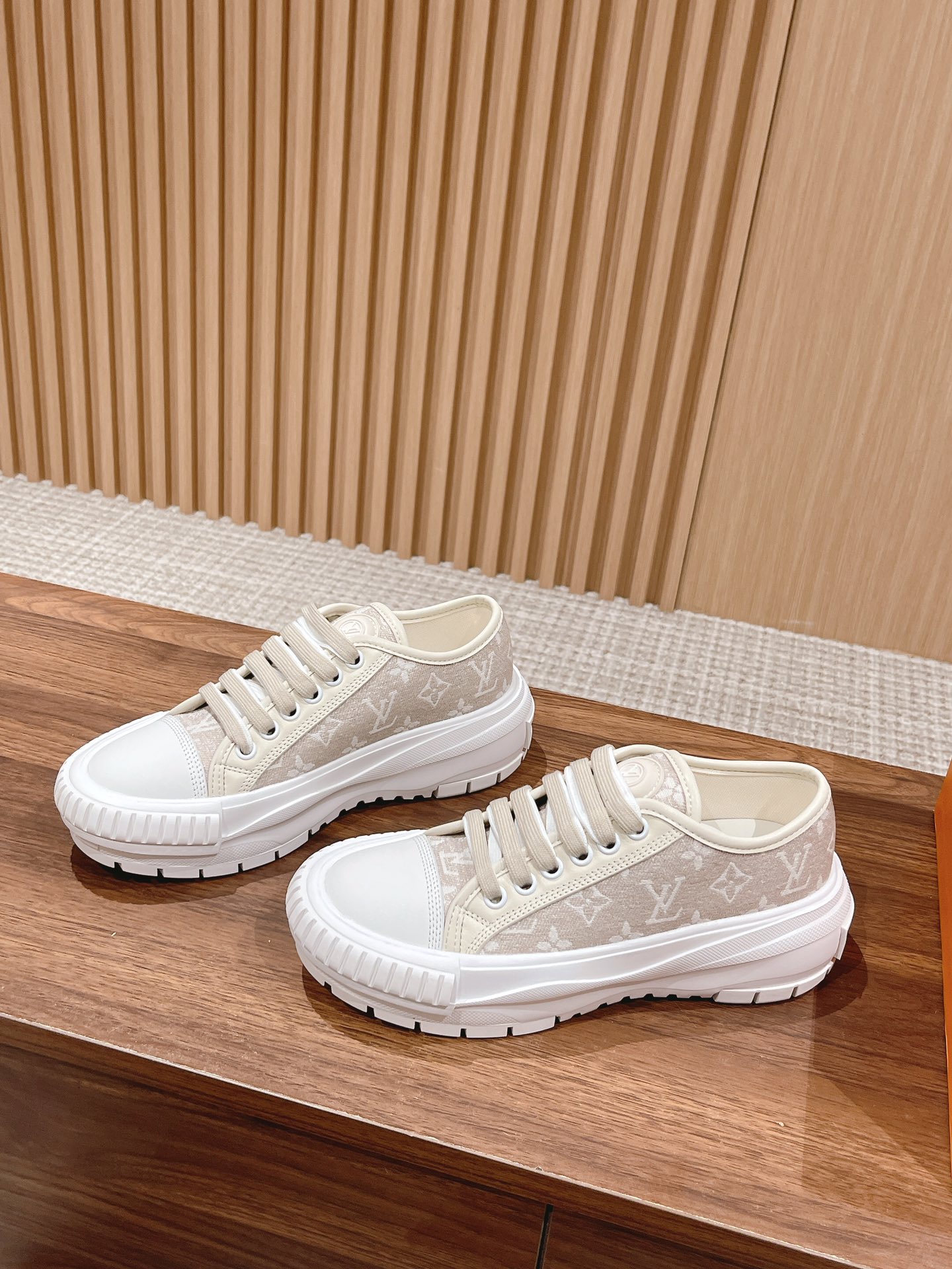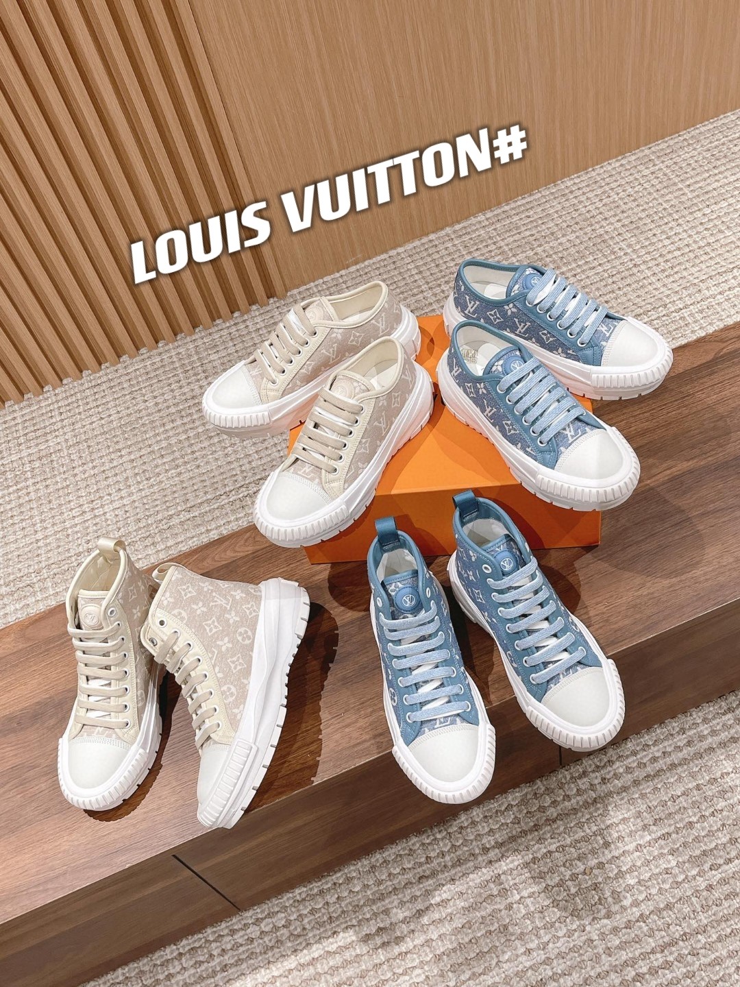 本款#LV Squad 运动鞋以 Monogram 牛仔布展露夏日清新。加厚凸纹橡胶外底不失轻盈,双鞋带、漆光孔眼和鞋舌的 LV Circle 橡胶贴饰丰富细节。