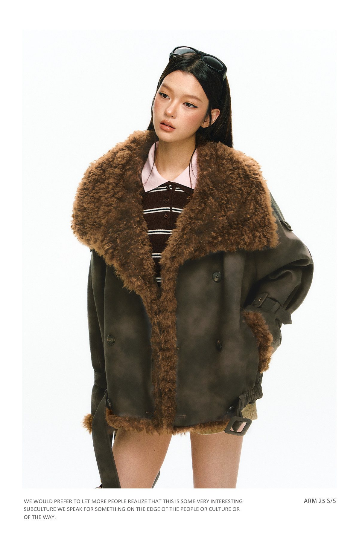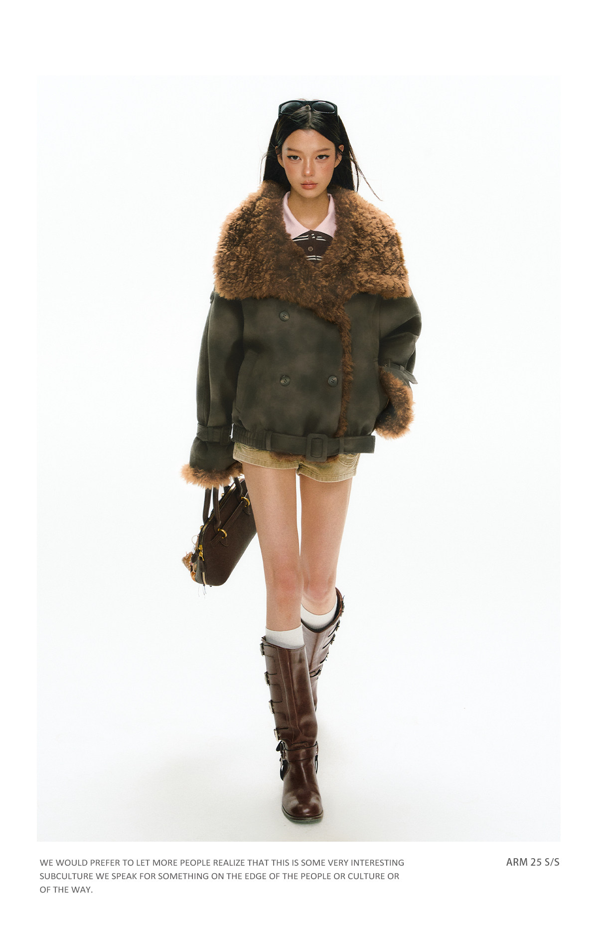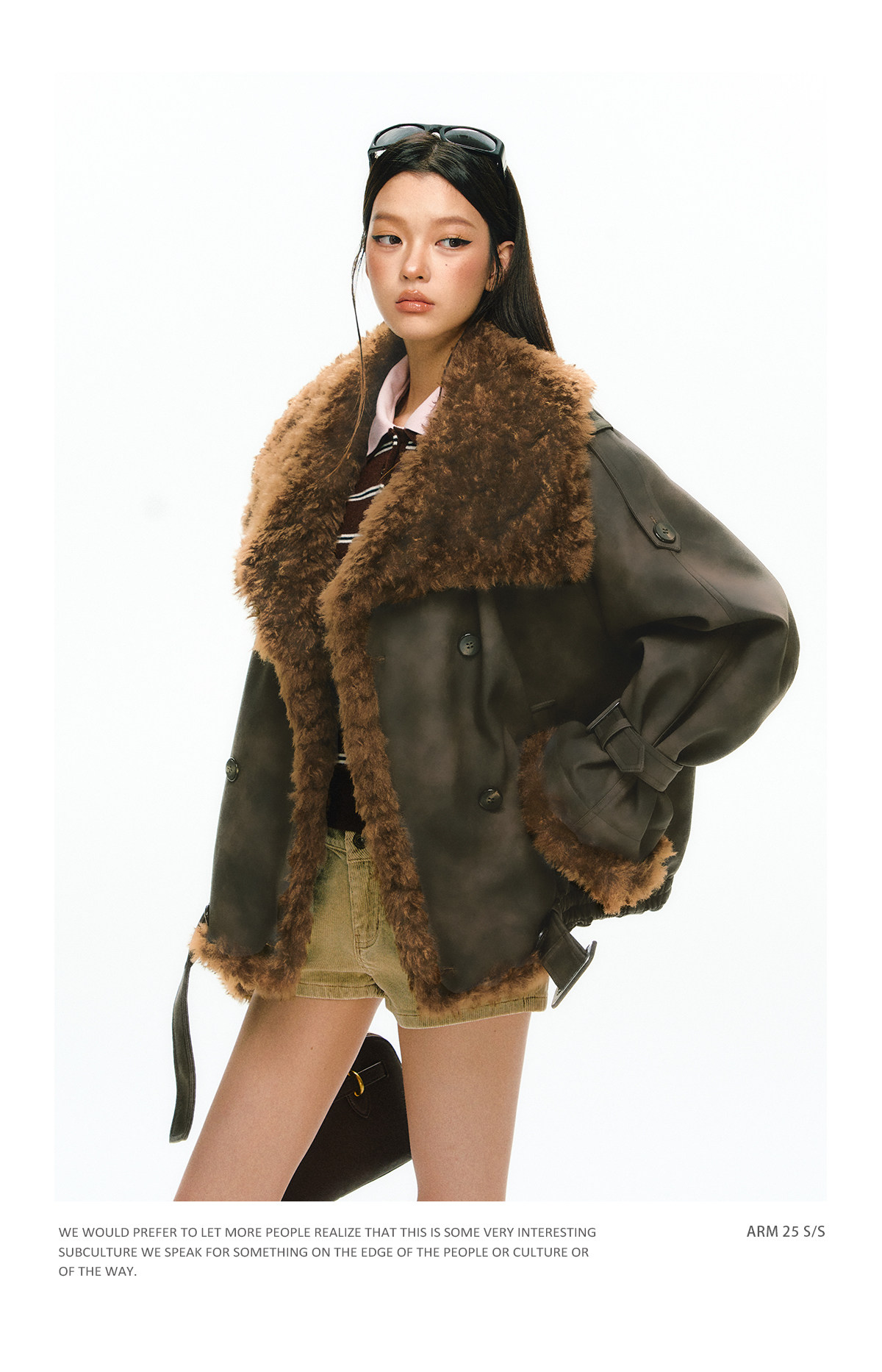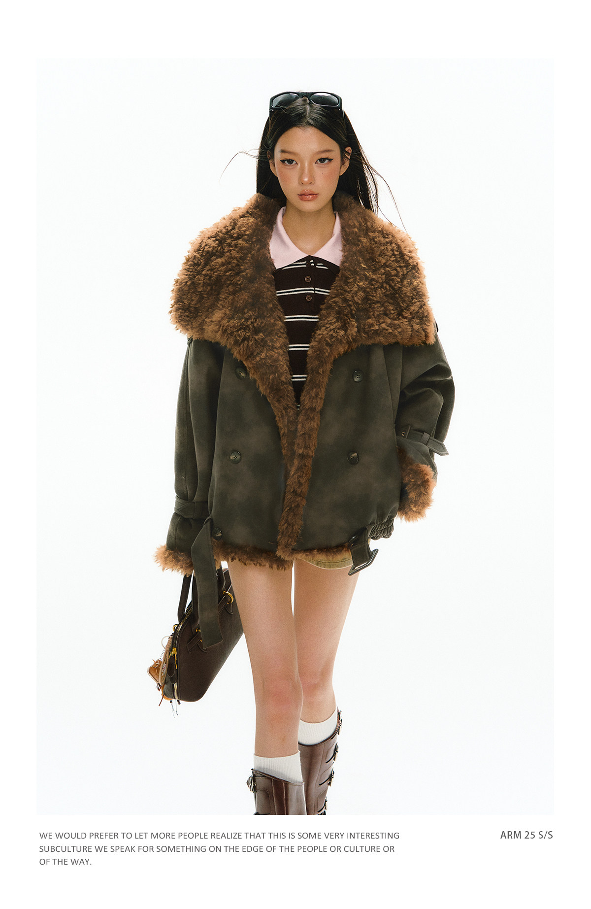 Ariseism 美式复古设计感仿皮草棉服女冬季新款加厚保暖上衣