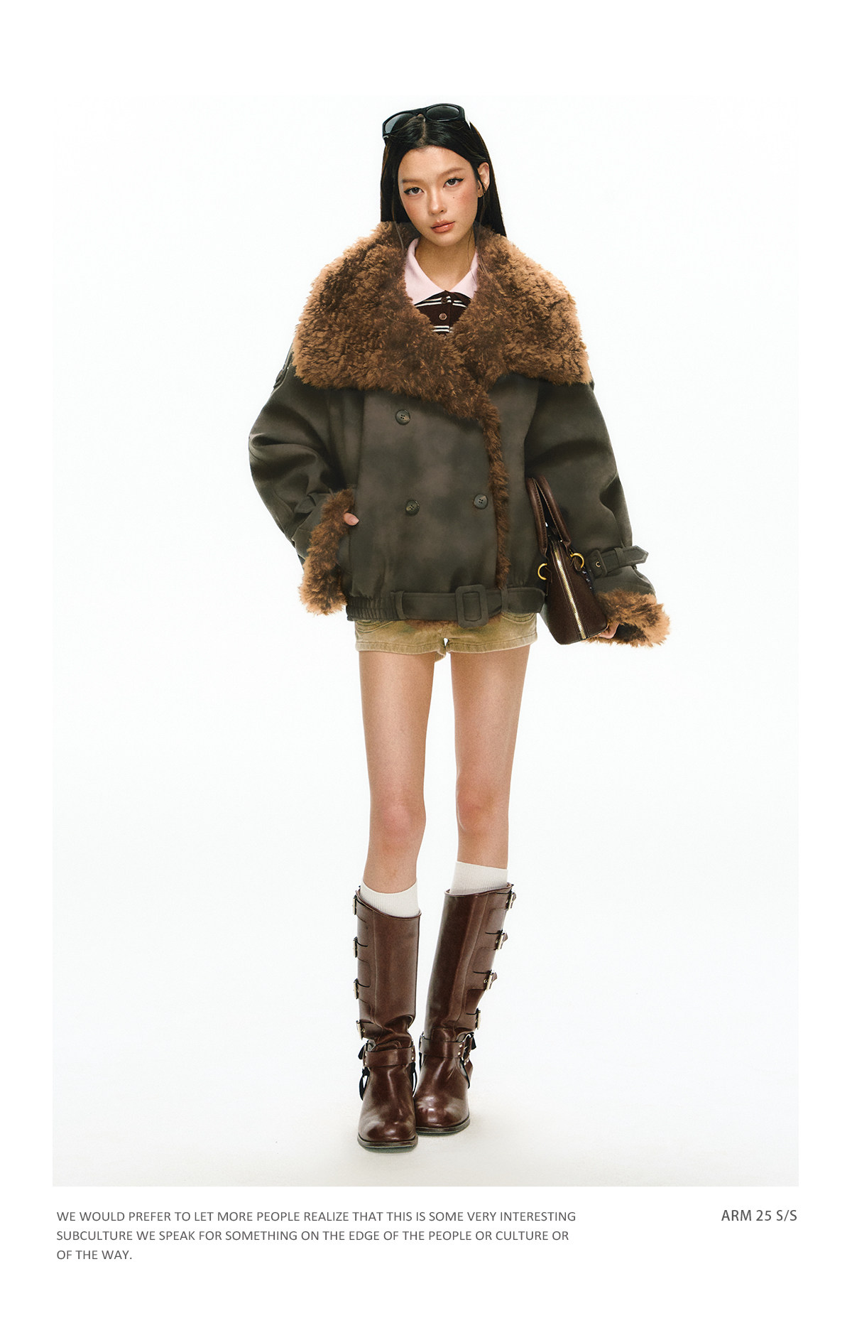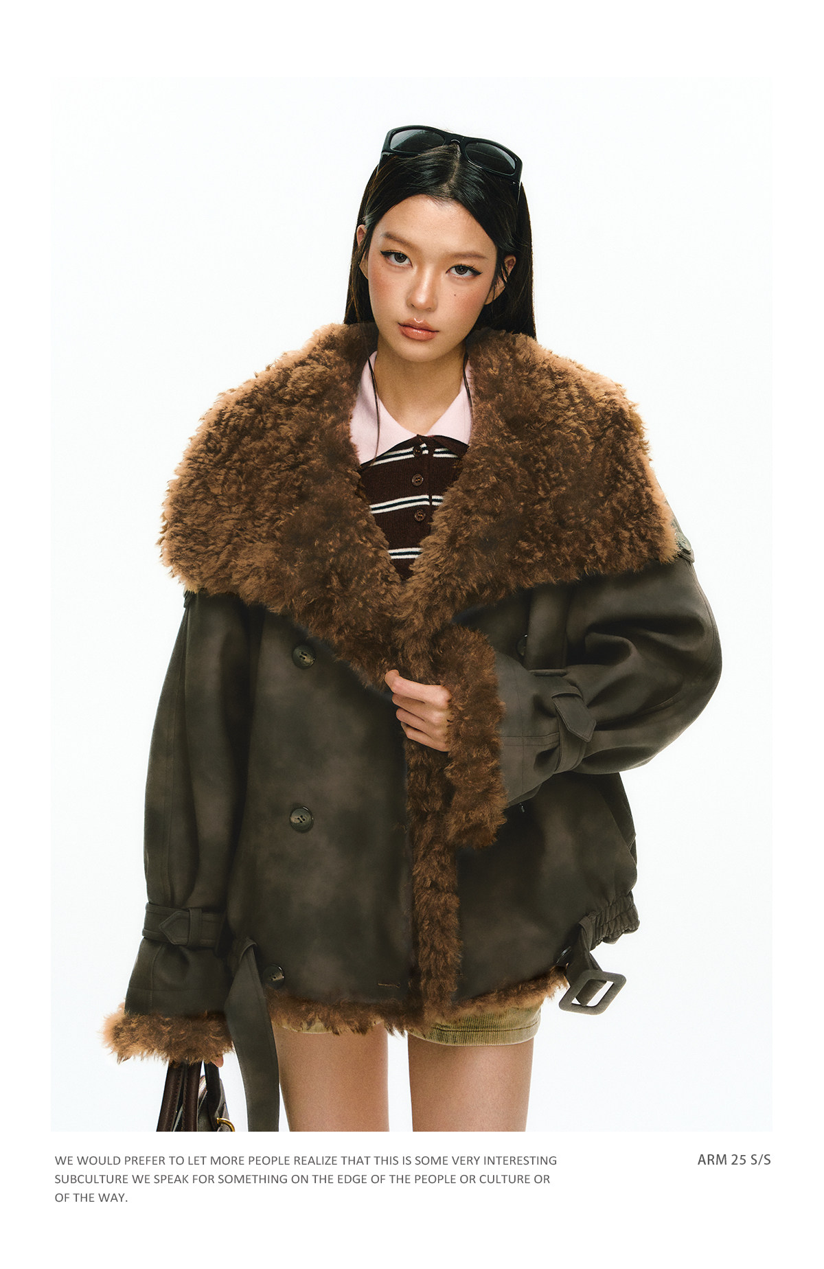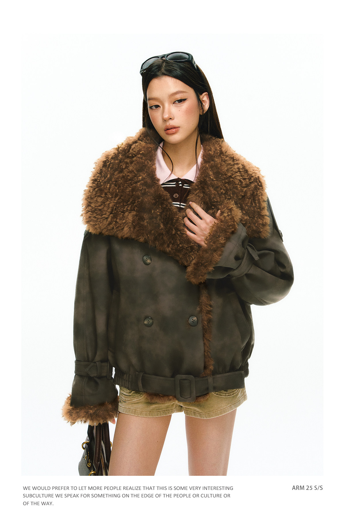 Ariseism 美式复古设计感仿皮草棉服女冬季新款加厚保暖上衣