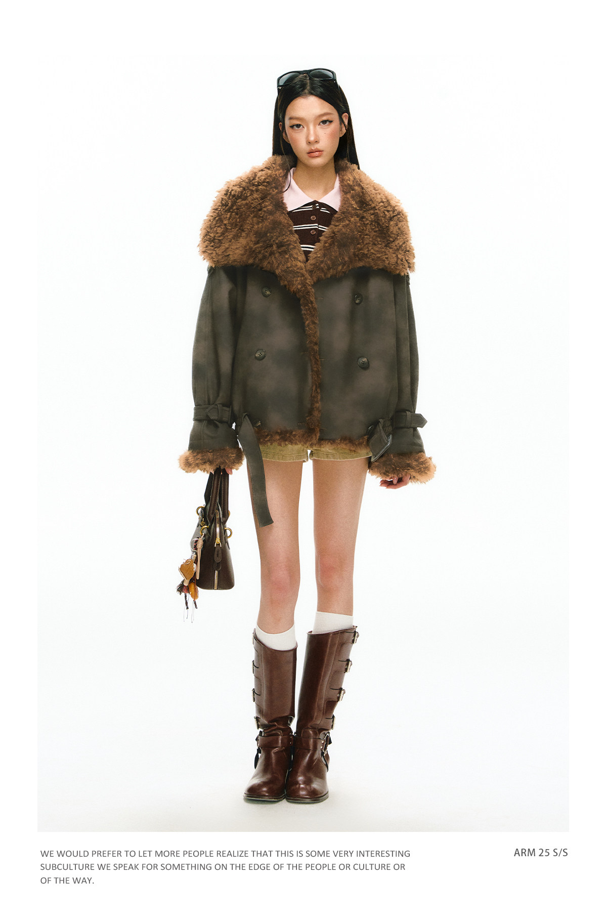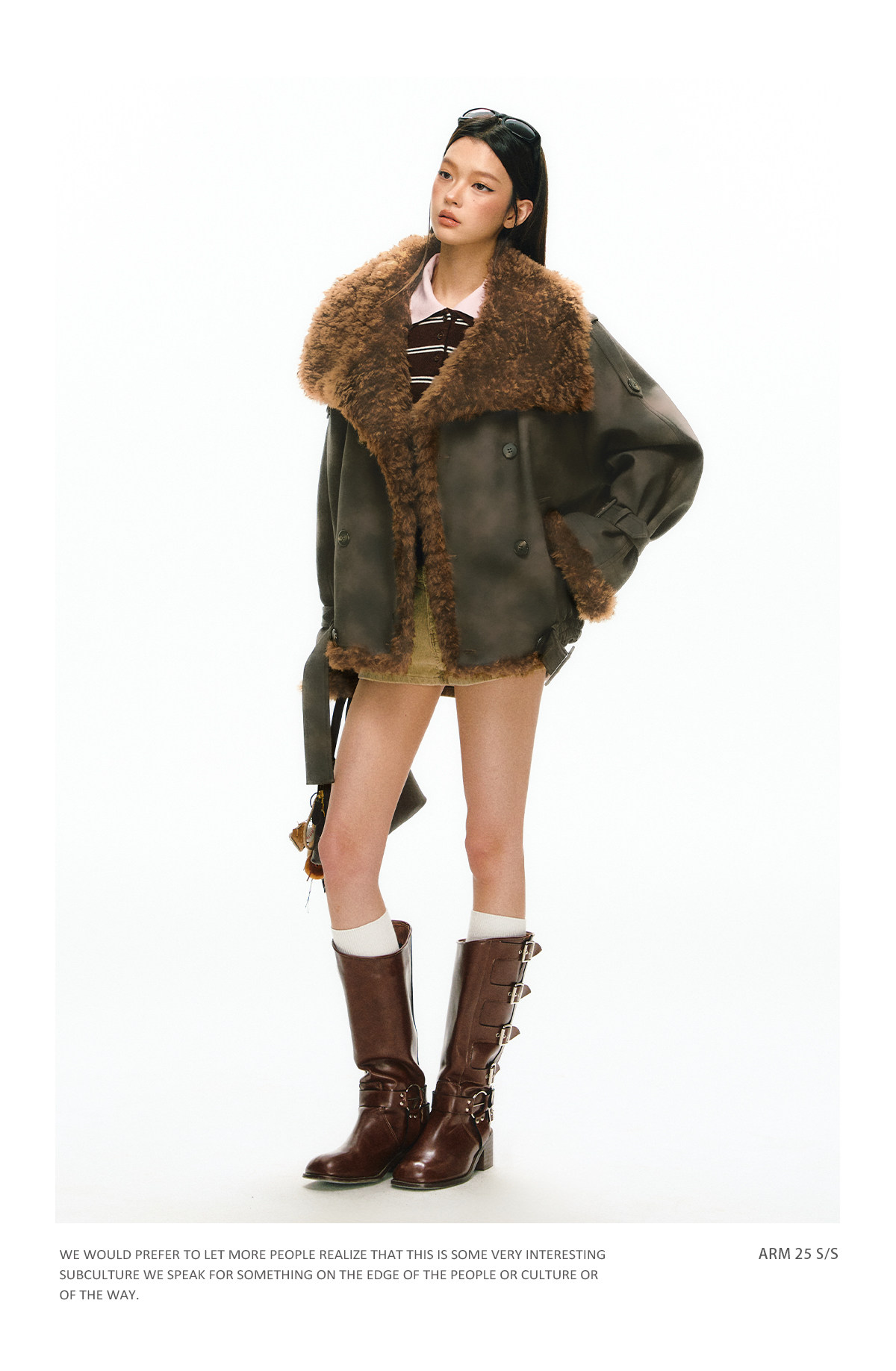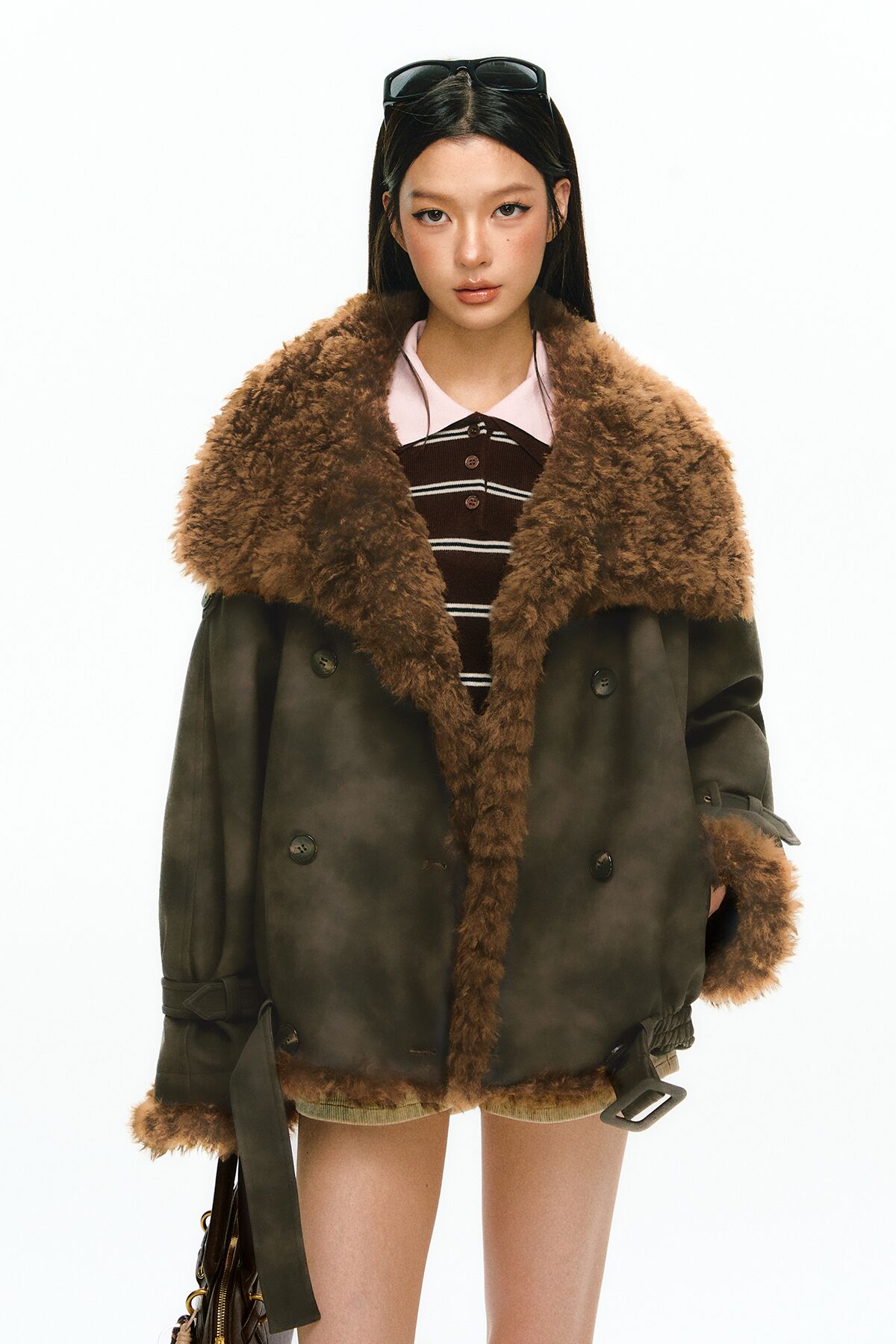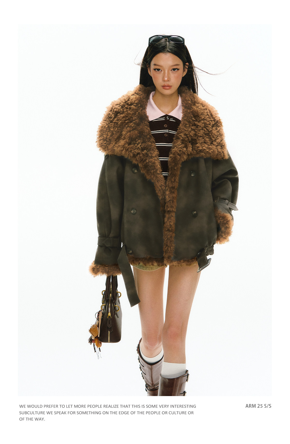 Ariseism 美式复古设计感仿皮草棉服女冬季新款加厚保暖上衣