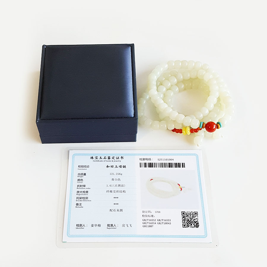 【天然正品】天然新疆料细腻桶珠约9.2MM和田玉珠串项链9.2MM(皆取最大值)链长:44CM女士311025AH21