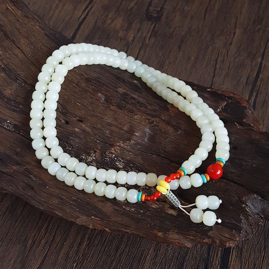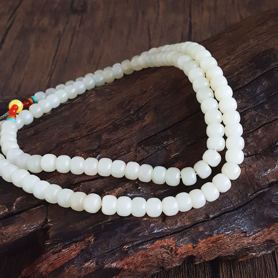 名称 | 天然新疆料细腻桶珠约9.2MM和田玉珠串项链 |