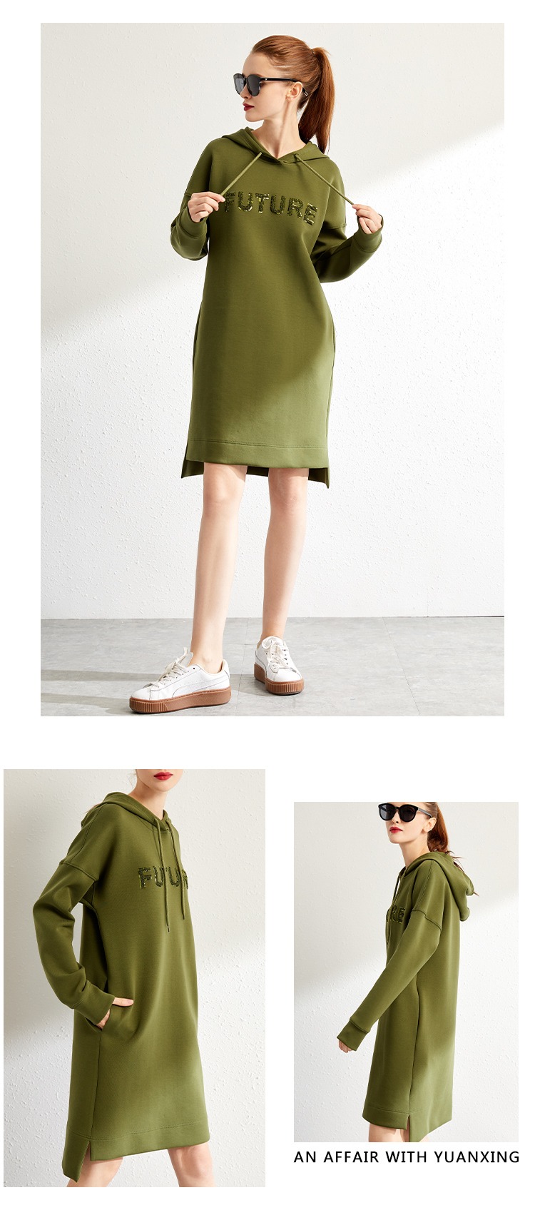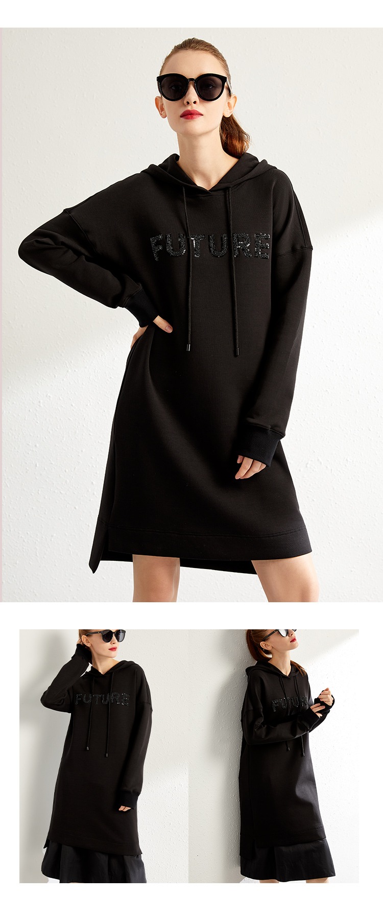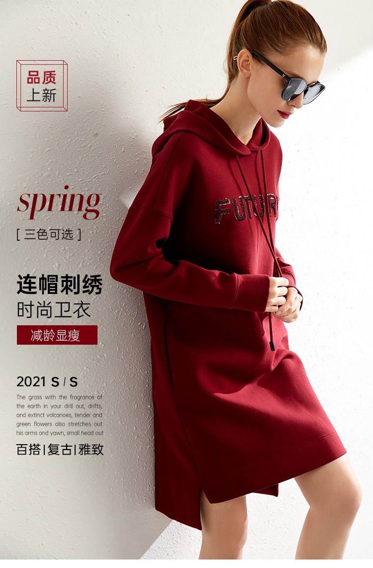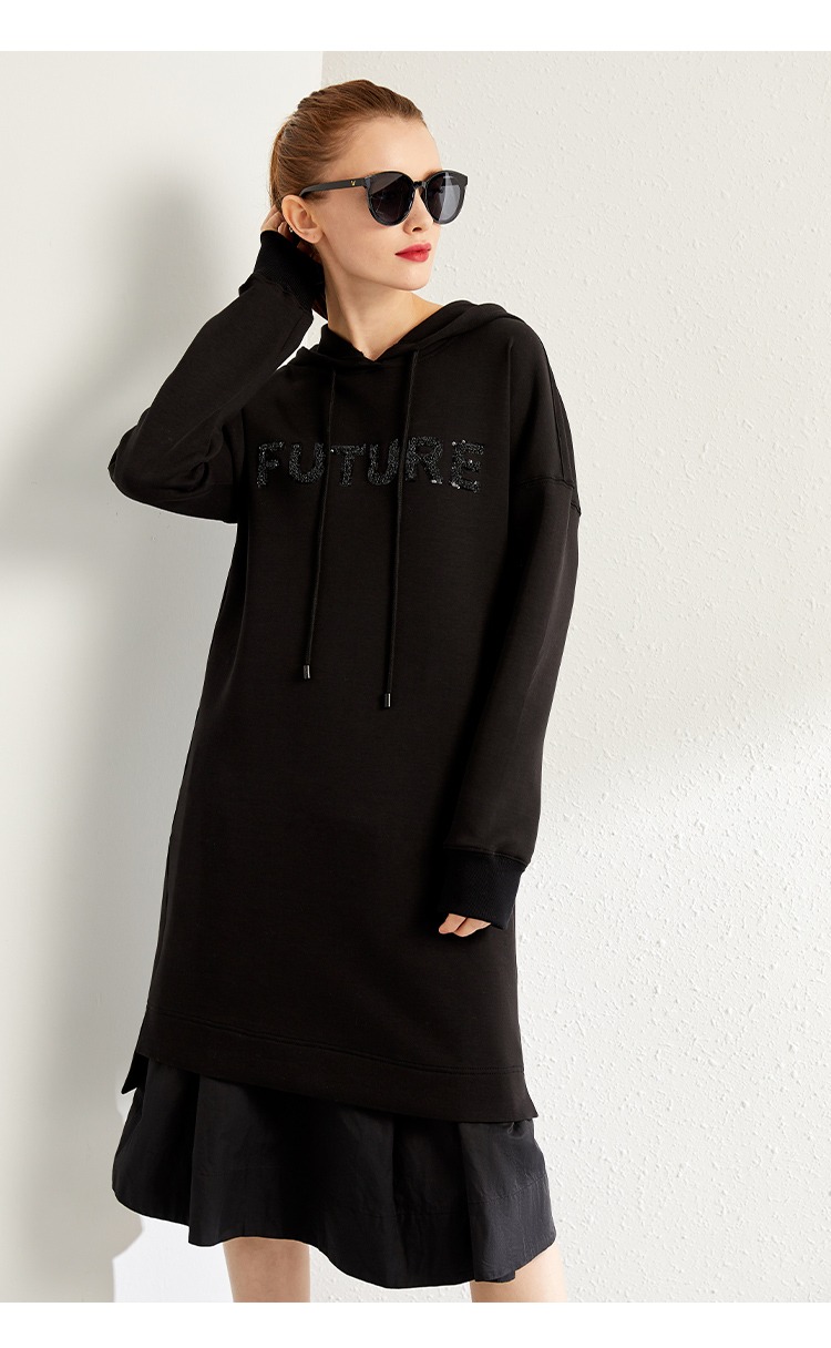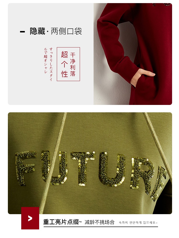 【秋季新款】中长款连帽卫衣女宽松时尚2023秋季新款韩版长款刺绣休闲外套
