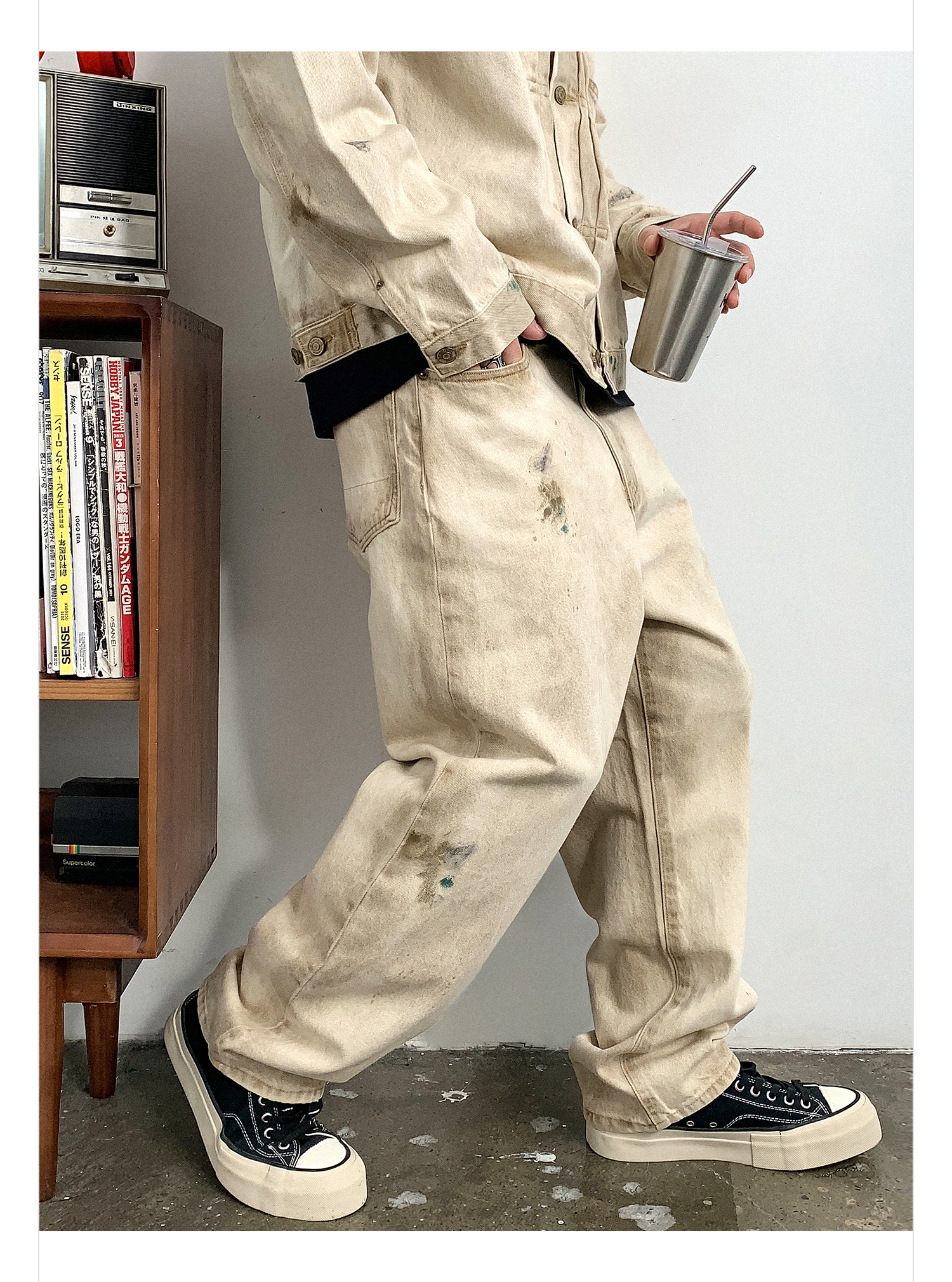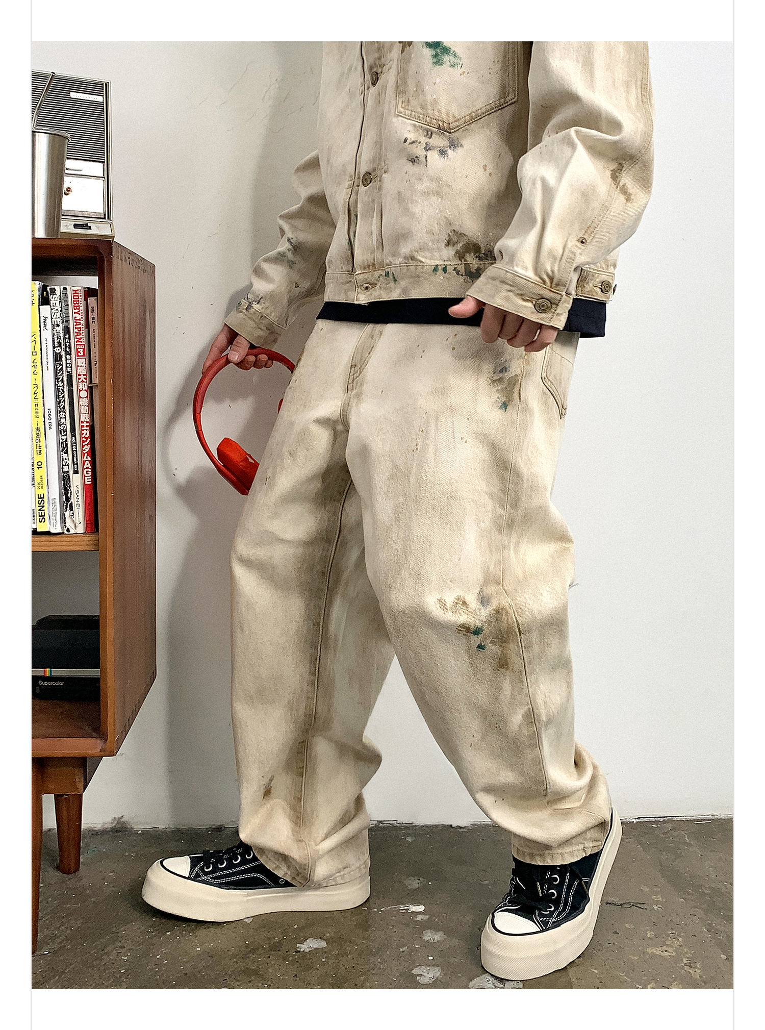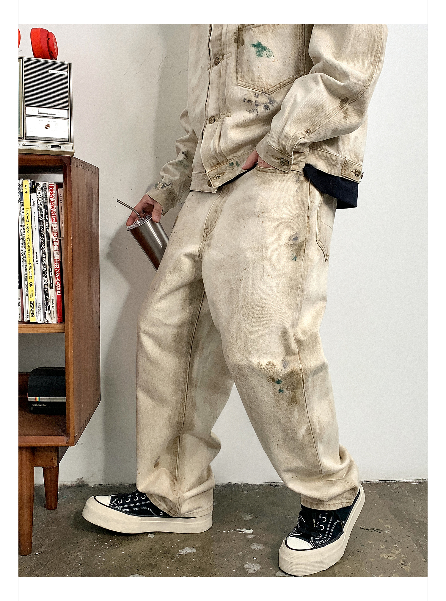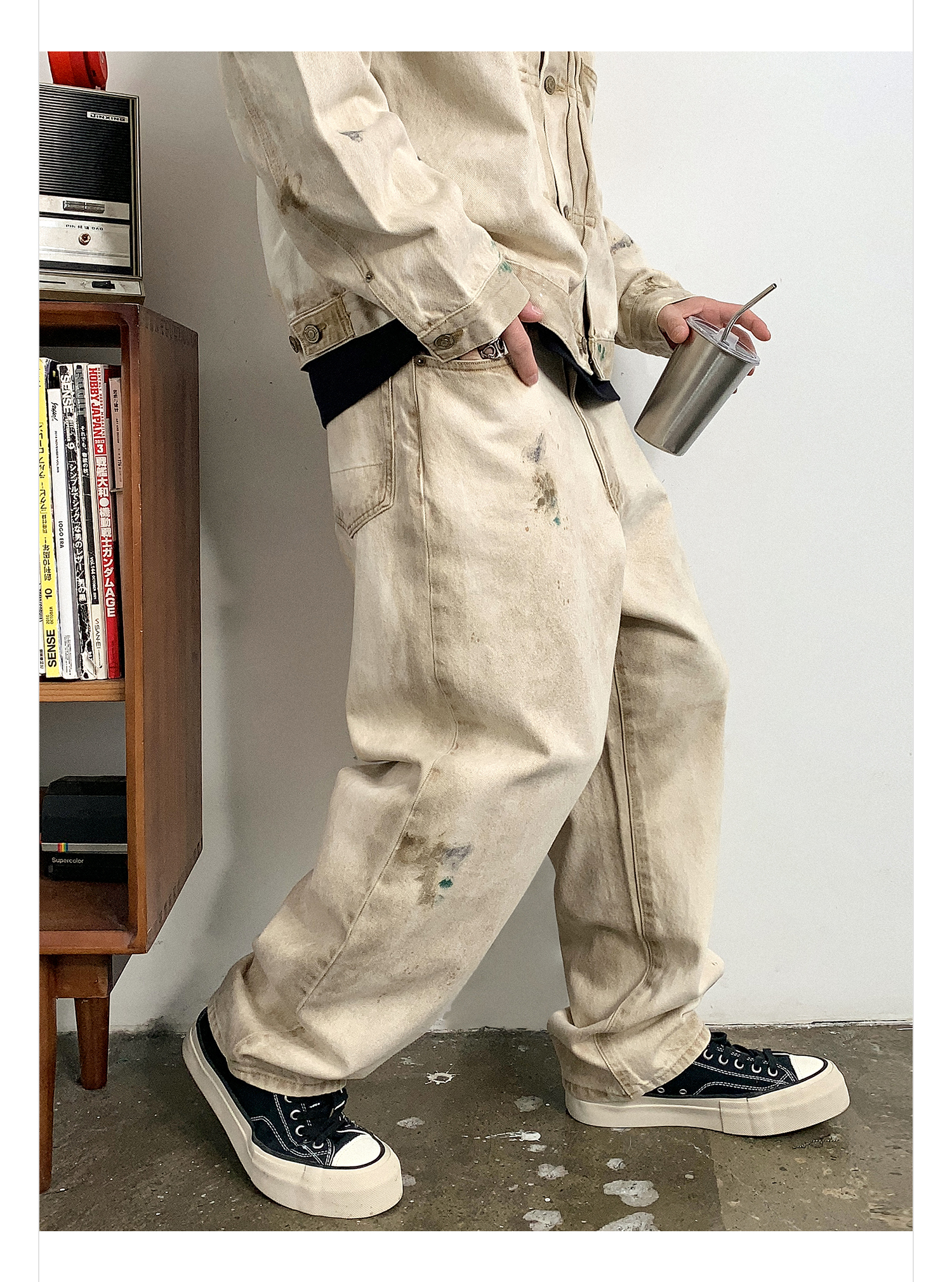 徐太浪美式高街做旧脏脏直筒休闲裤男春秋宽松个性运动阔腿长裤子