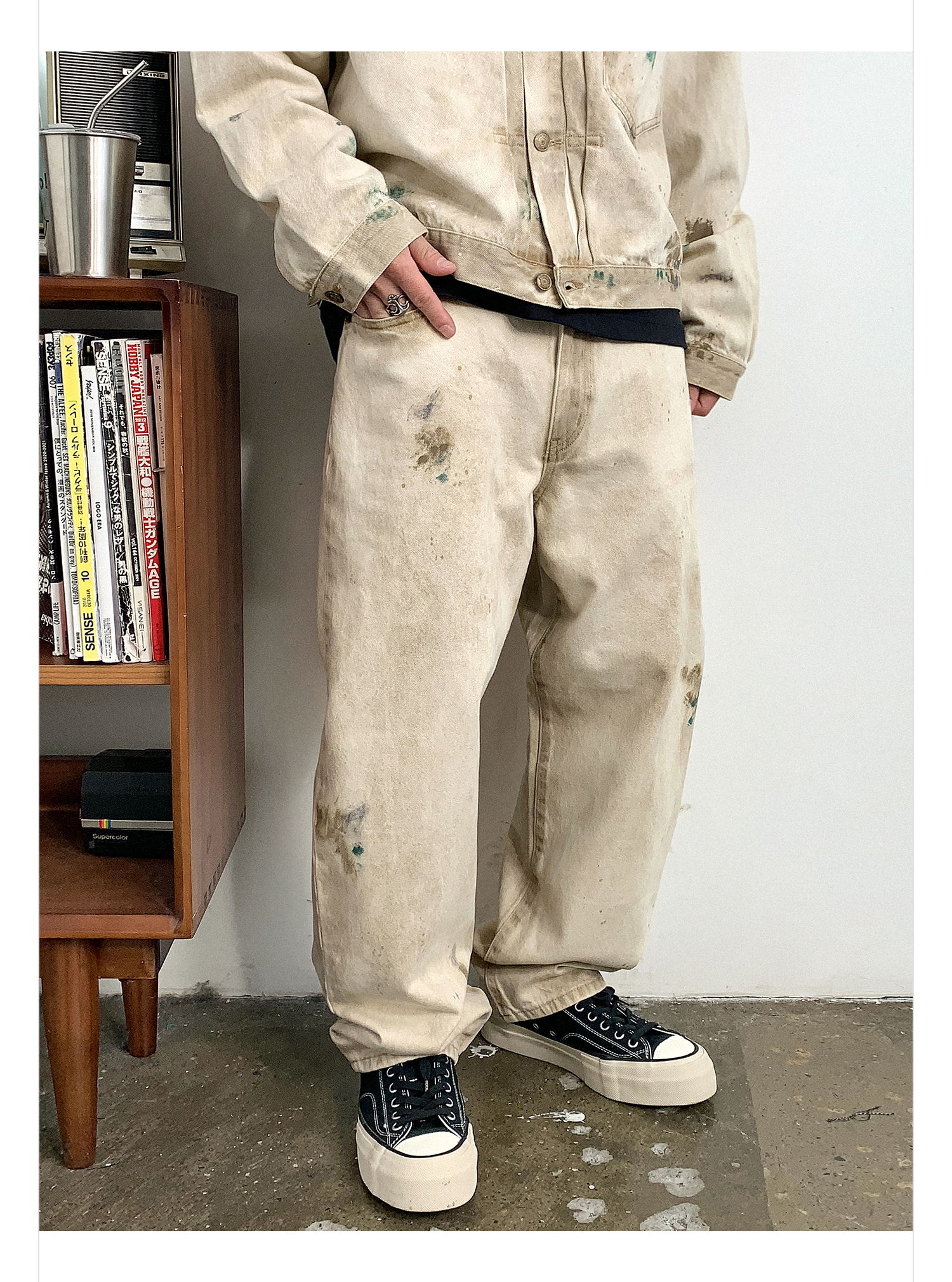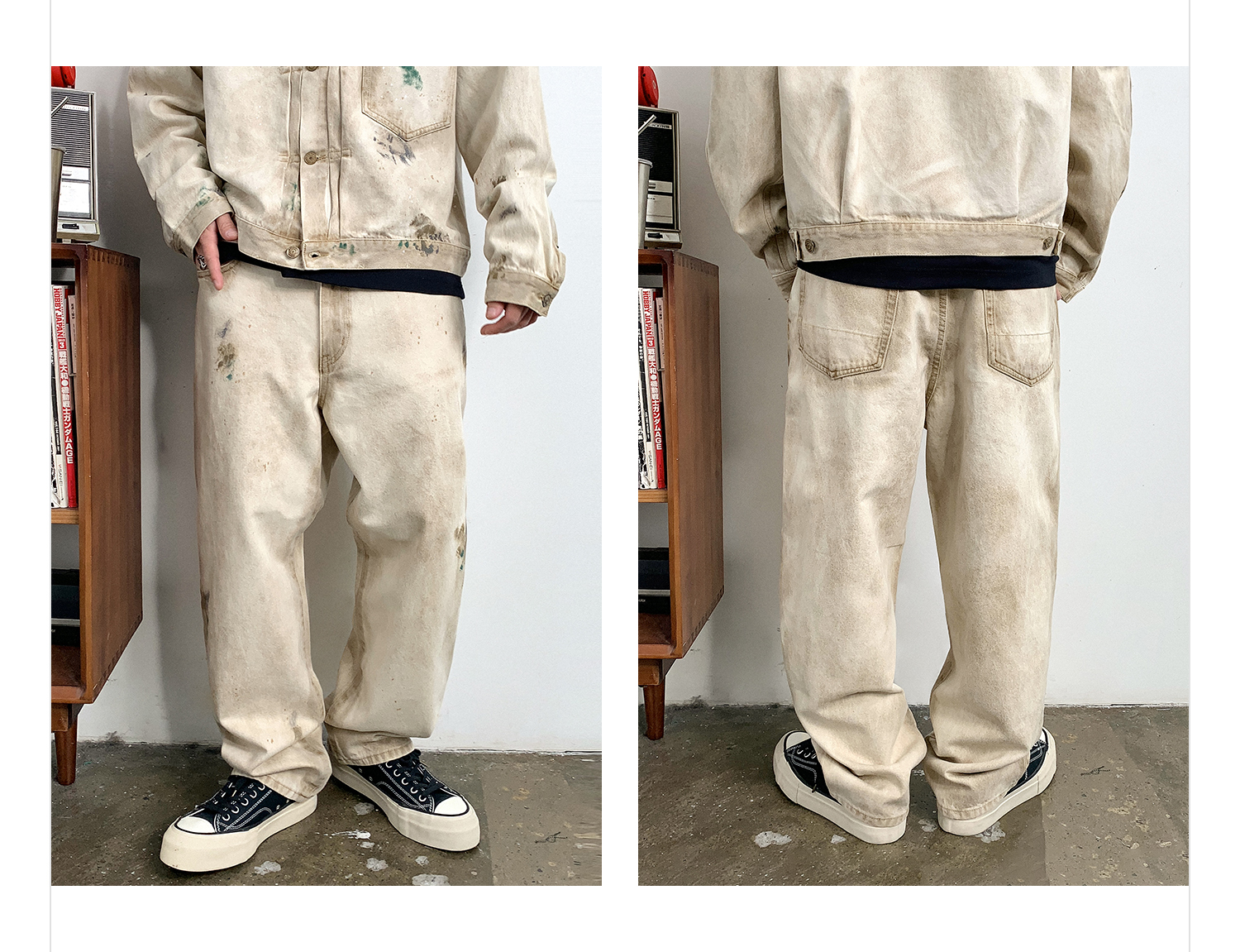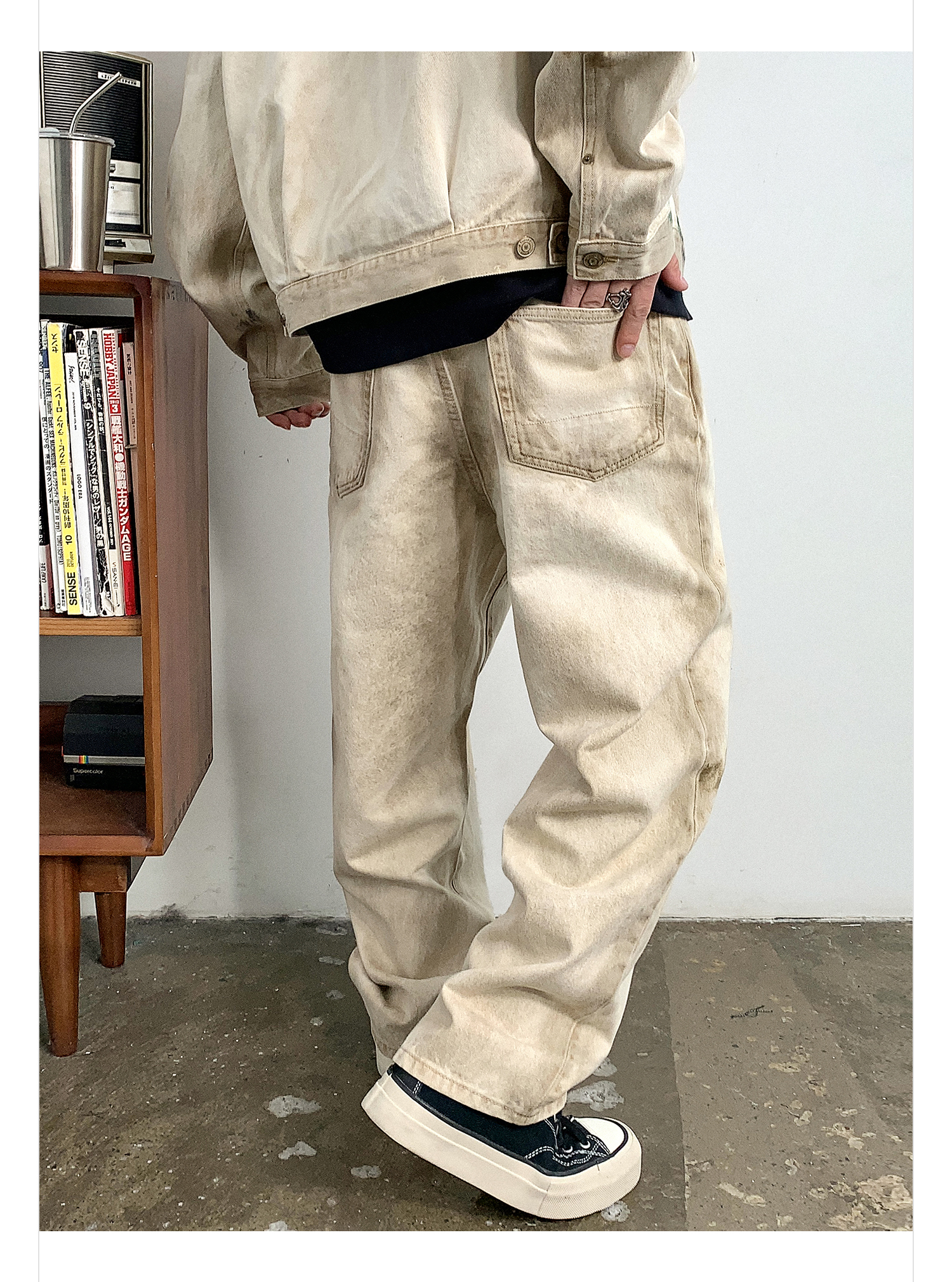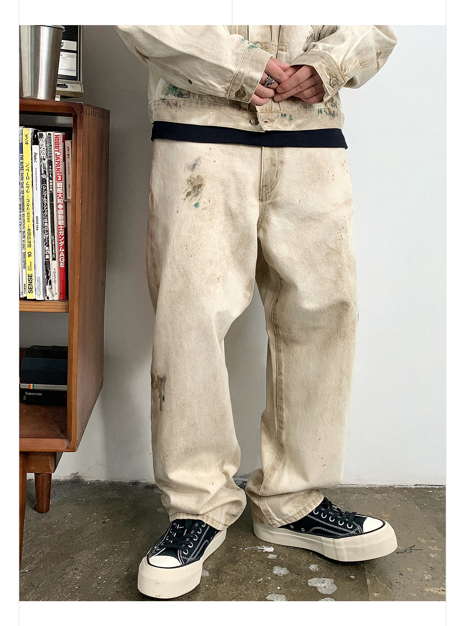 徐太浪美式高街做旧脏脏直筒休闲裤男春秋宽松个性运动阔腿长裤子