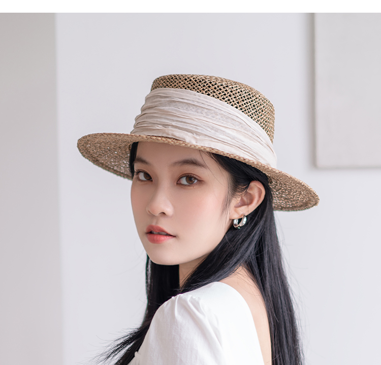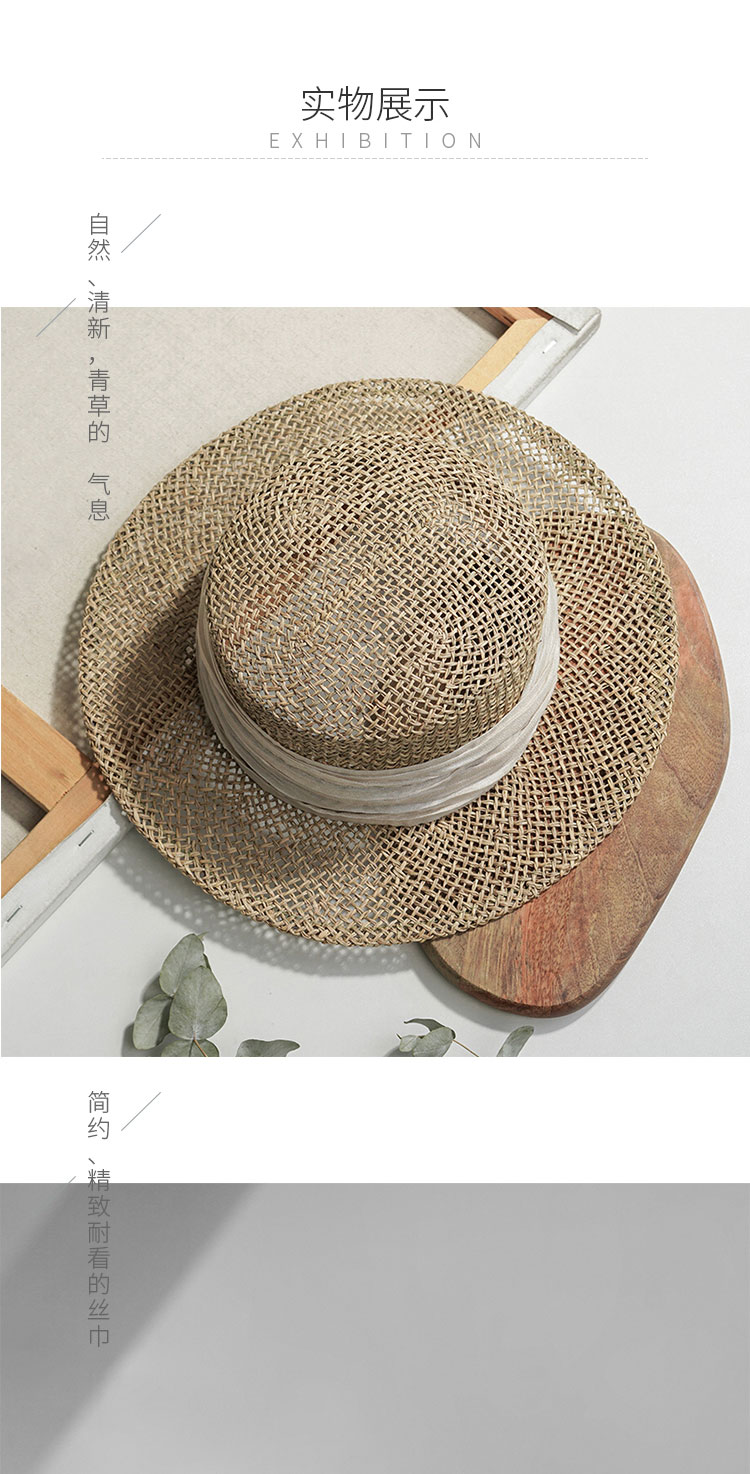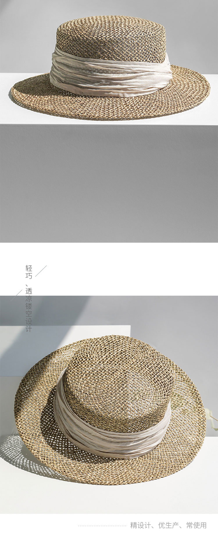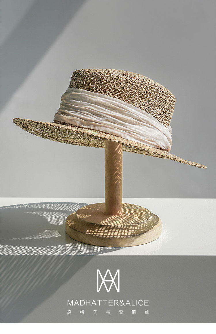 疯帽子 25年新天然咸水草镂空草编帽复古平顶礼帽女夏季度假草帽