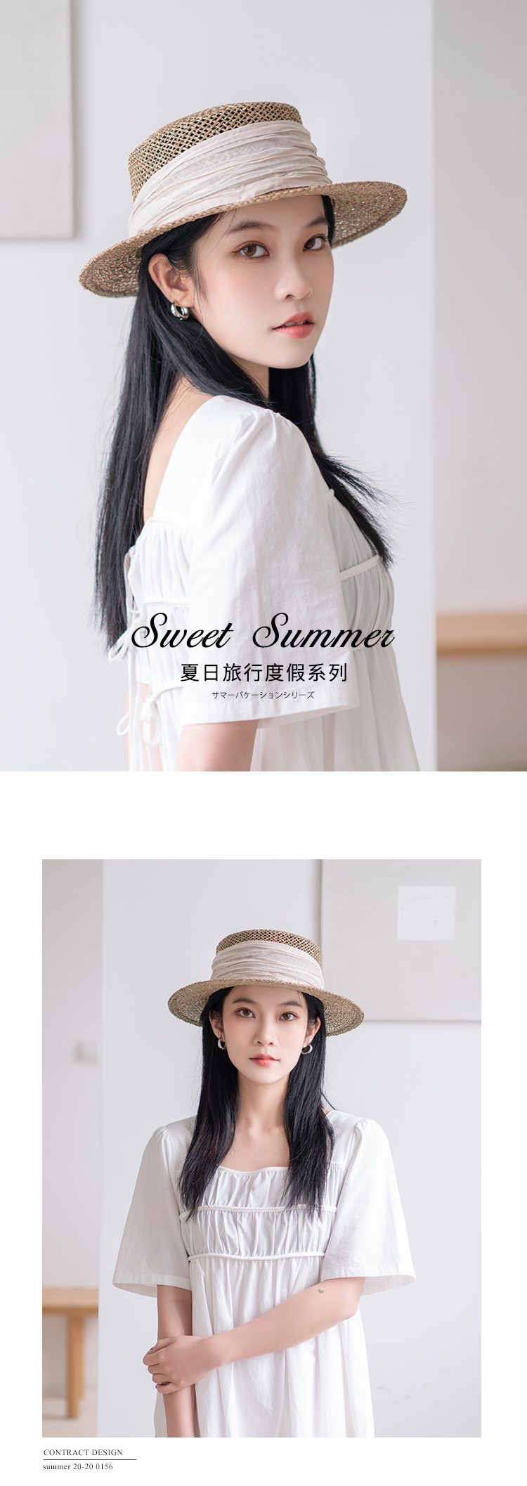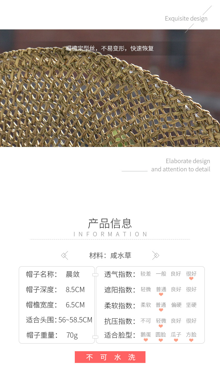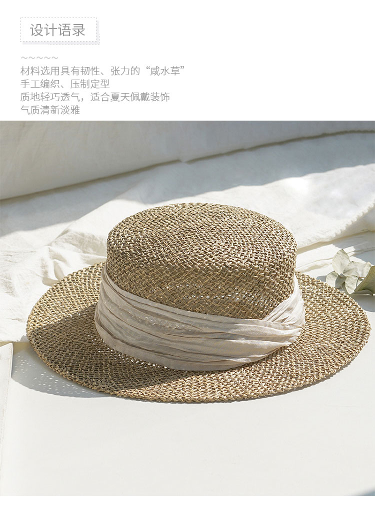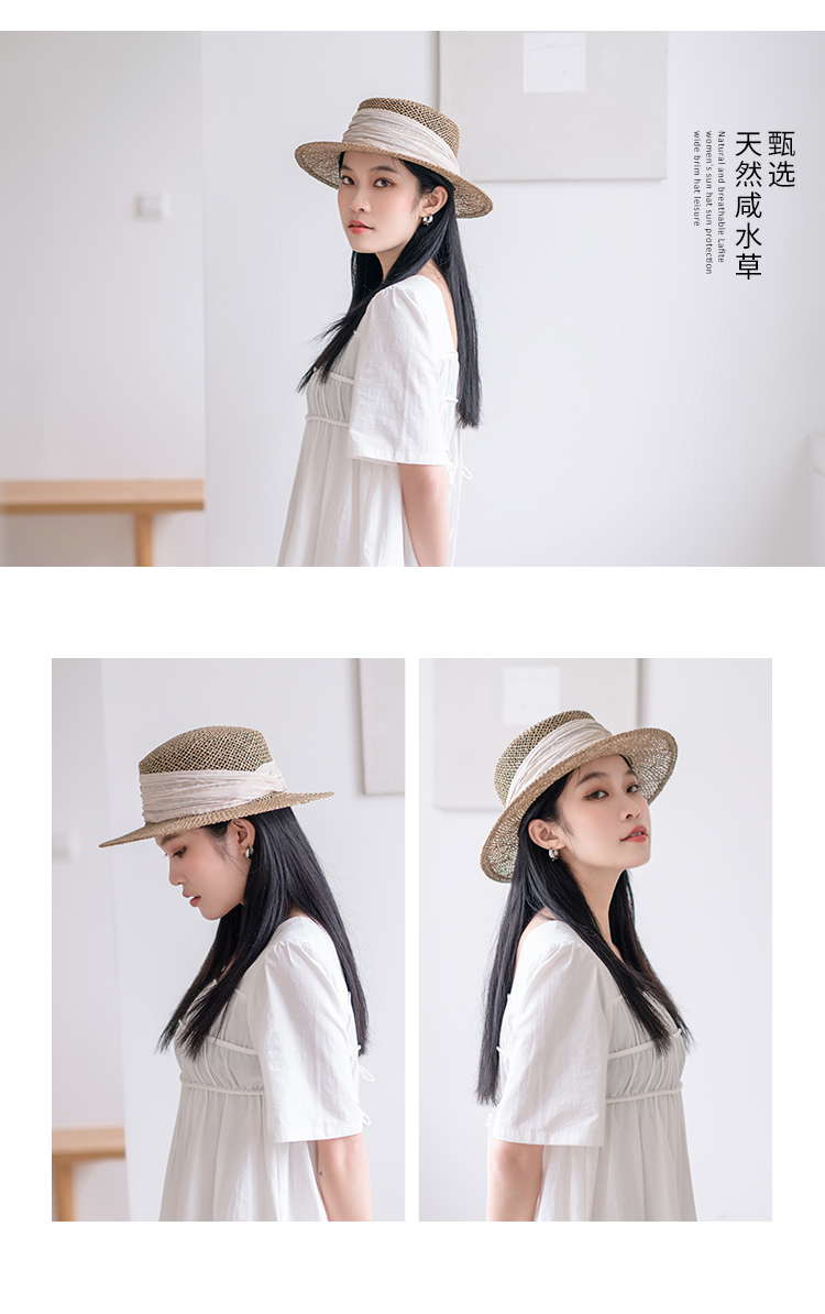 疯帽子 25年新天然咸水草镂空草编帽复古平顶礼帽女夏季度假草帽