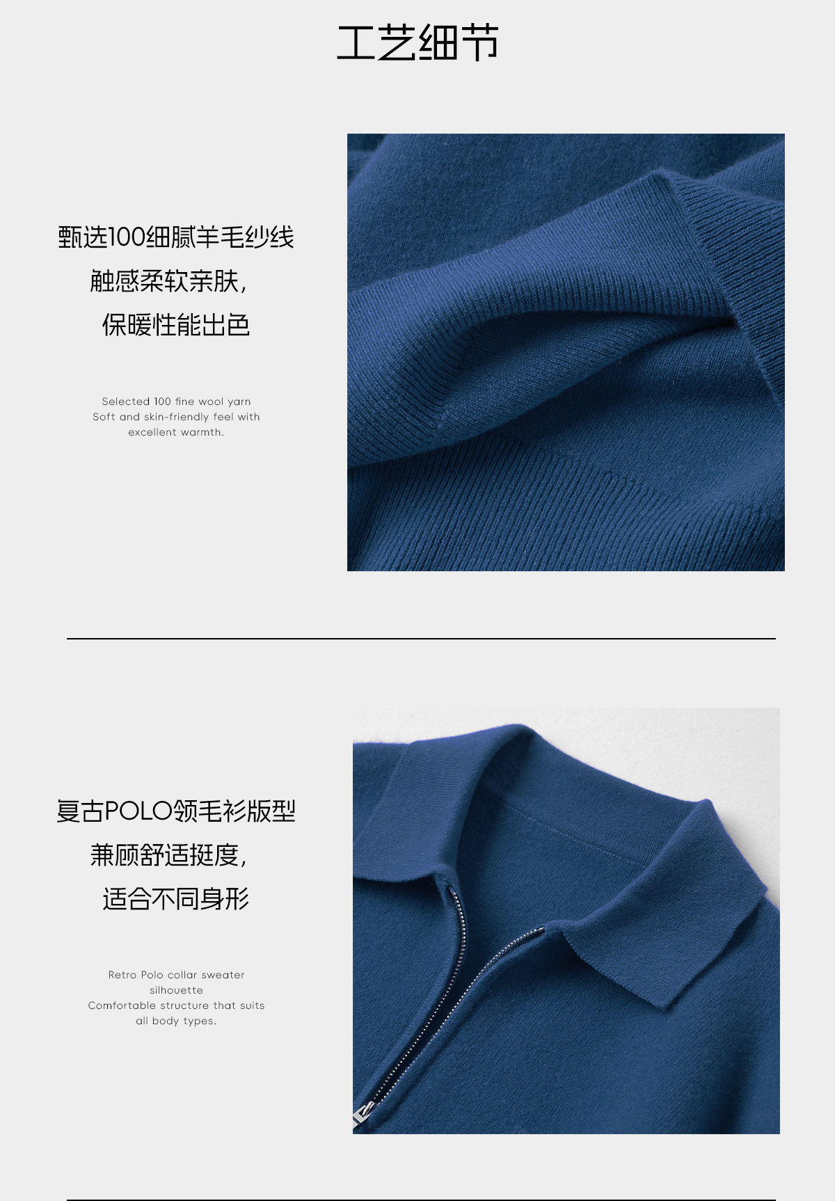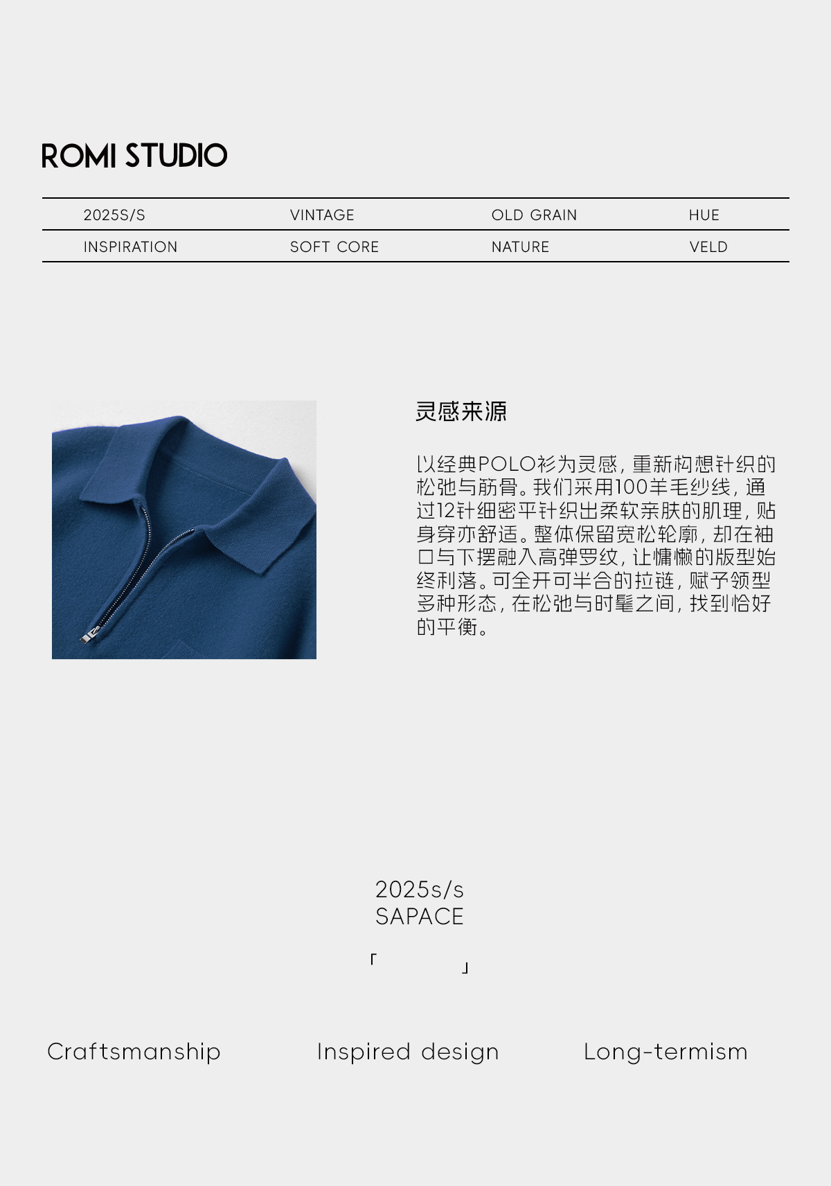 ROMI STUDIO“温暖如初”100绵羊毛密织前拉链polo领毛衣RWDWST1707