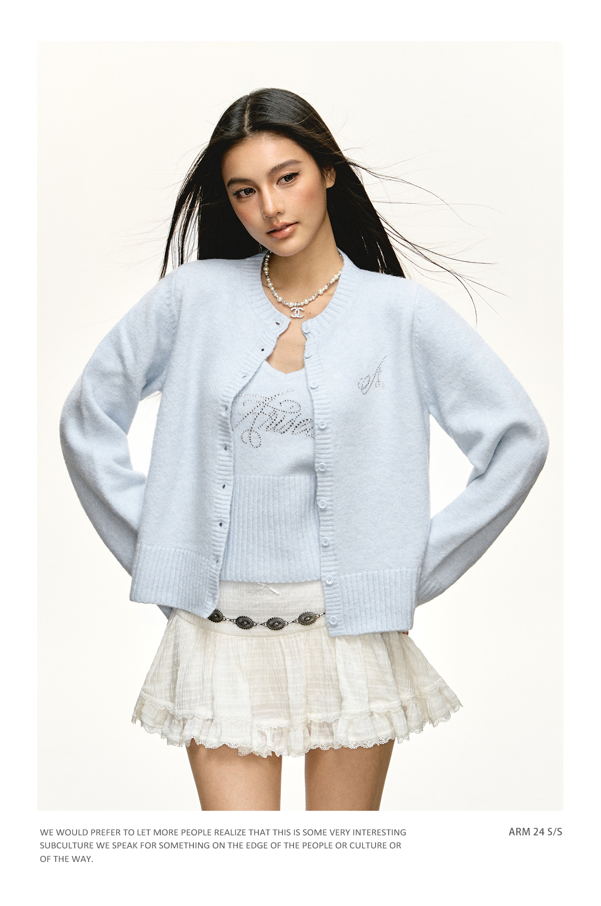 Ariseism 美式复古针织吊带上衣两件套套装女春秋新款