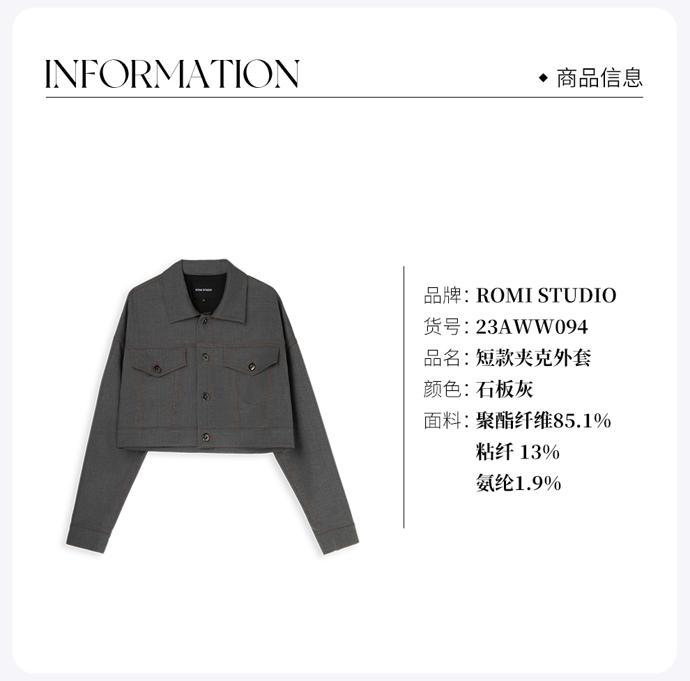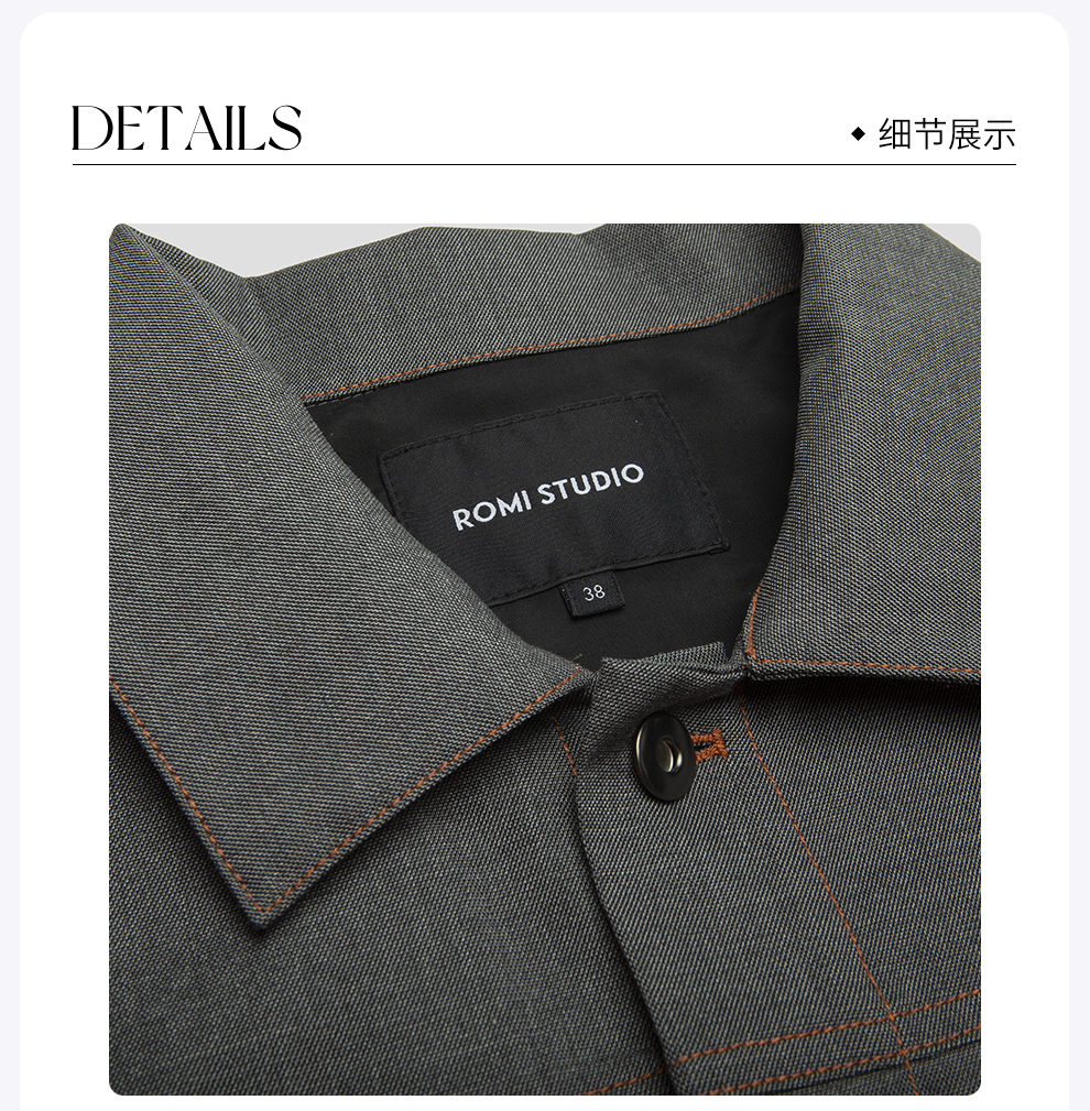 ROMI STUDIO“复古百搭”廓形明线撞色衬衣式短款夹克外套23AWW094