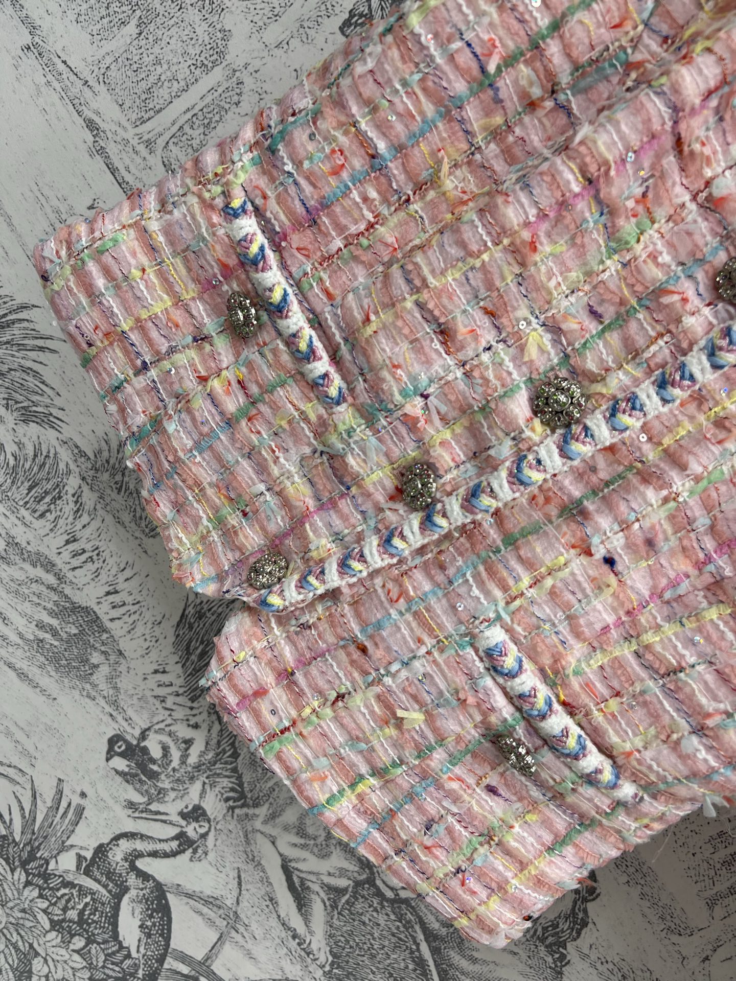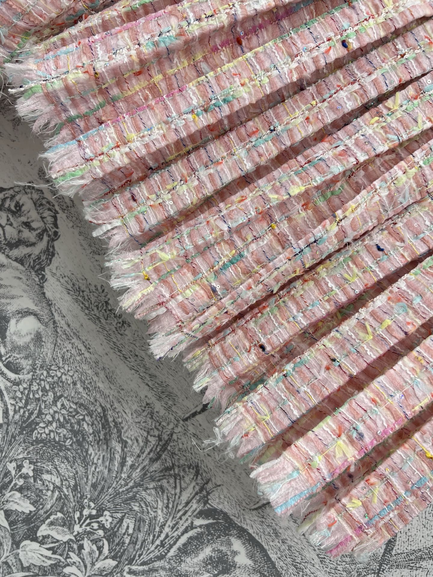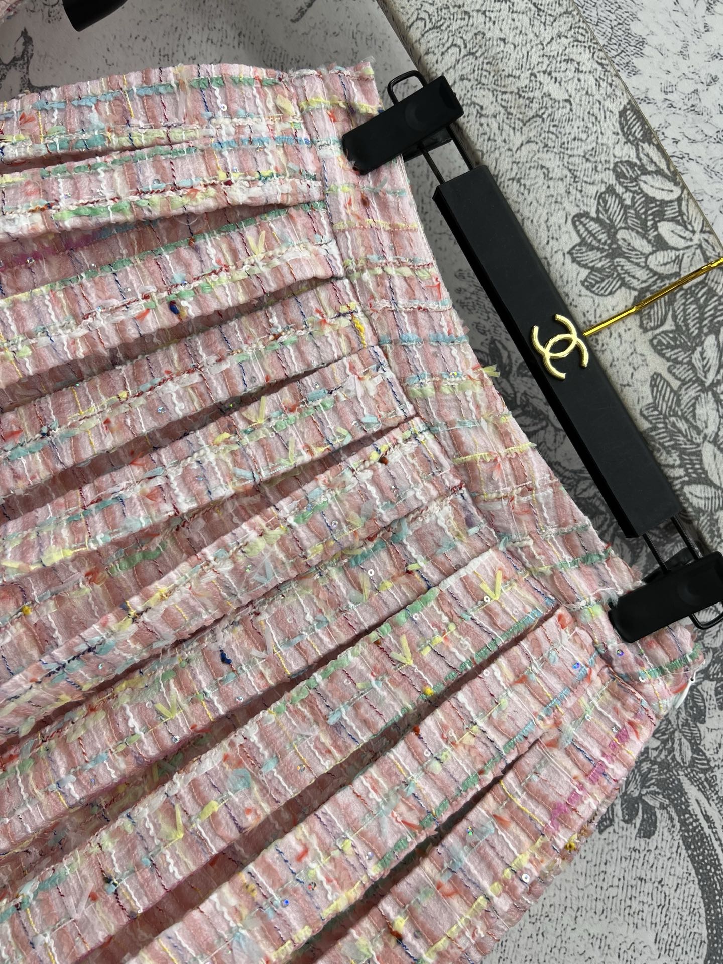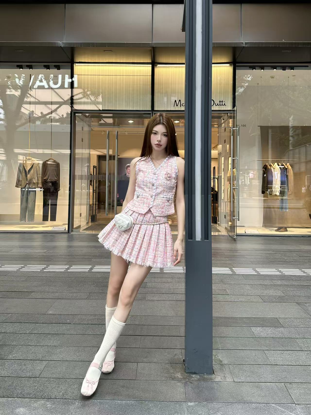 小香风 25春夏新款 彩色编织粗花呢套装 V领马甲+百褶短裙