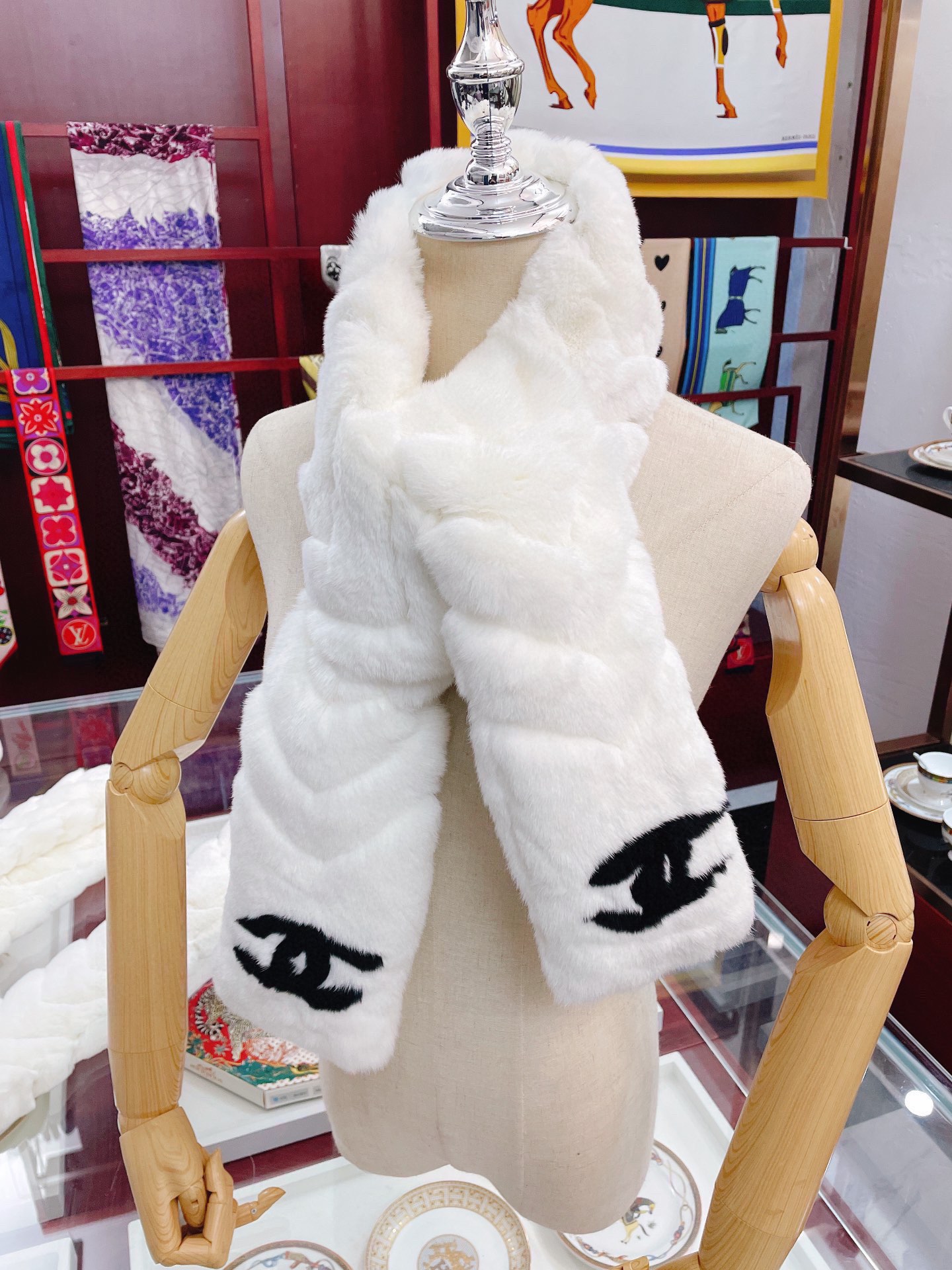 ✨✨小红书同款 单色【▪皮毛一体❗超级保暖Ch**el秋冬新款!!!】我能保证的是上身一定会喜欢,进口真皮草的高端产物,高级的范畴已不只是围巾披肩了,更像个高级成衣让人吸睛,欢喜!!!搭配一切,HOLD住一切,一披,拽得我的啊!!!!!太显档次,太显好了!!!上身效果更是贵妇级别的美,将女性的高级,高端简直展现到极致!!!正反面材质这样的结合真心是纯粹的高级和时髦感,气质太有品味!!20cm*120cm的尺寸,非常有气场!!