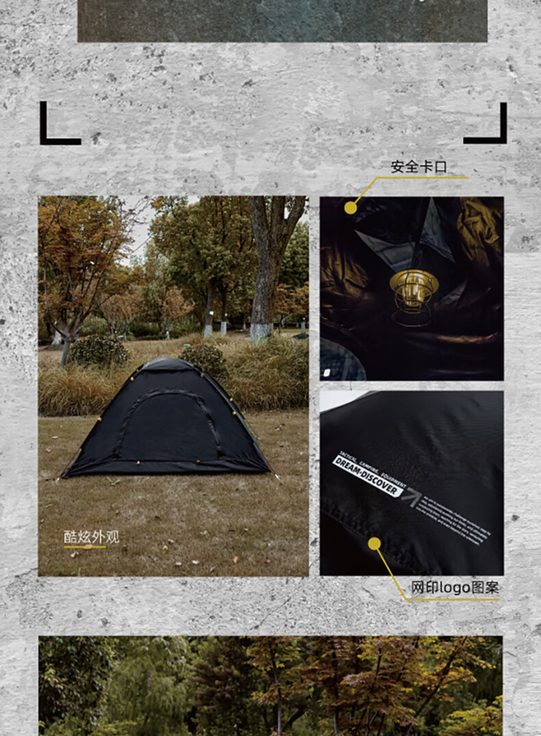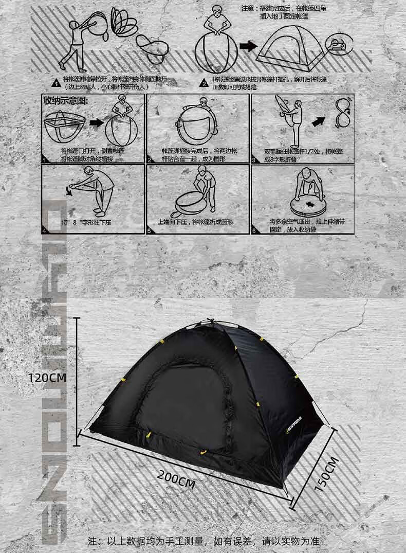 错山速开全自动沙滩海滩黑胶防晒防雨手抛帐篷户外单双人免搭建露营 自动手抛帐黑色【200*150cm】T-01