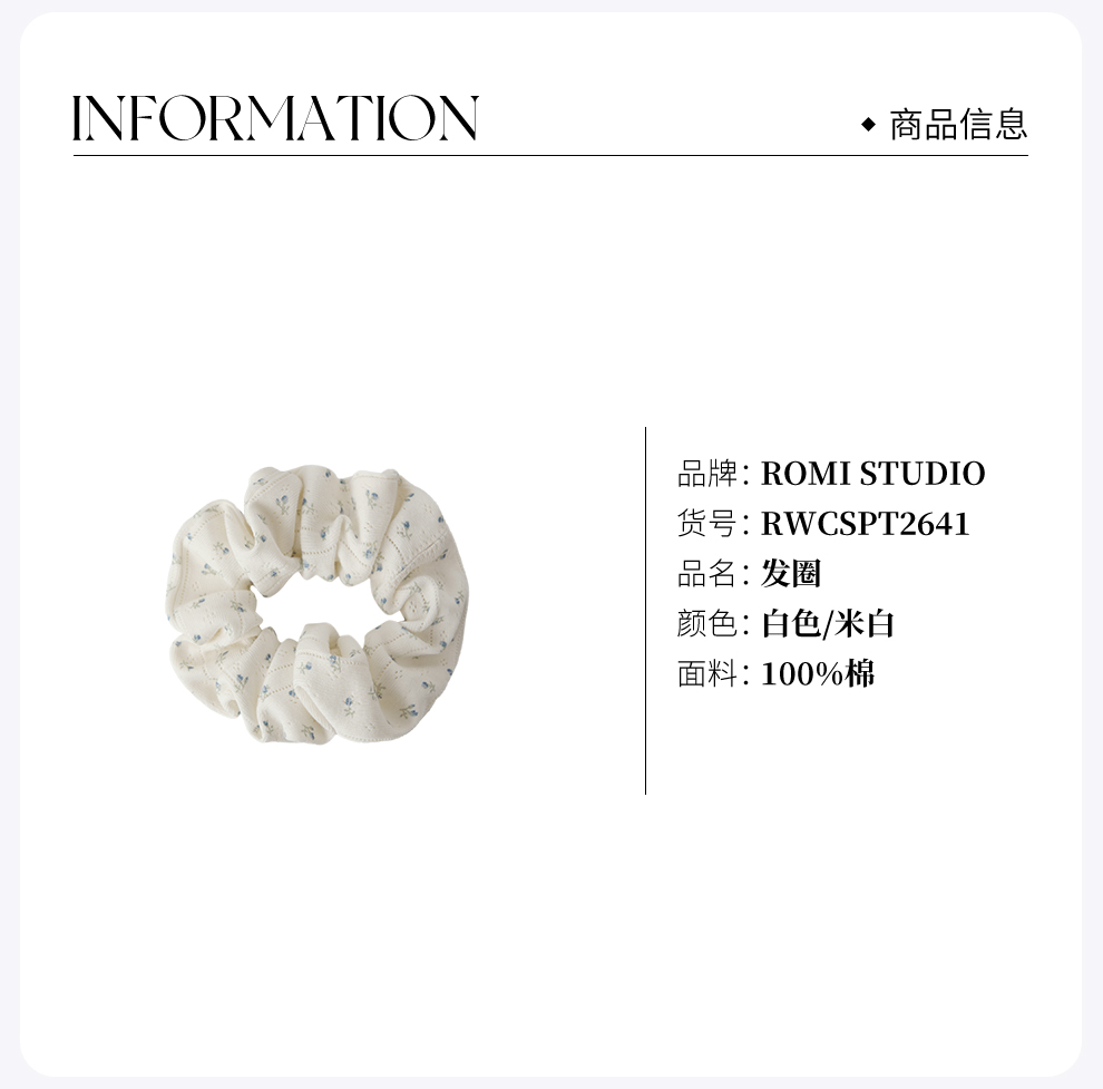 ROMI STUDIO可爱居家系列 法式碎花白色大肠发圈发绳RWCSPT2641