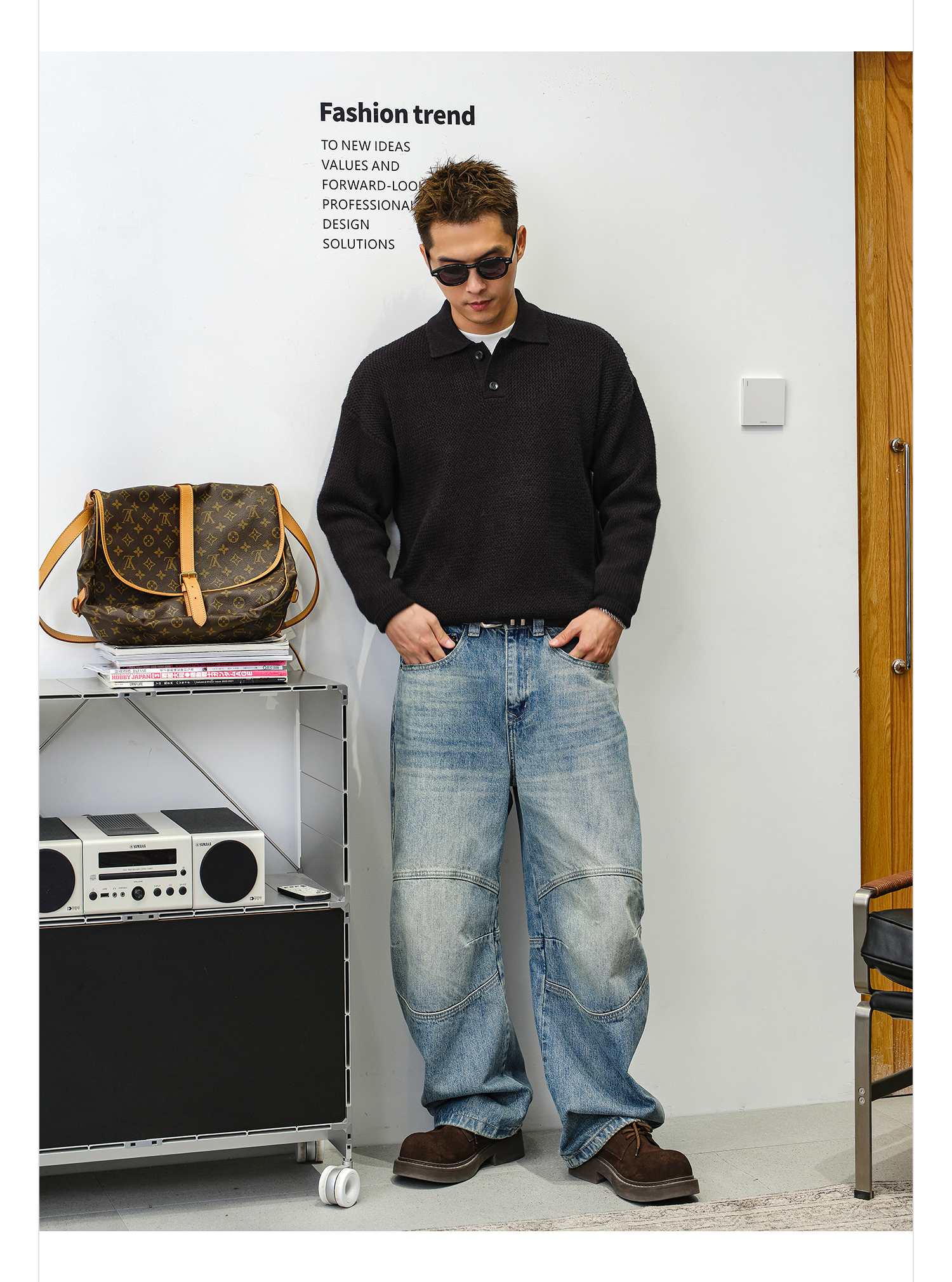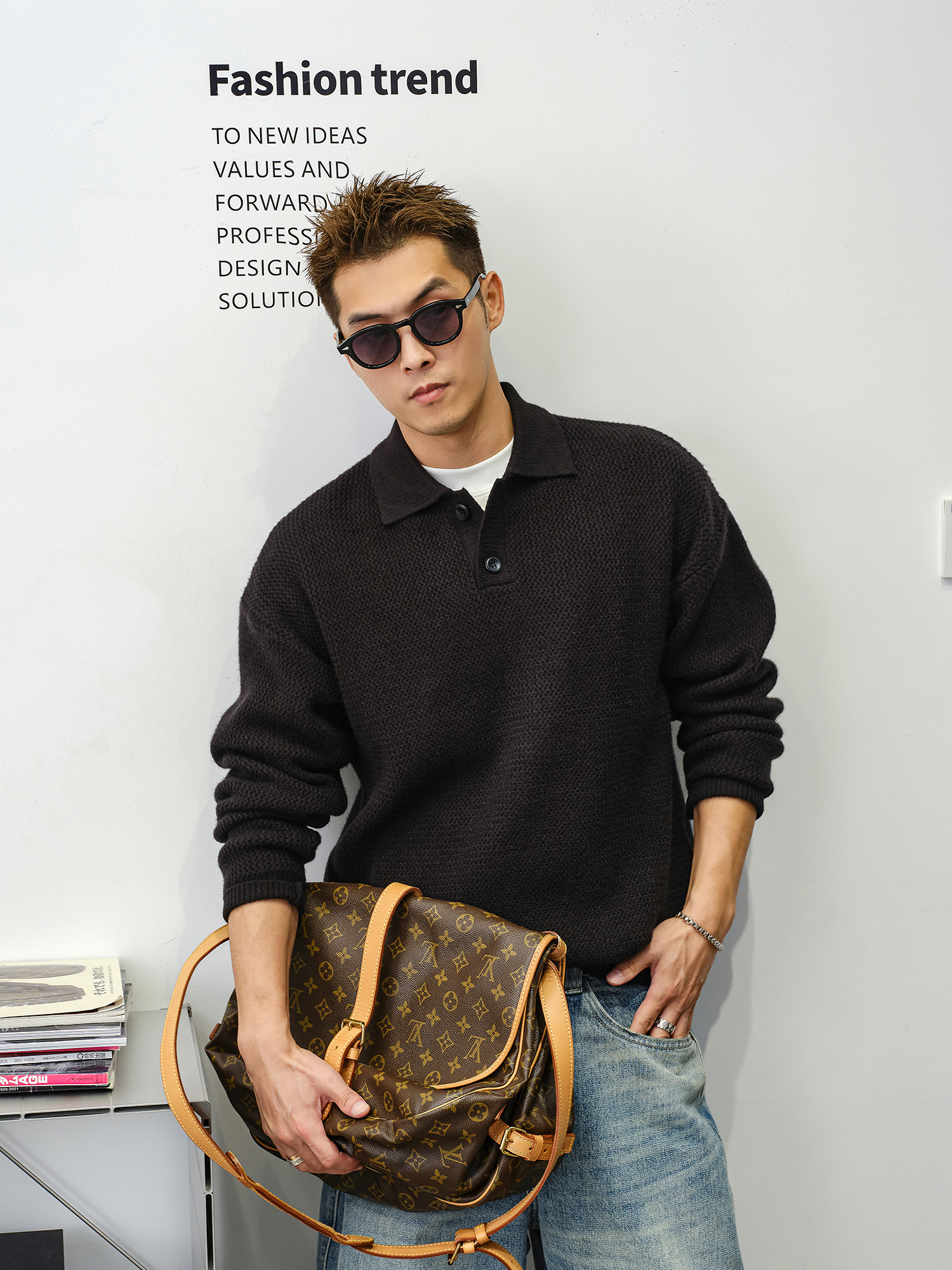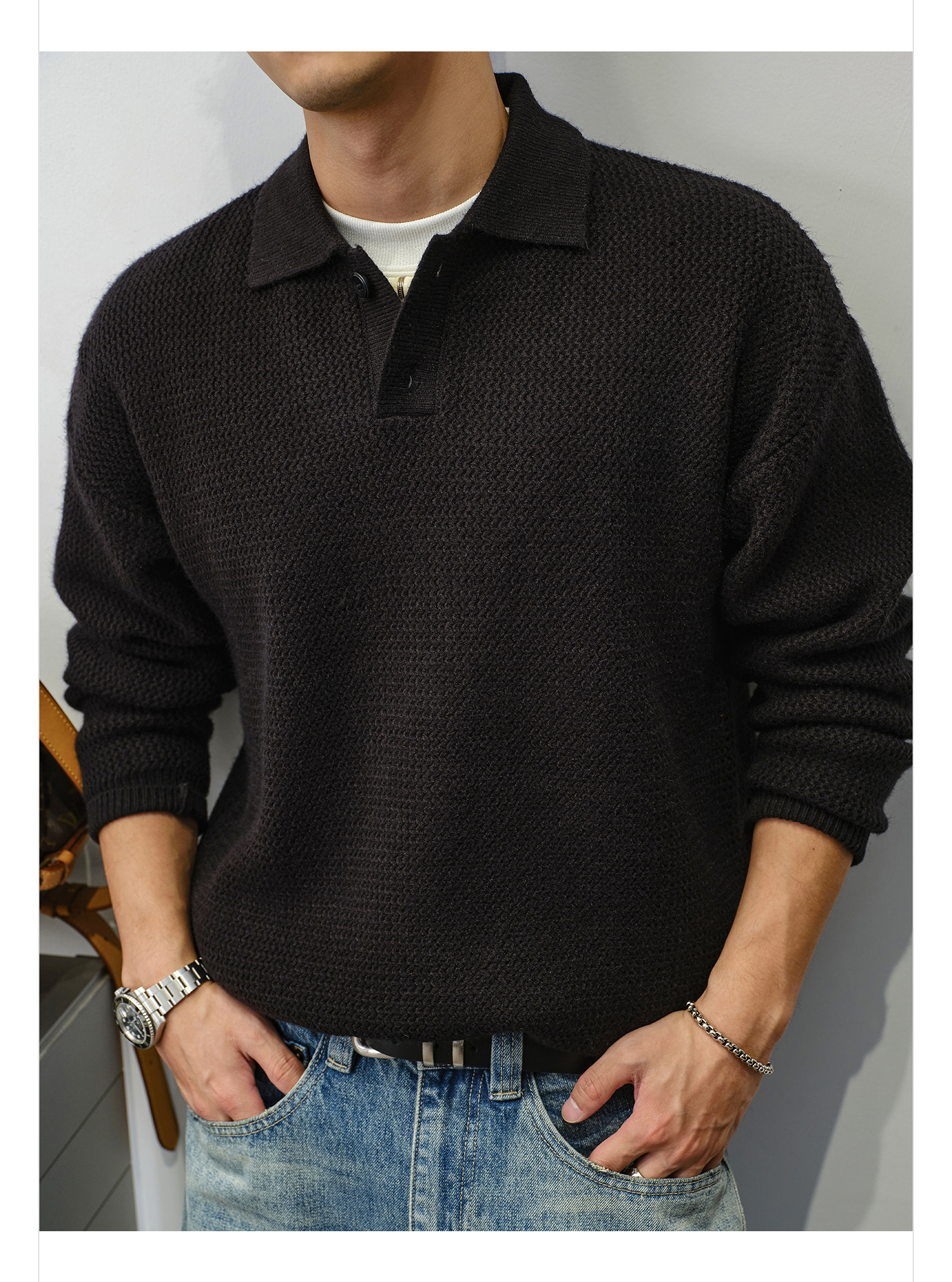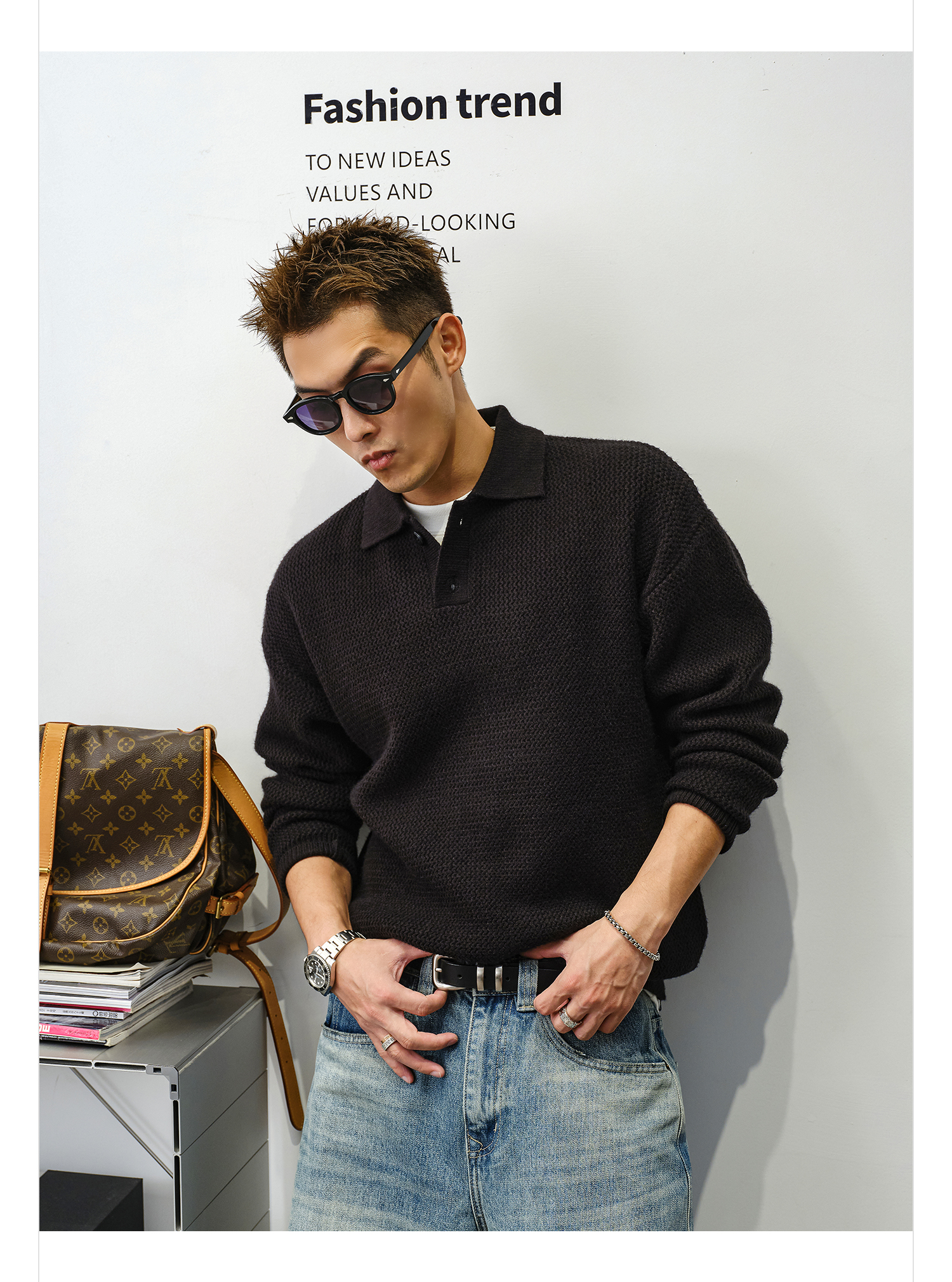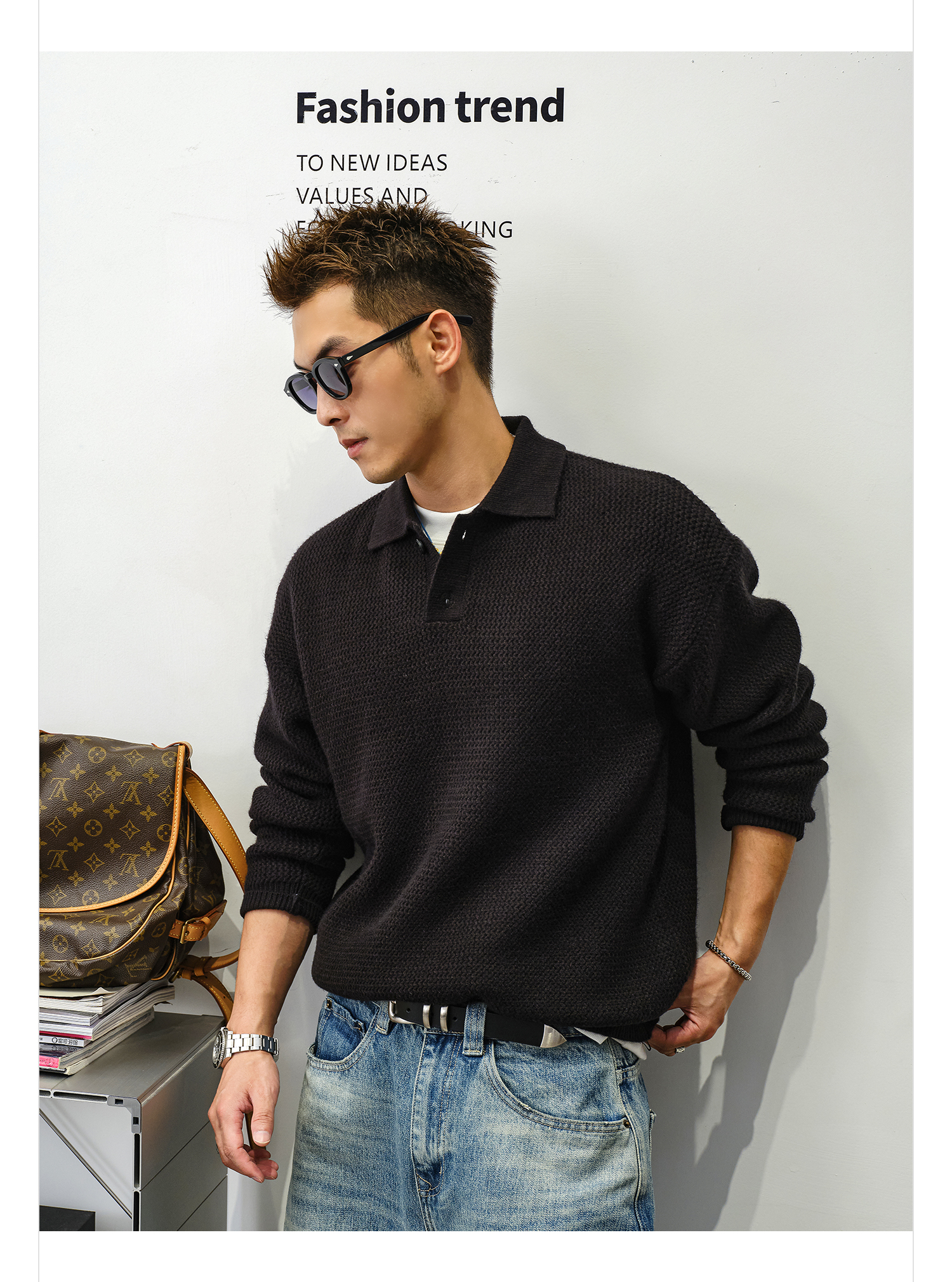 徐太浪【针织布 cleanfit】黑色套头POLO领毛衣男春秋款通勤上衣
