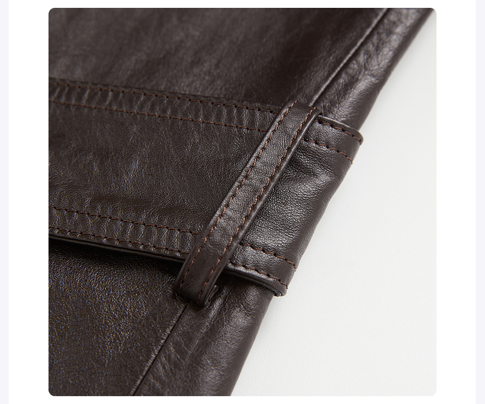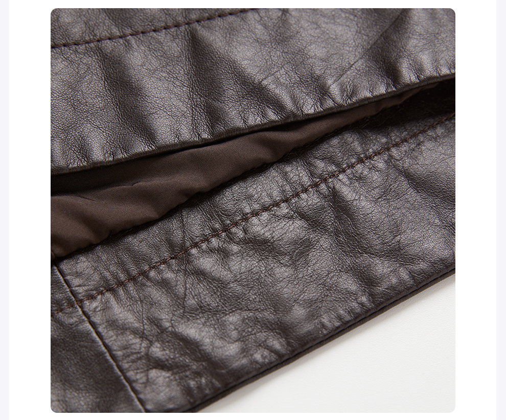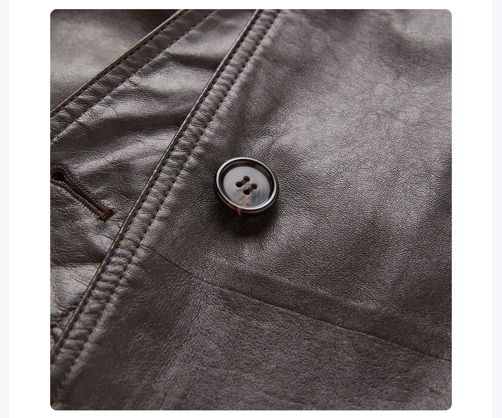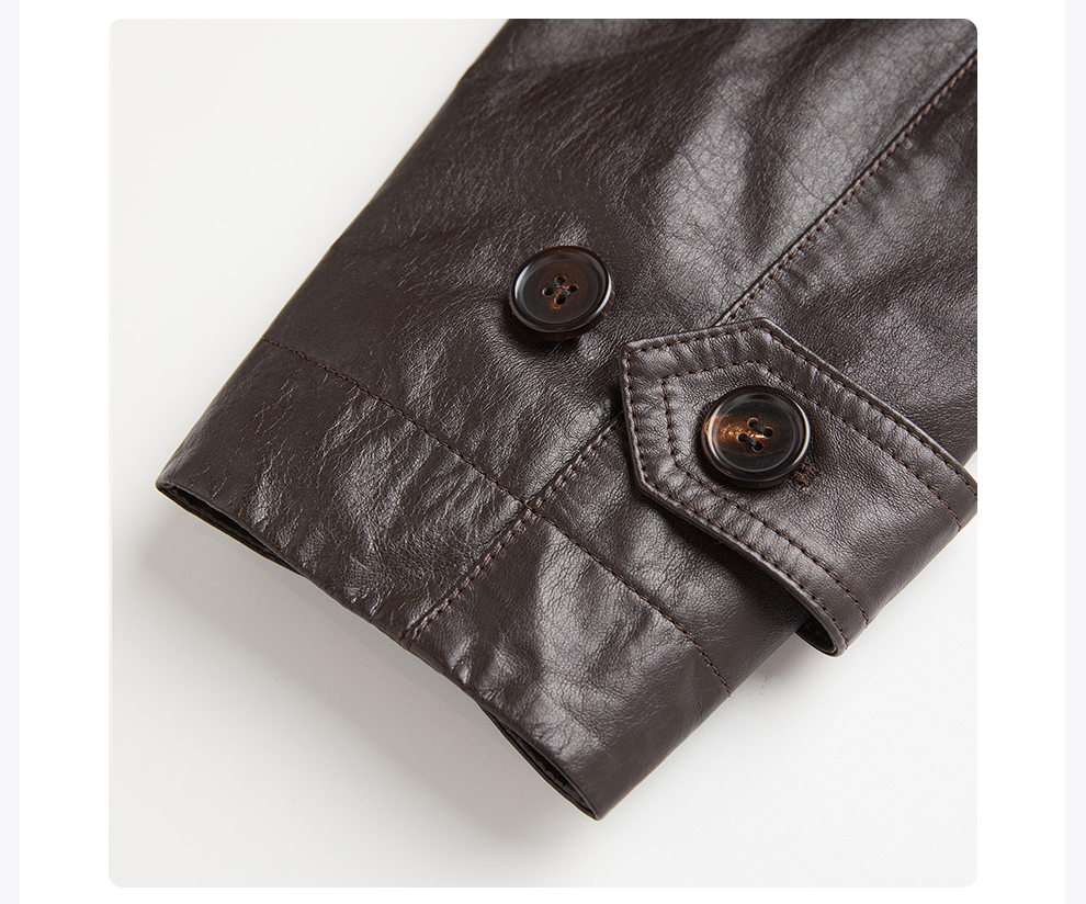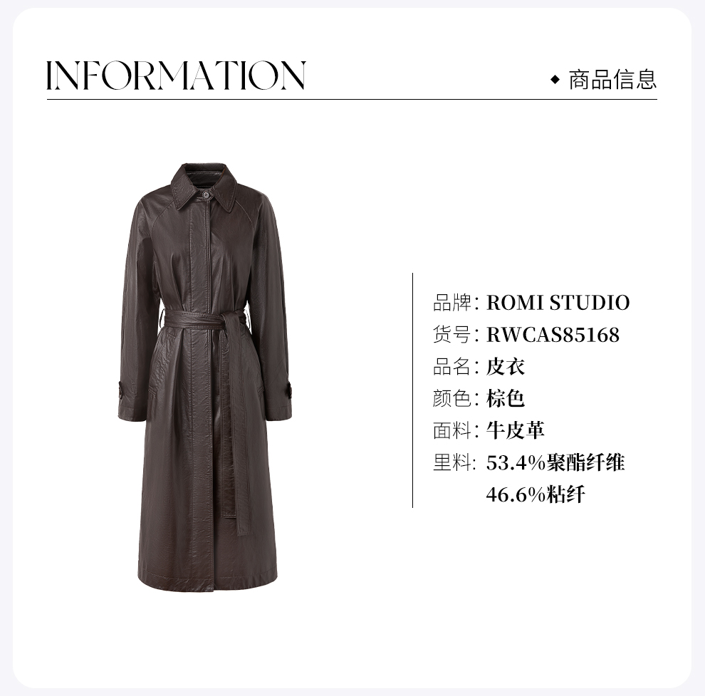 ROMI STUDIO“棕标系列”进口小牛皮轻蜡肌理感皮大衣 RWCAS85168