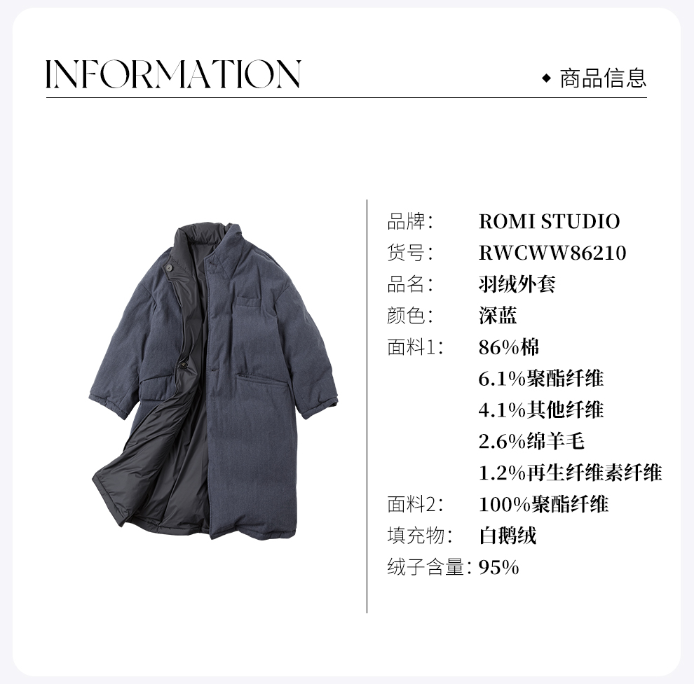ROMISTUDIO“双面两穿”90白鹅绒柔软肤感立领羽绒服 RWCWW86903