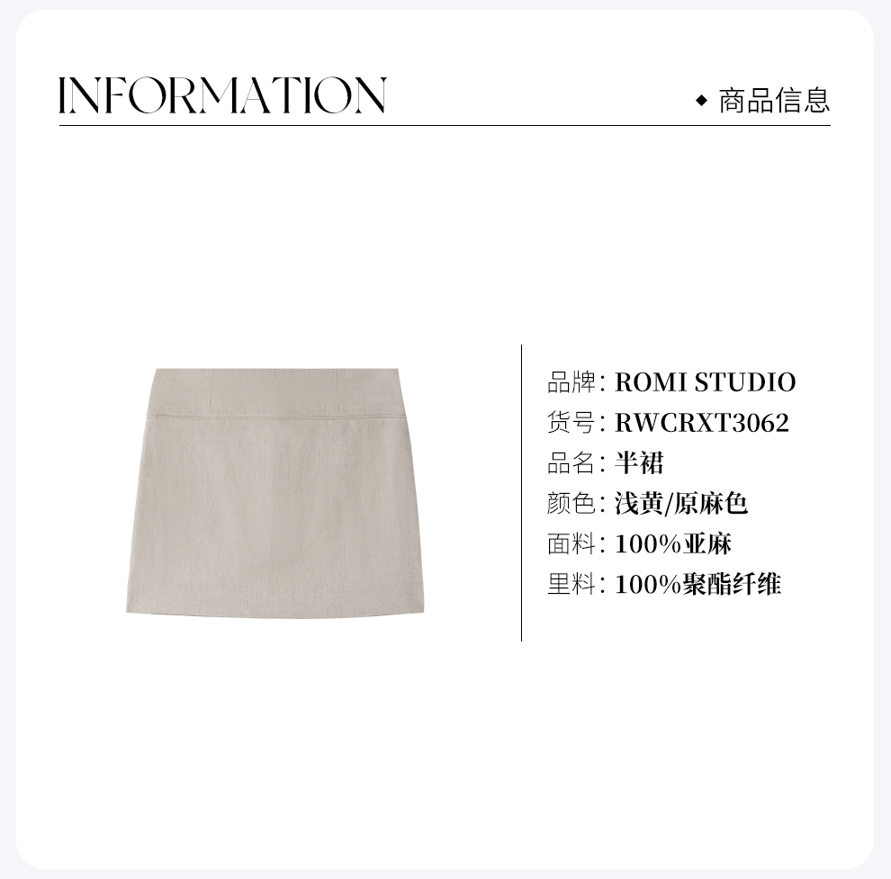 ROMI STUDIO 100%高克重亚麻简约修身短款半裙 RWCRXT3062