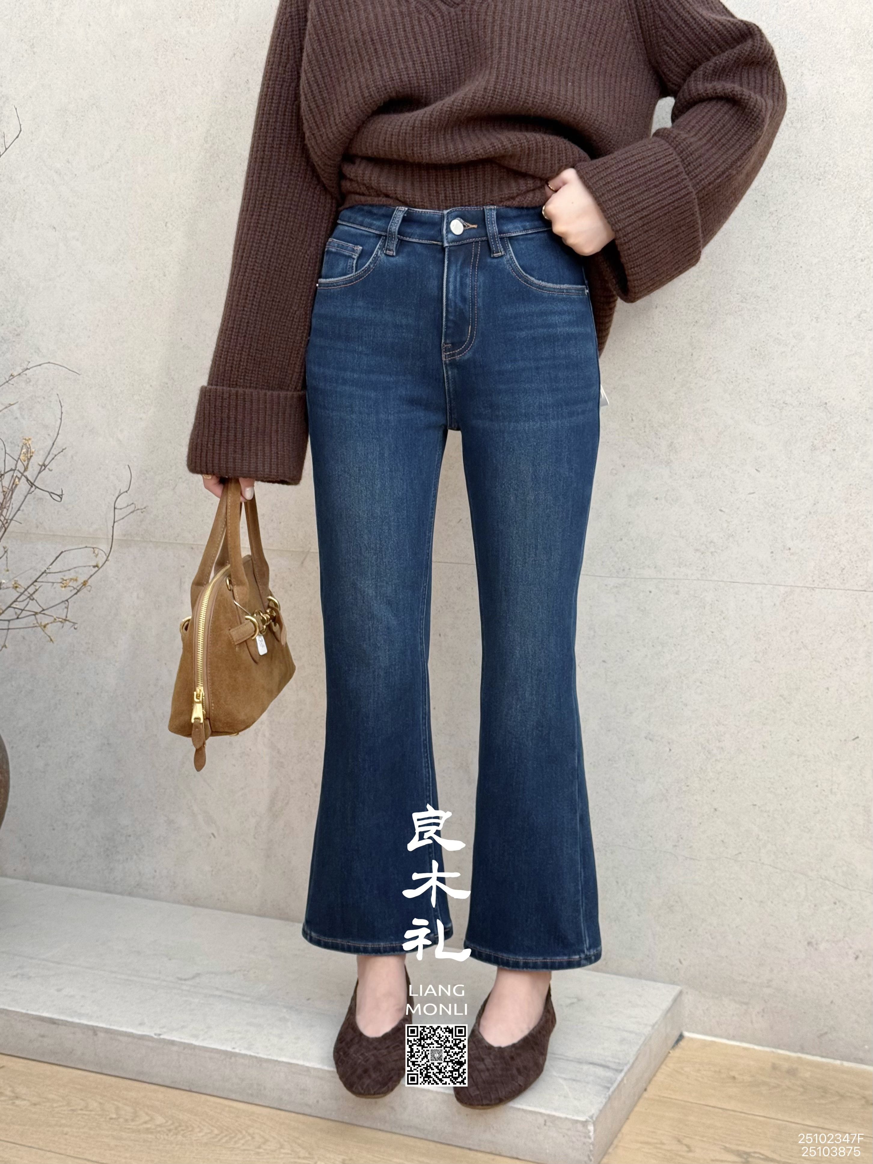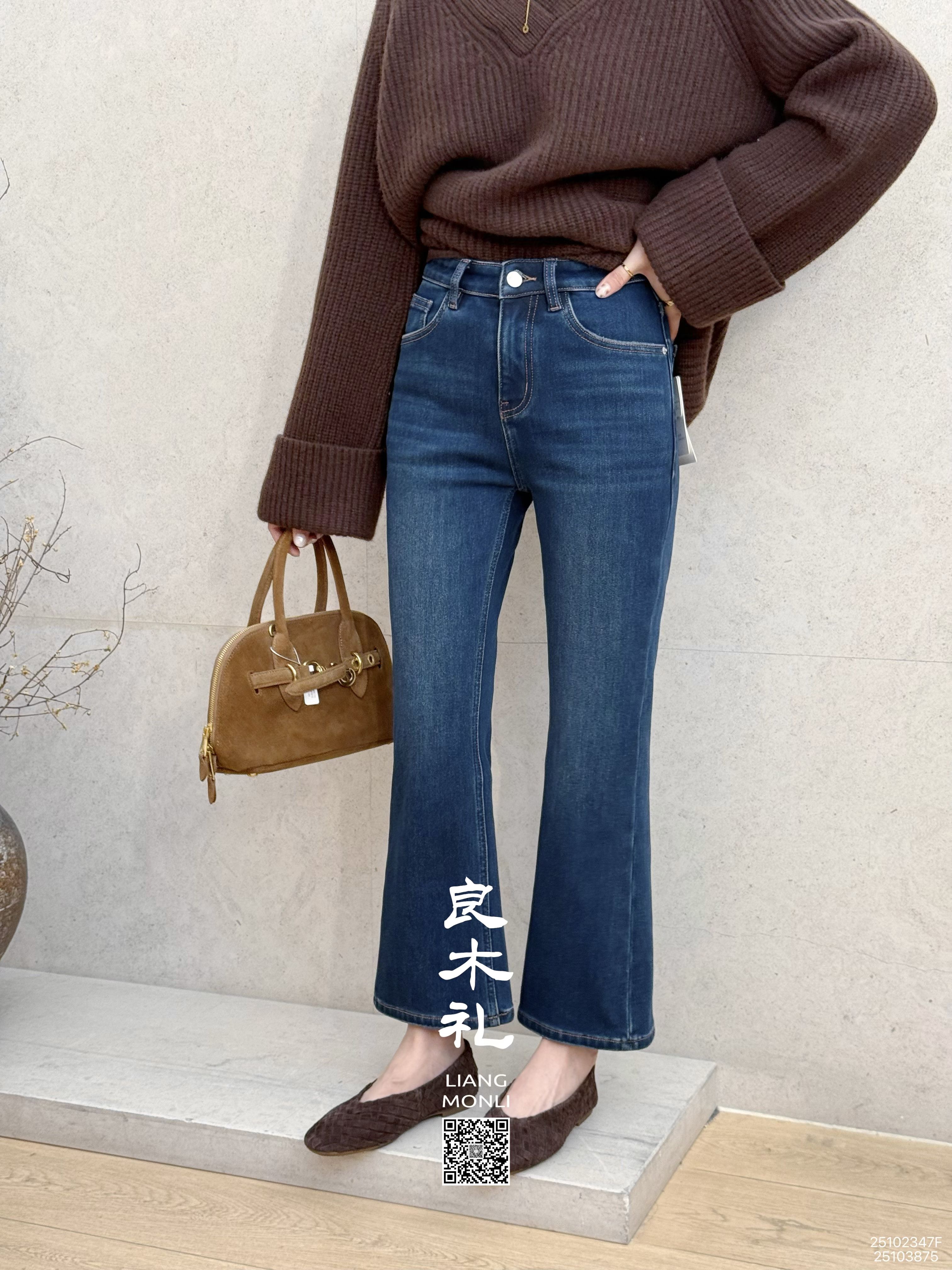 【特价不退换】【部分现货/加绒】良木礼九分微喇裤(小蓝莓)(D25103875)