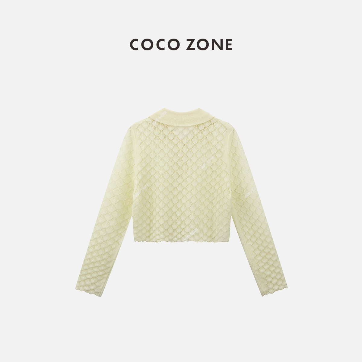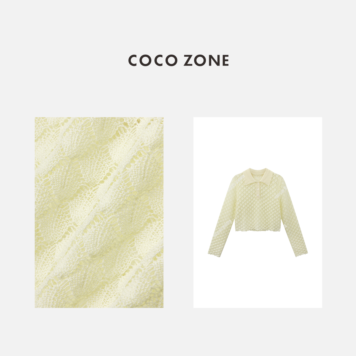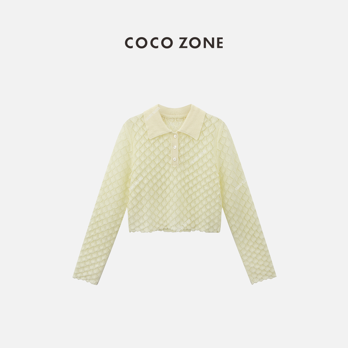 COCO ZONE时尚Polo领长袖针织衫气质菱格百搭上衣CC2B0547