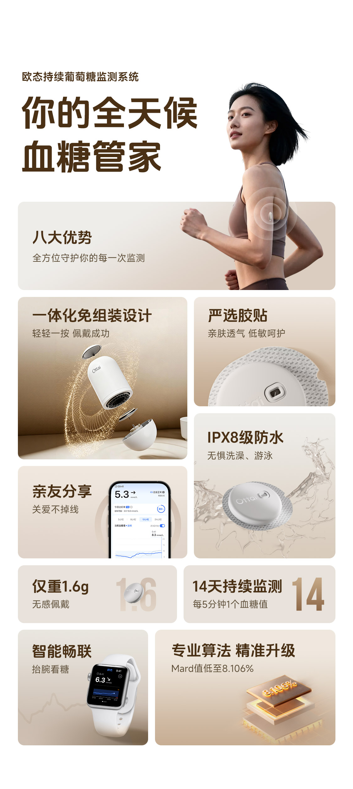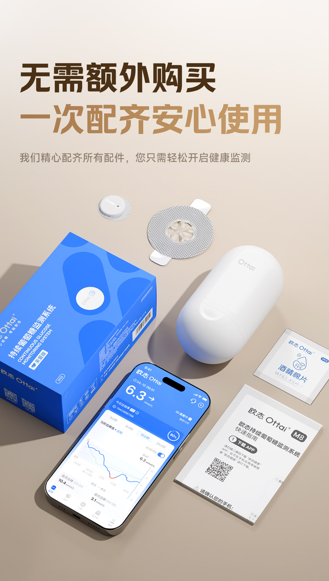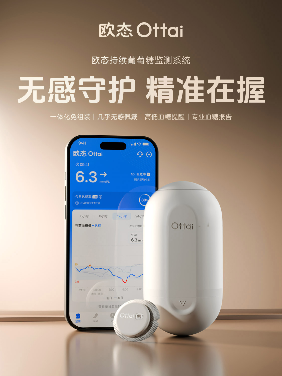 欧态动态血糖仪 免扎手指 免组装一体式持续葡萄糖监测系统