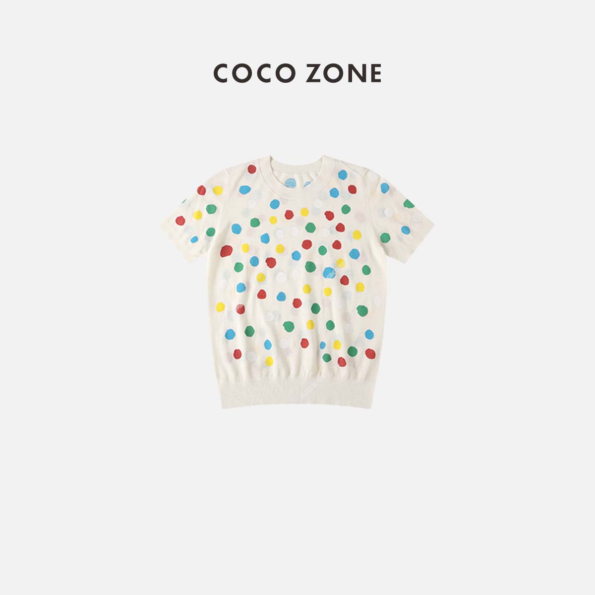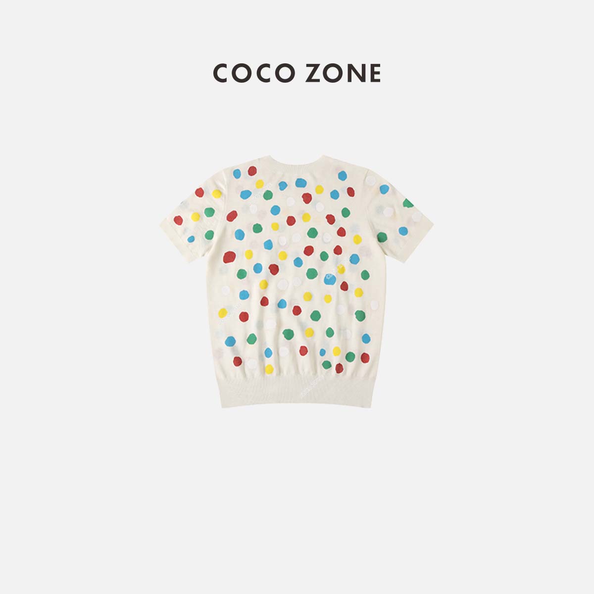 COCO ZONE 夏季圆领短袖波点针织上衣 23C18638