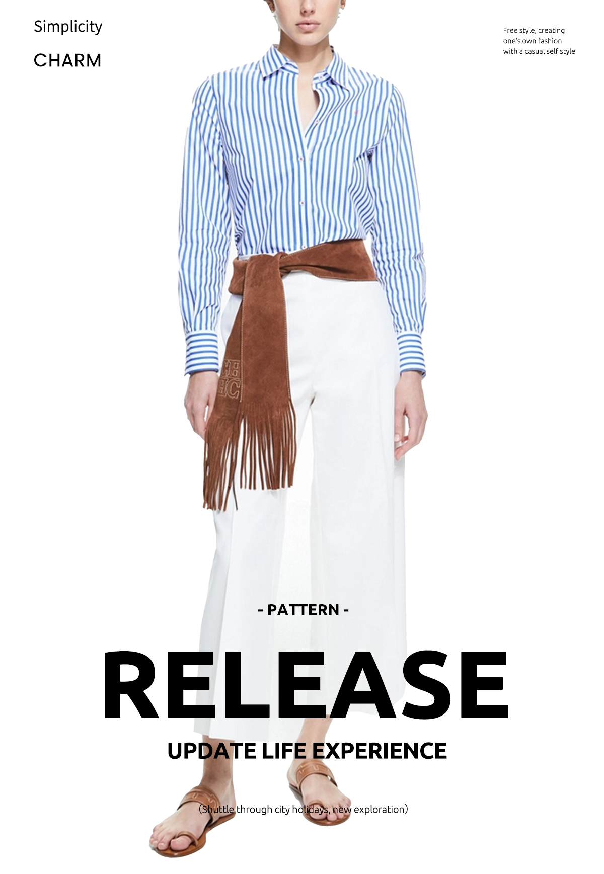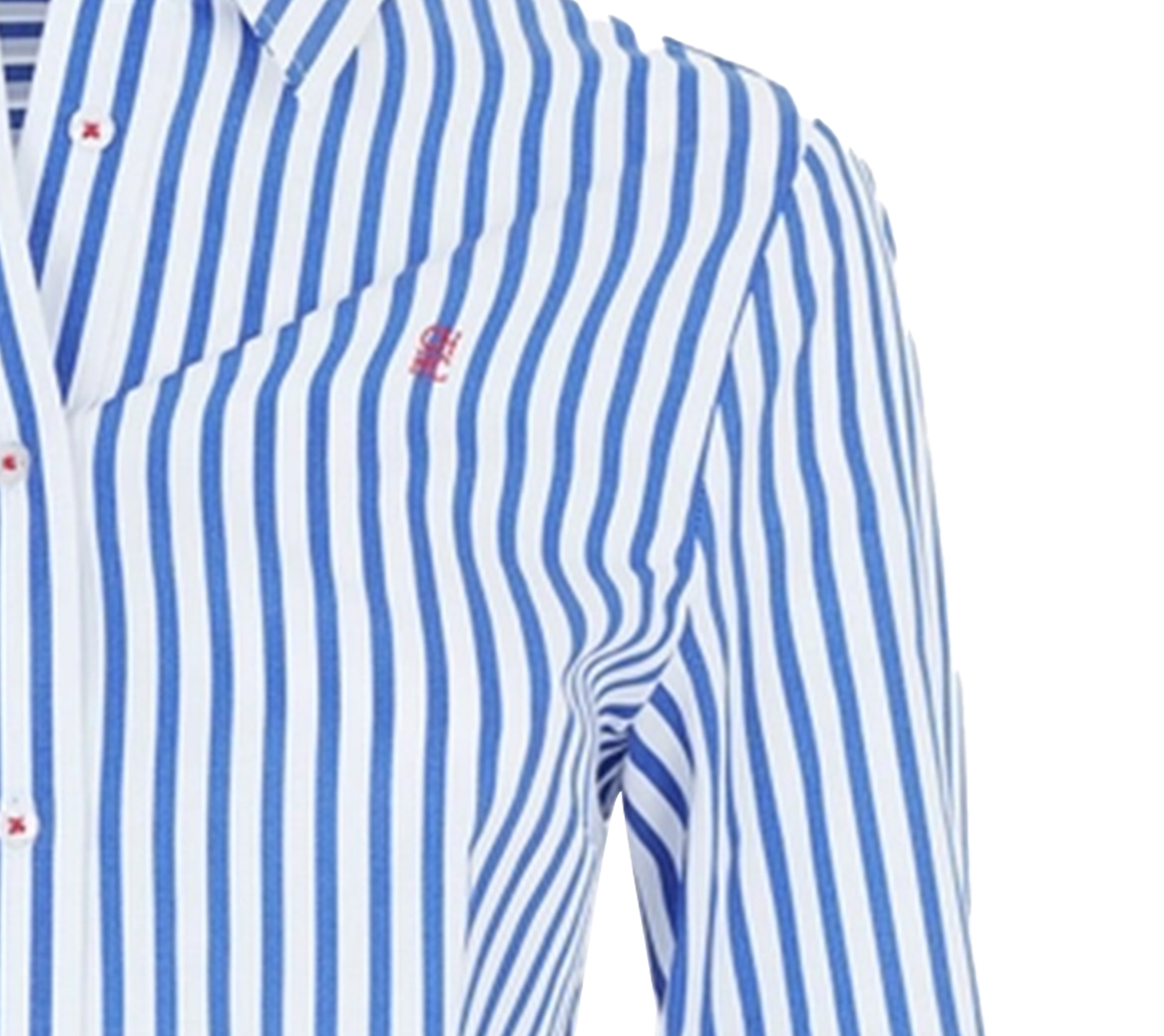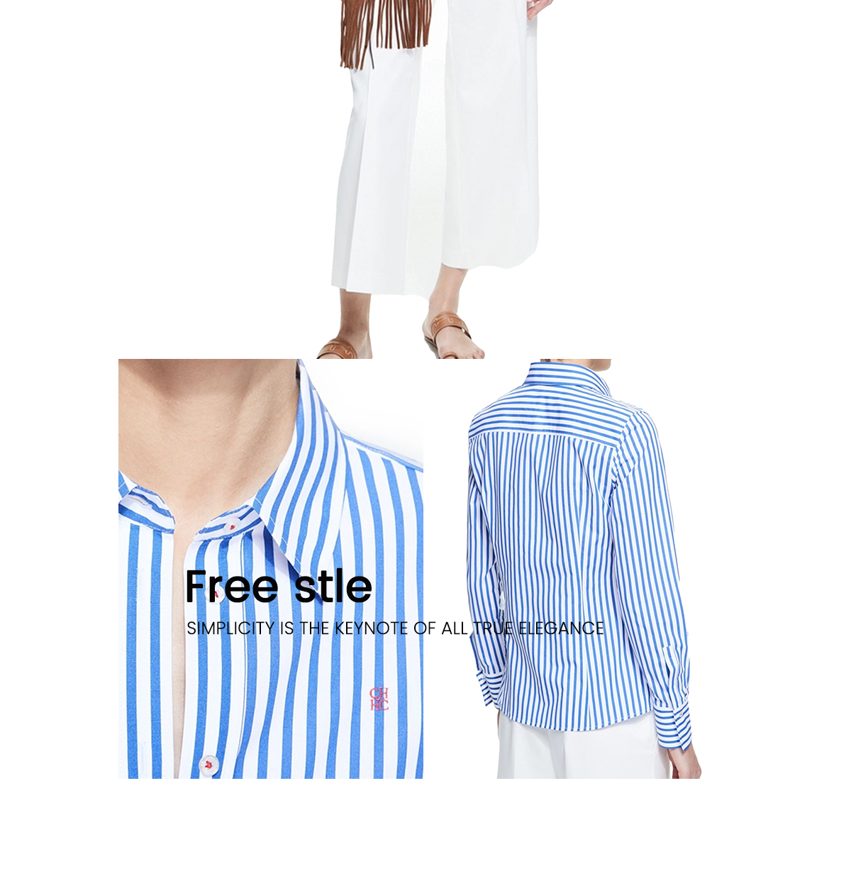 CHCH2025春夏休闲蓝色条纹时髦衬衫女上衣修身设计感通勤衬衣