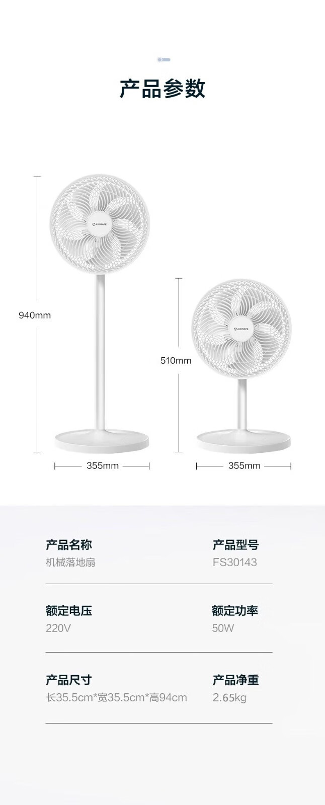 艾美特机械落地扇FS30143