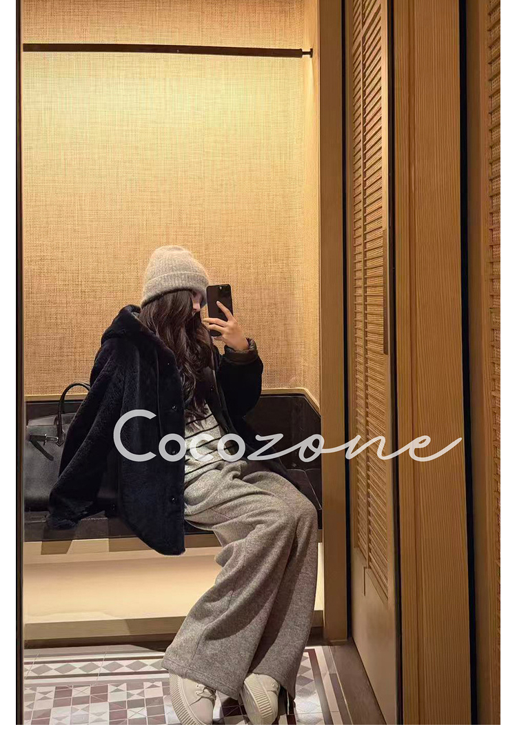 COCO ZONE 刘 一一 “暮光”100羊毛革连帽皮草外套 CD2A3024