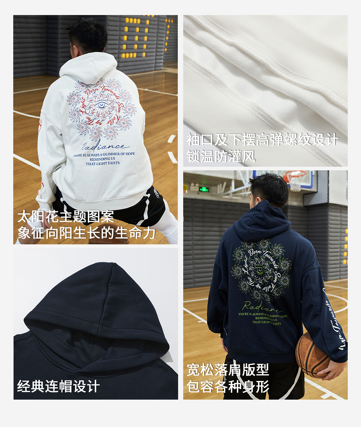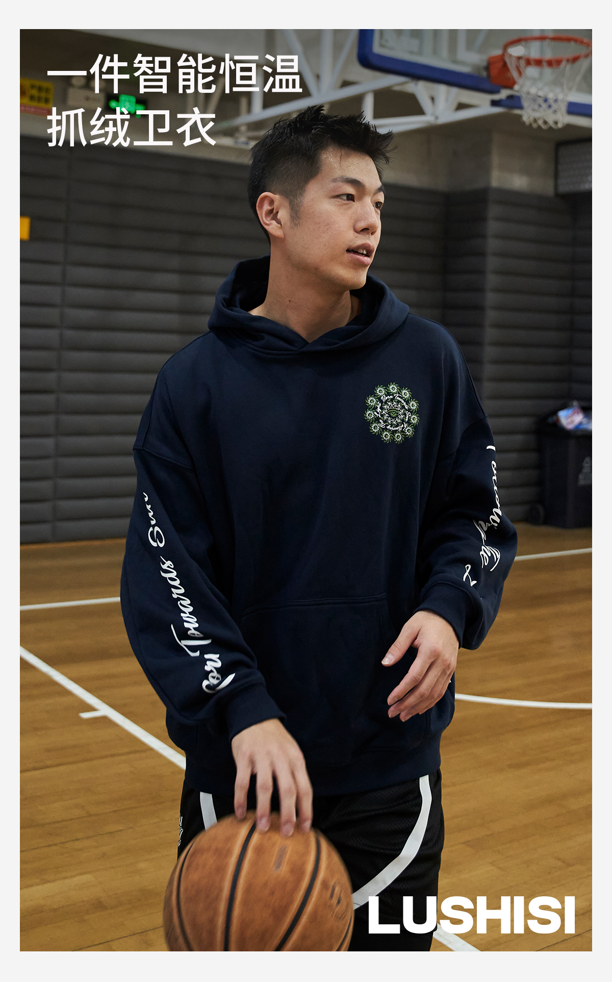 LUSHISI向阳而生主题秋冬恒温暖皮抓绒运动休闲连帽卫衣美式印花