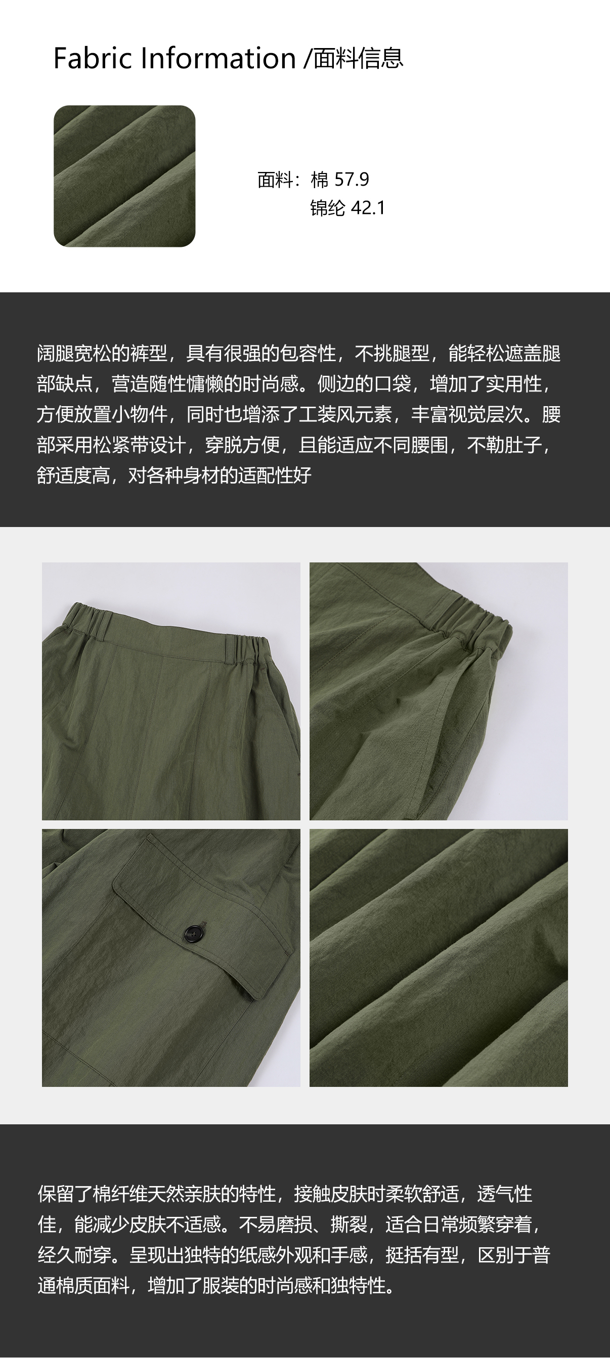 COCO ZONE 刘一一 松紧设计感褶皱阔腿工装休闲裤CD2A0393