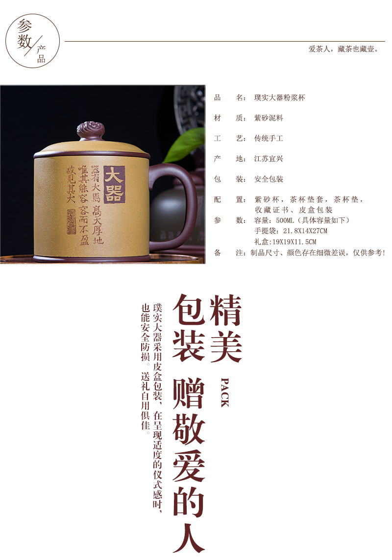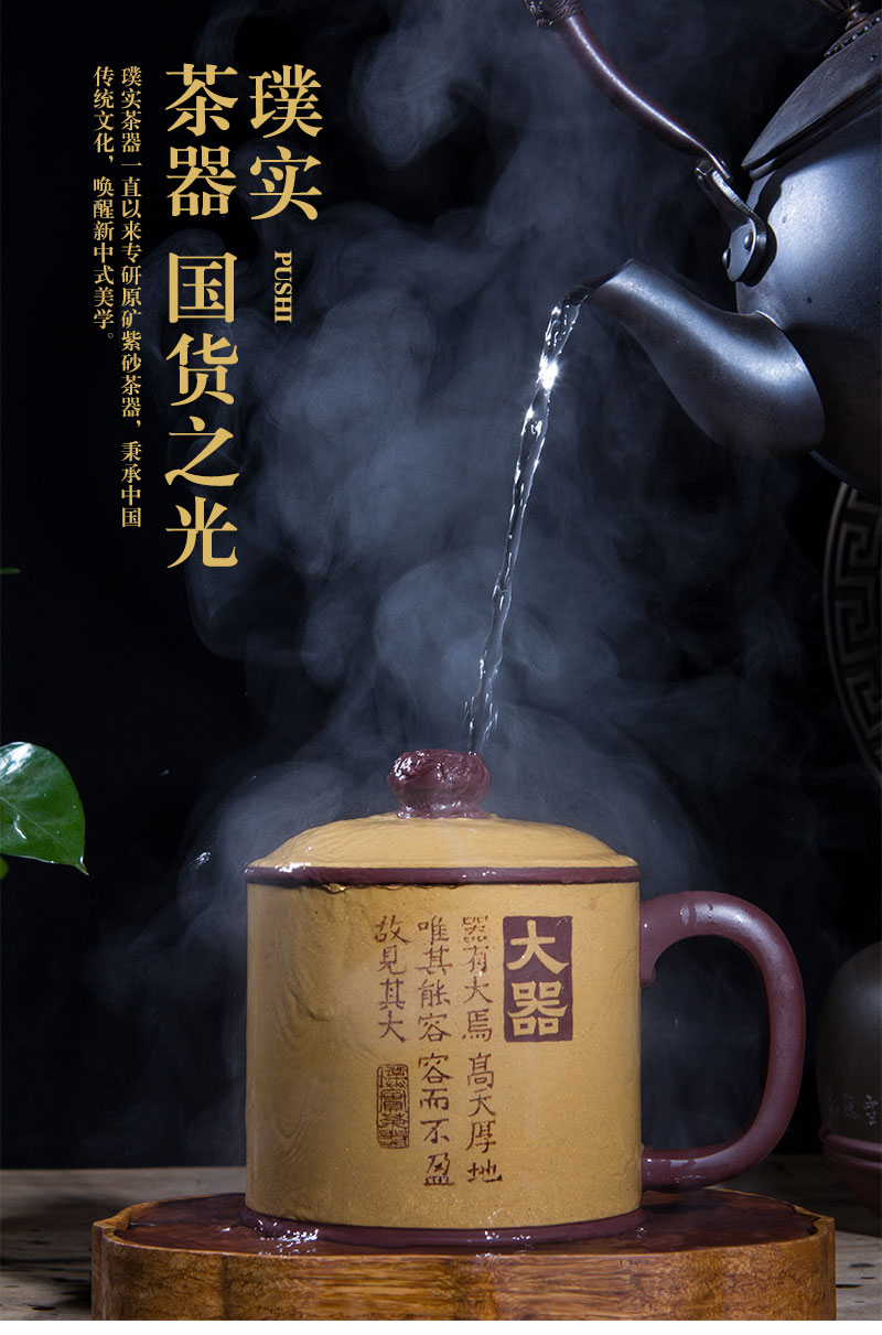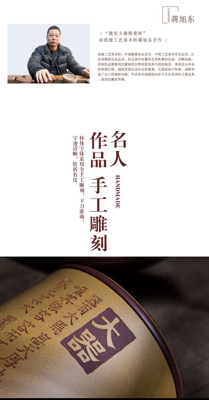 璞实茶器璞实大器宜兴原矿大师手工粉浆雕刻紫砂杯礼品定制泡茶礼盒装