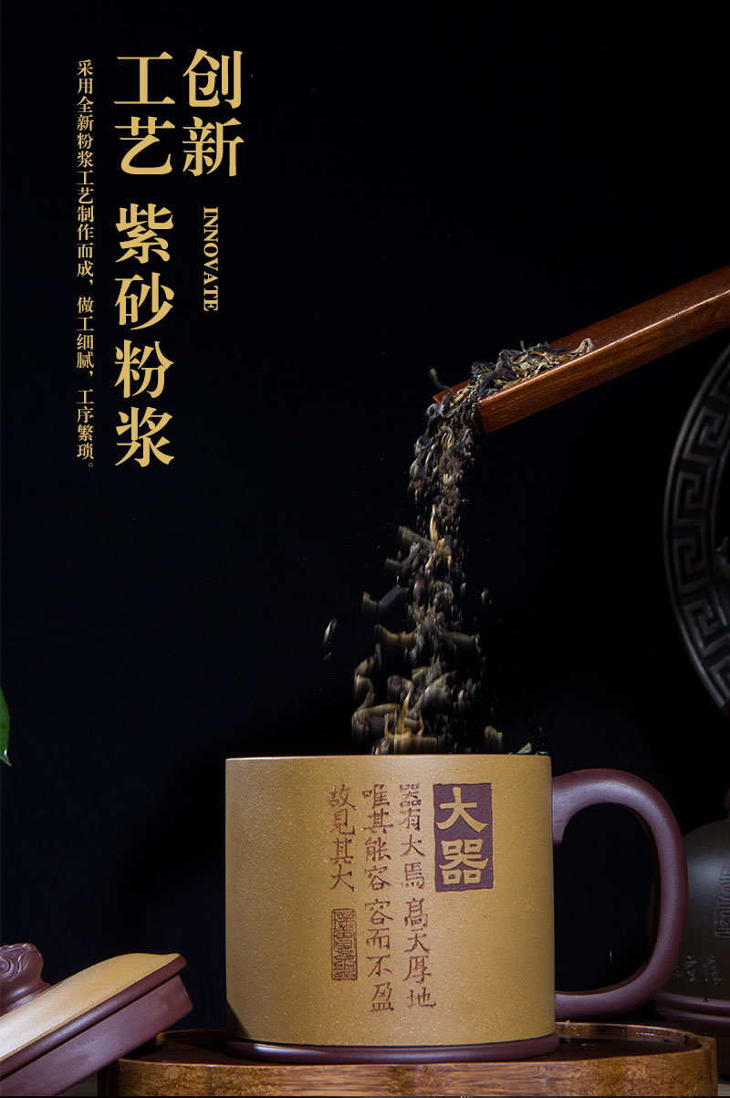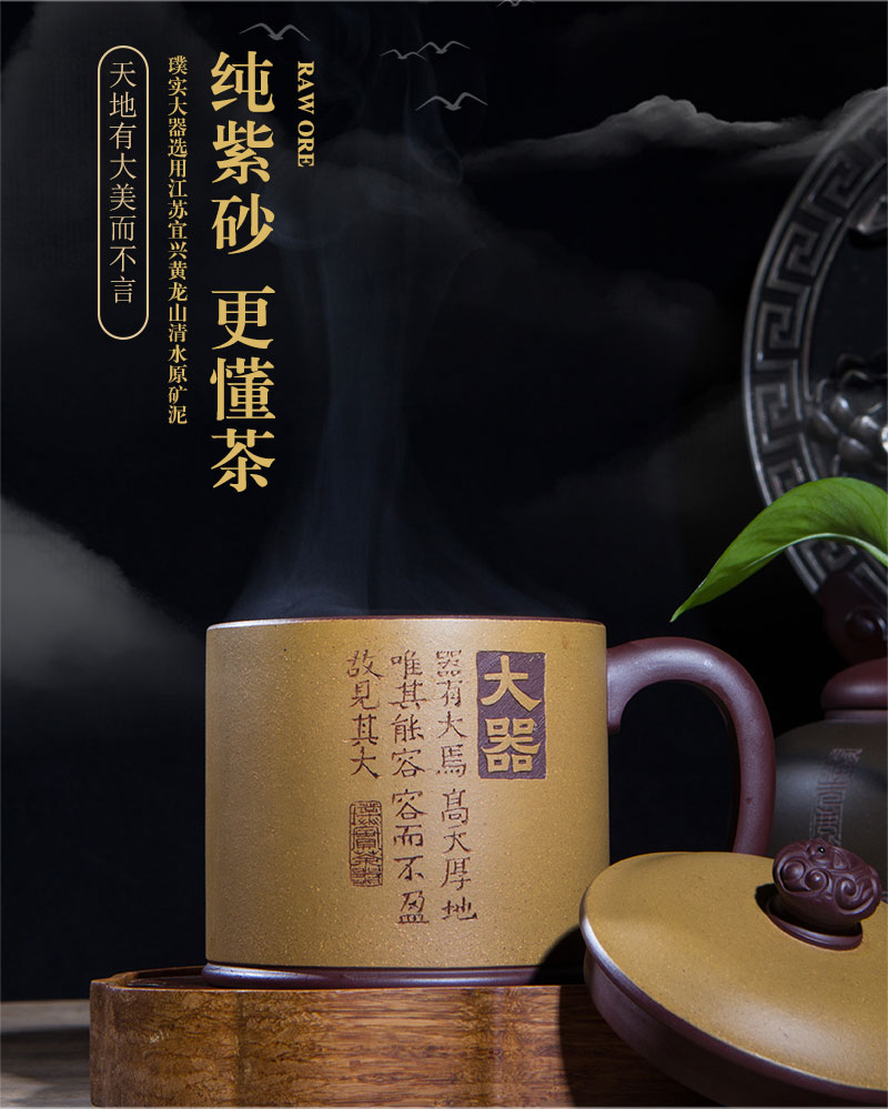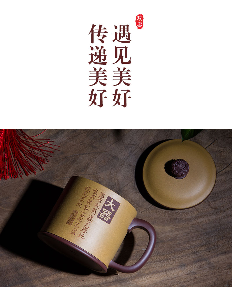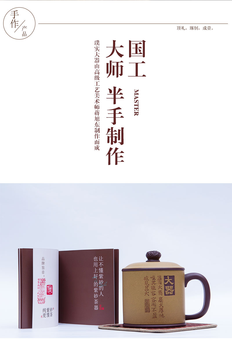 璞实茶器璞实大器宜兴原矿大师手工粉浆雕刻紫砂杯礼品定制泡茶礼盒装