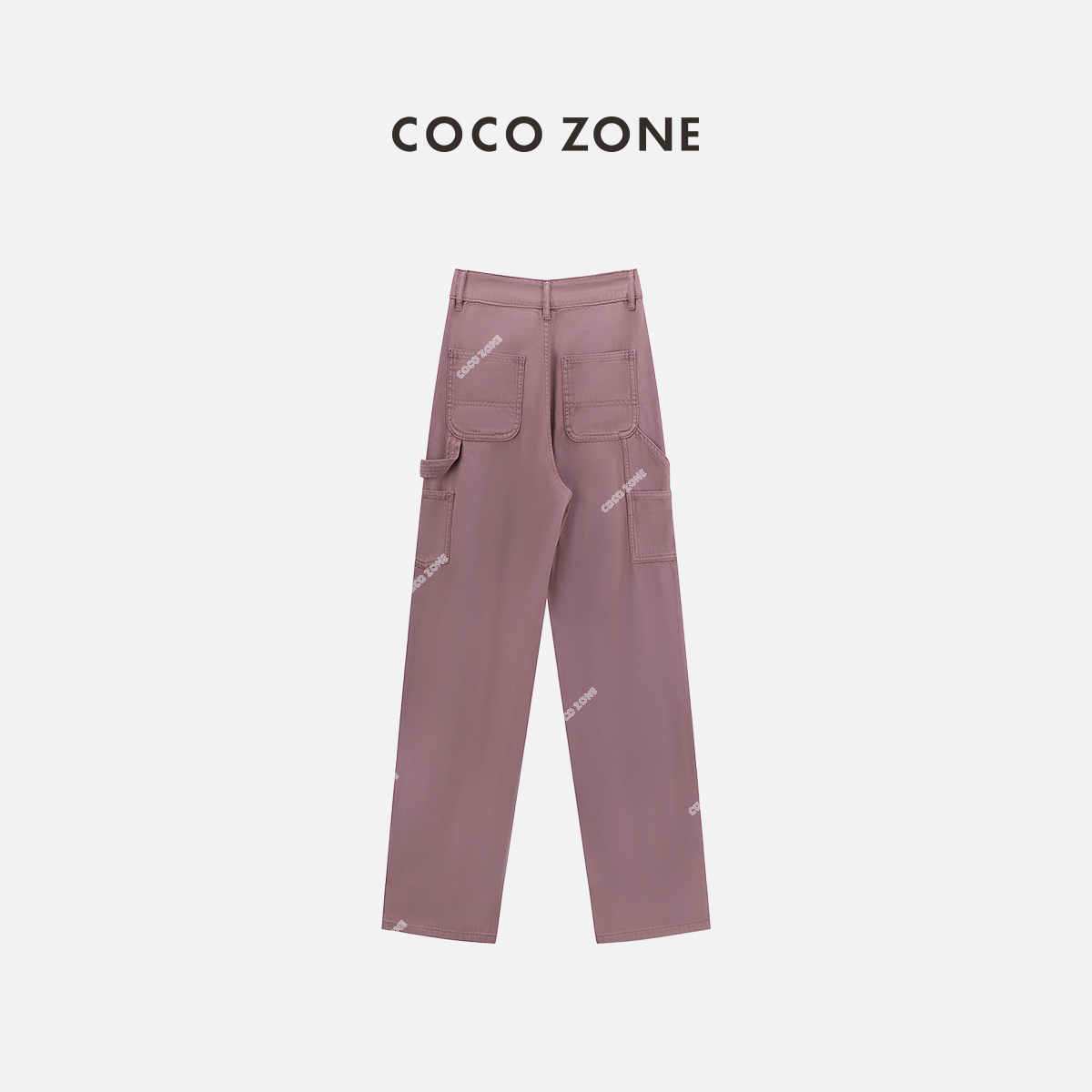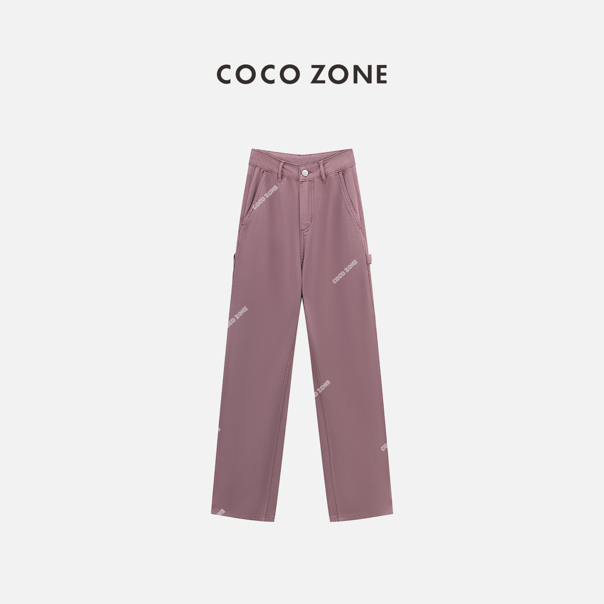 COCO ZONE "梅子色”夏季简约纯色直筒阔腿裤休闲牛仔裤CC1B1198