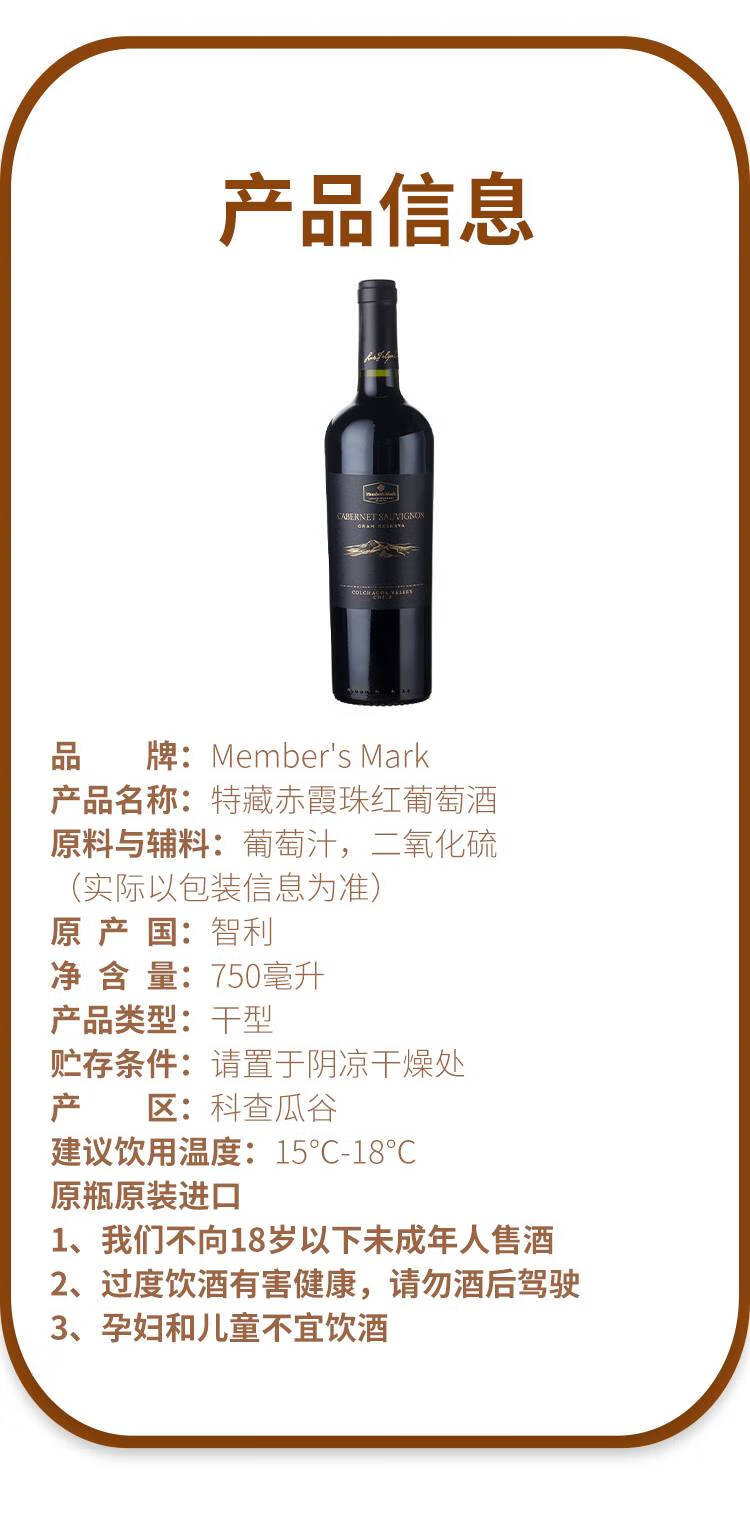 Member's Mark 智利进口 特藏赤霞珠红葡萄酒 750ML【7天内发货】