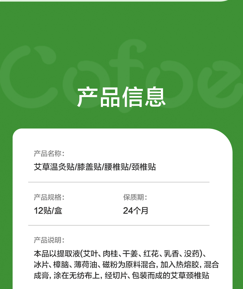 1盒装 可孚艾草颈椎膝盖腰肩贴热敷 1盒12贴