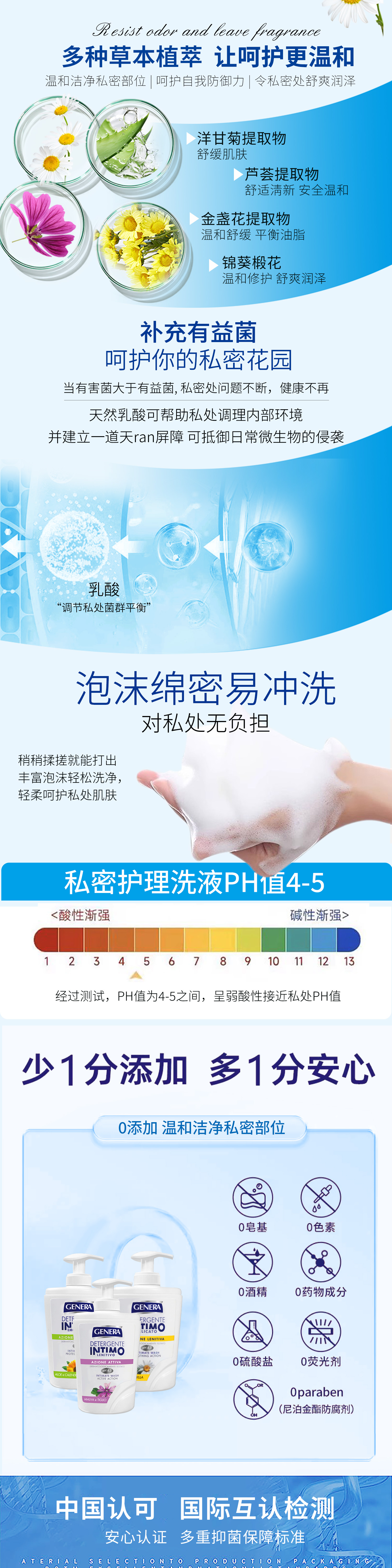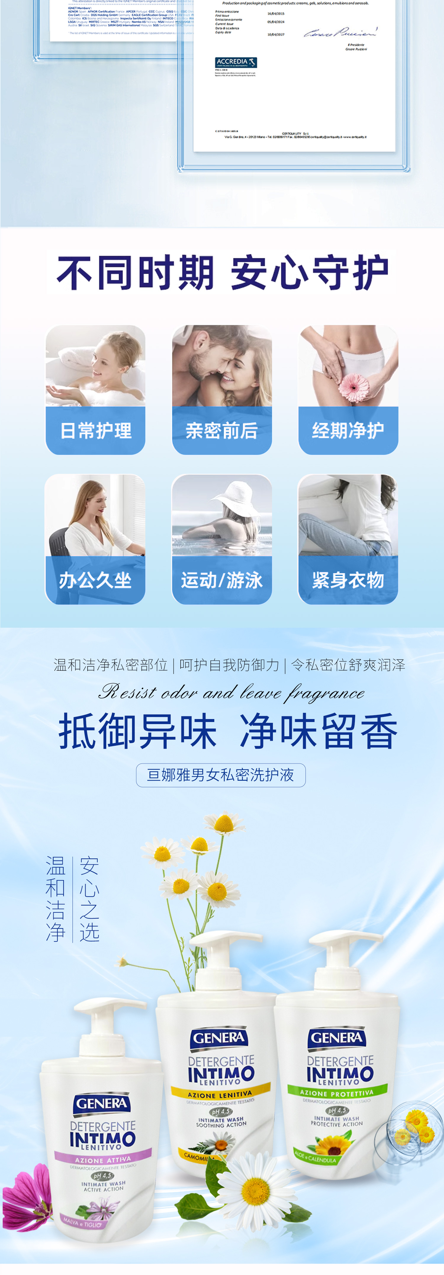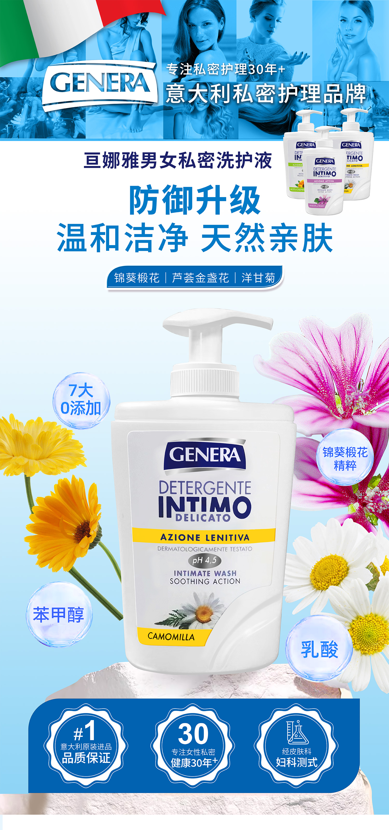 【2瓶划算】GENERA亘娜雅 意大利原装进口男女私处护理液 温和洁净 天然亲肤