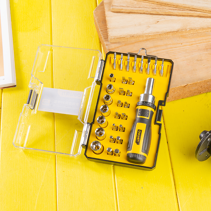 得力DL1130棘轮手柄精密螺丝刀(黄)