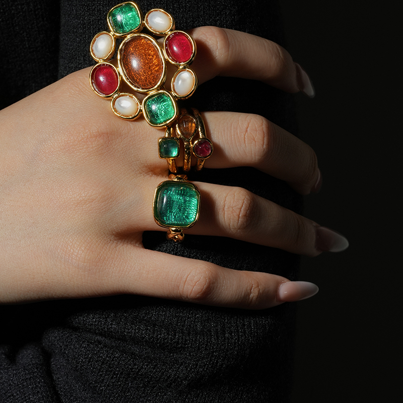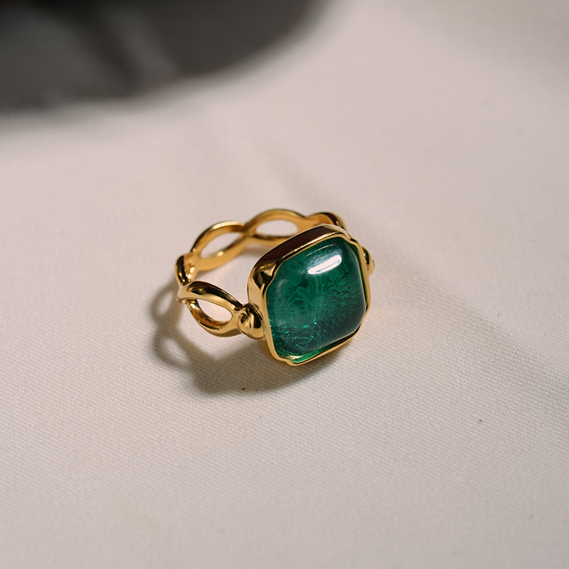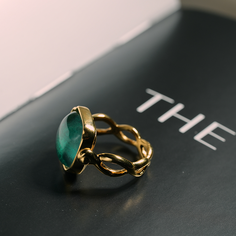 北京仓|Goossens Paris-CABOCHONS-绿色 梭形交叉 岩石水晶 戒指[法国设计师]