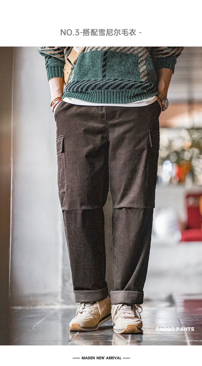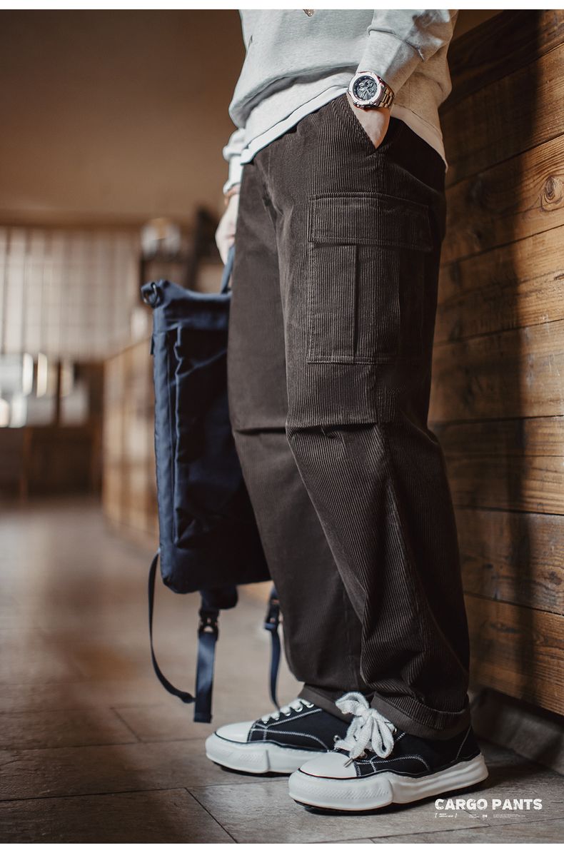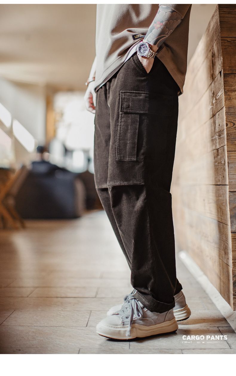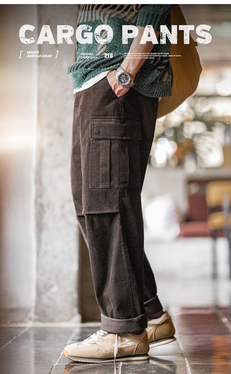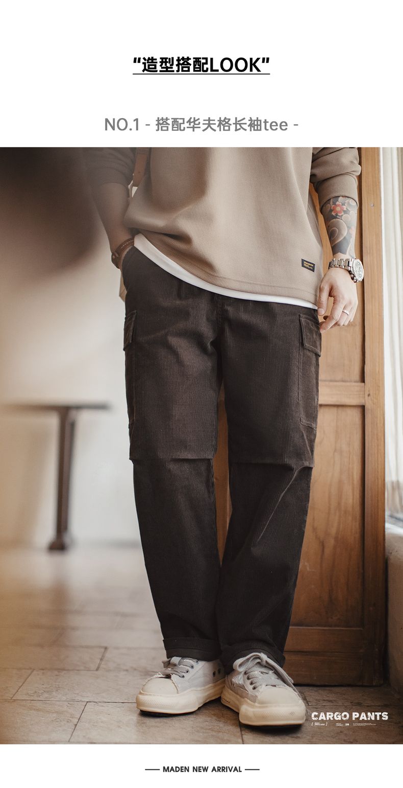 工装优选美式复古灯芯绒风琴褶休闲裤宽松廓形纯棉直筒裤子男秋冬
