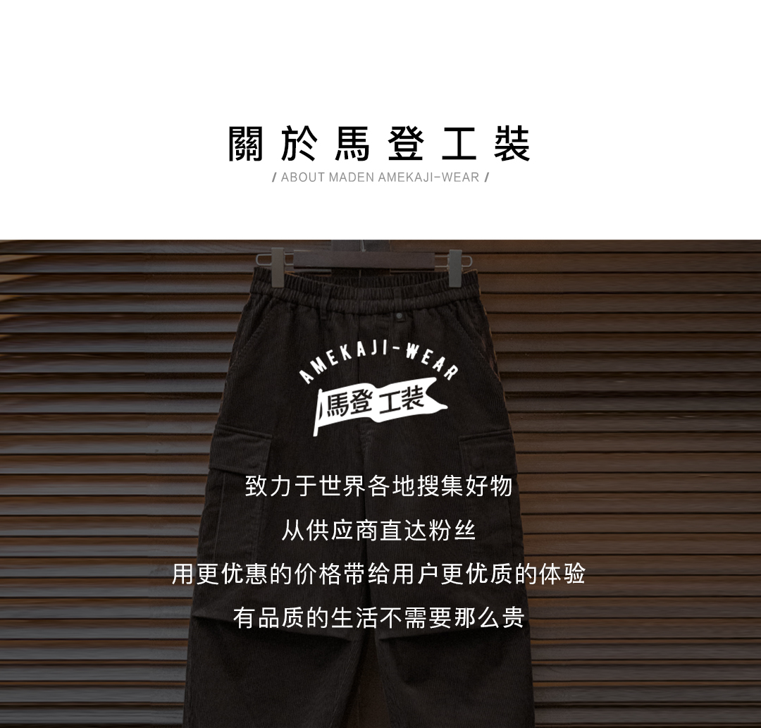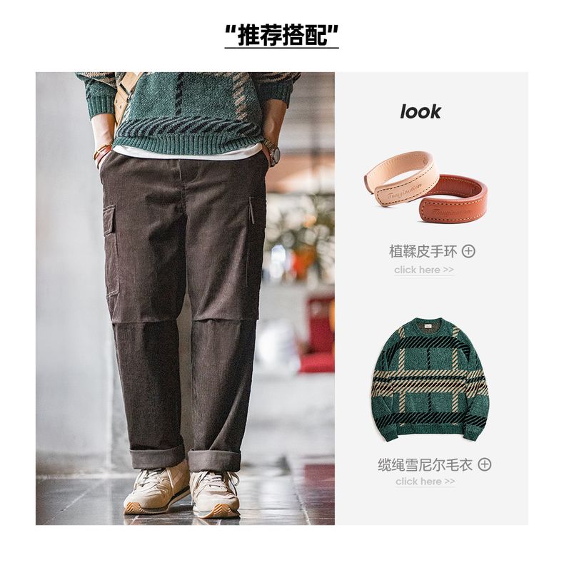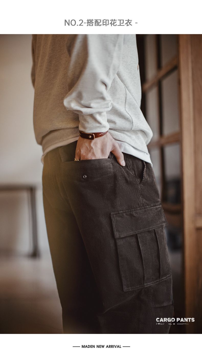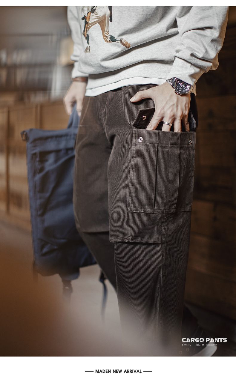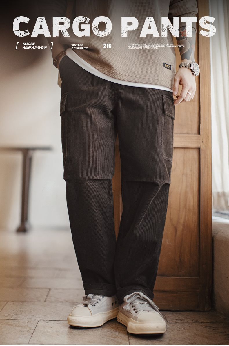 工装优选美式复古灯芯绒风琴褶休闲裤宽松廓形纯棉直筒裤子男秋冬