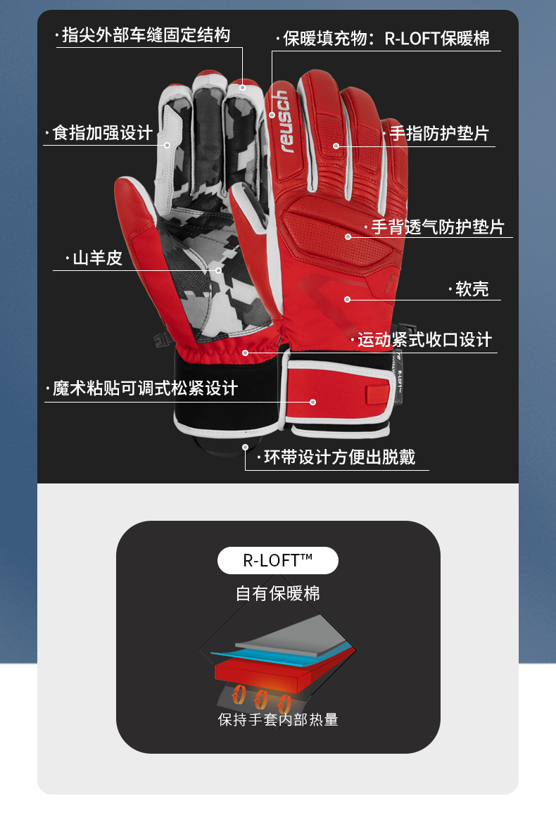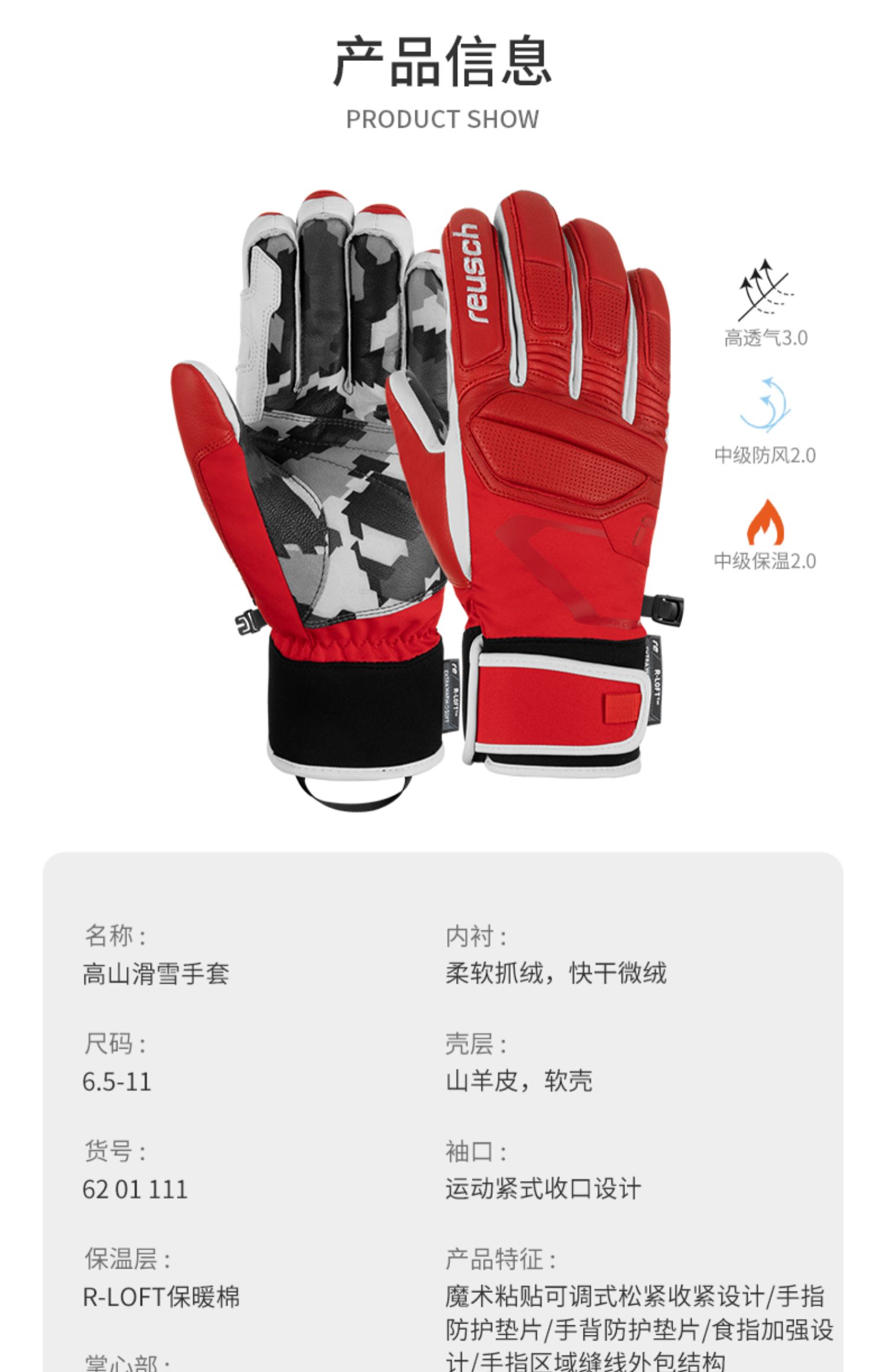 Reusch炫驰真皮男女马尔科澳德玛特冠军联名高山滑雪手套6201111