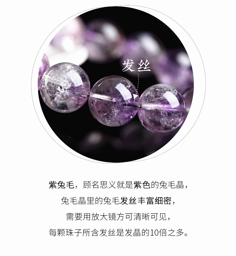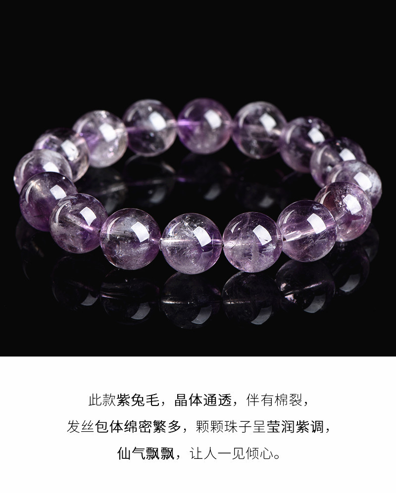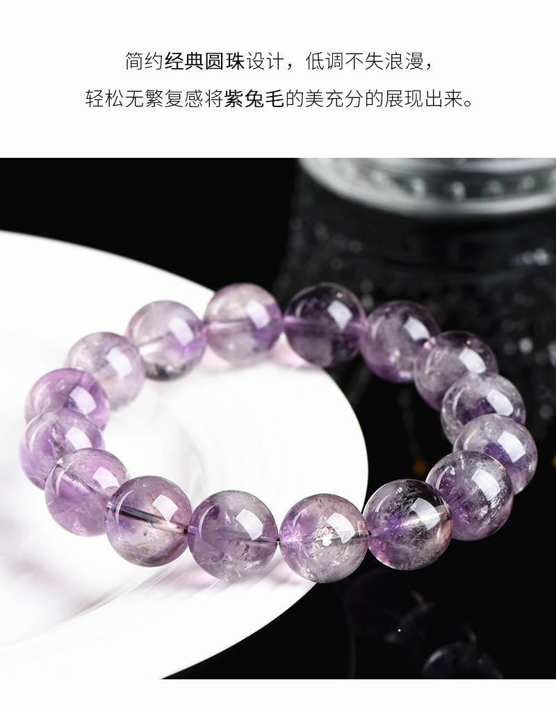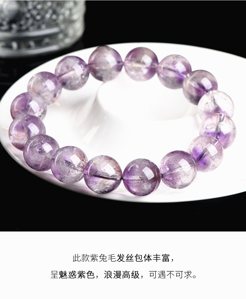 【仙气飘飘】天然紫水晶兔毛圆珠手链手串 梦幻紫色 浪漫高级 兔毛发丝绵密繁多 可遇不可求