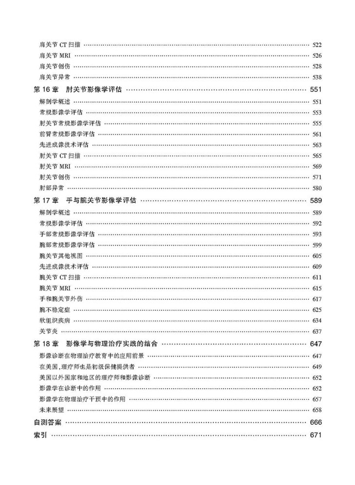 本书每章均包含骨骼学和结缔组织基本结构概述,并加入了CT和MRI等影像学新技术,对读者需要了解的特殊病理学知识也进行了阐述。这种编排方式使得读者不论从哪个章节入手,均易于理解本书的内容。本书各章末均包含人体各部位最常见的外伤和病理学内容,并给出具体病例解析,包括病史、影像检查和体格检查、治疗和预后等,且均有图示。各章末还有 “要点总结”和 “自测”内容,有助于读者抓住重点,并通过图像解读,考察自身实践能力。