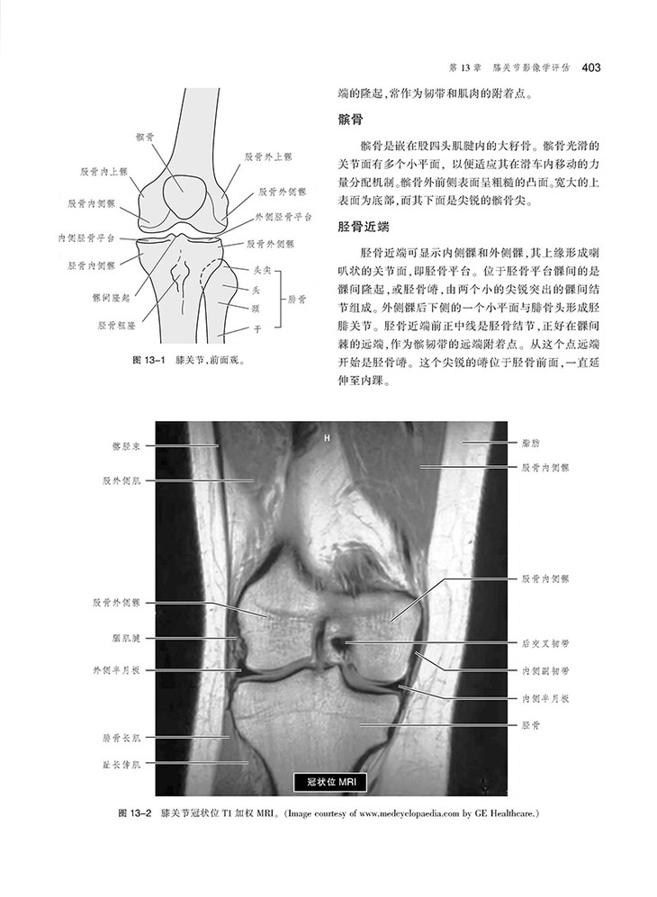 •MRI解剖部分可使读者了解关节各层面的断层解剖结构,且对重点解剖结构做了标注。