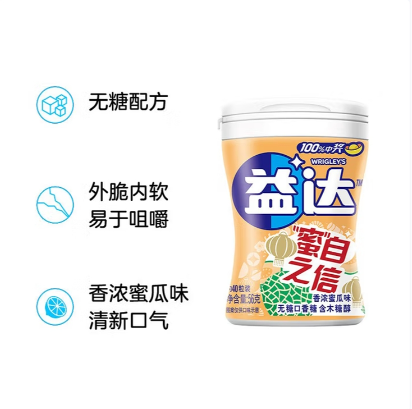 益达木糖醇无糖口香糖(香浓蜜瓜味)约40粒/瓶装