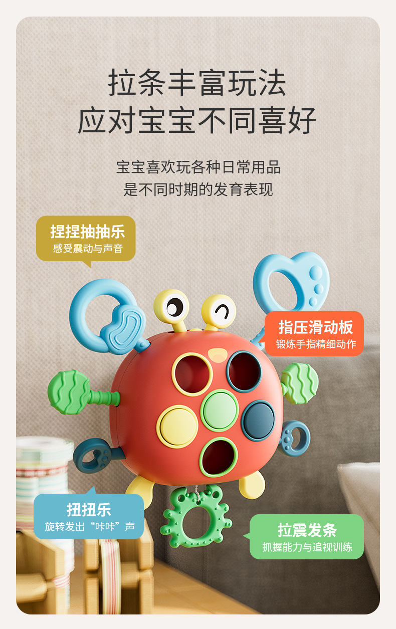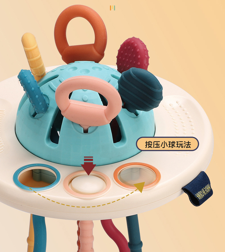 【萌趣小飞碟 玩转手心 宝宝安全啃咬】婴儿手部精细动作训练手指拉拉乐抽抽乐6个月宝宝抓握训练