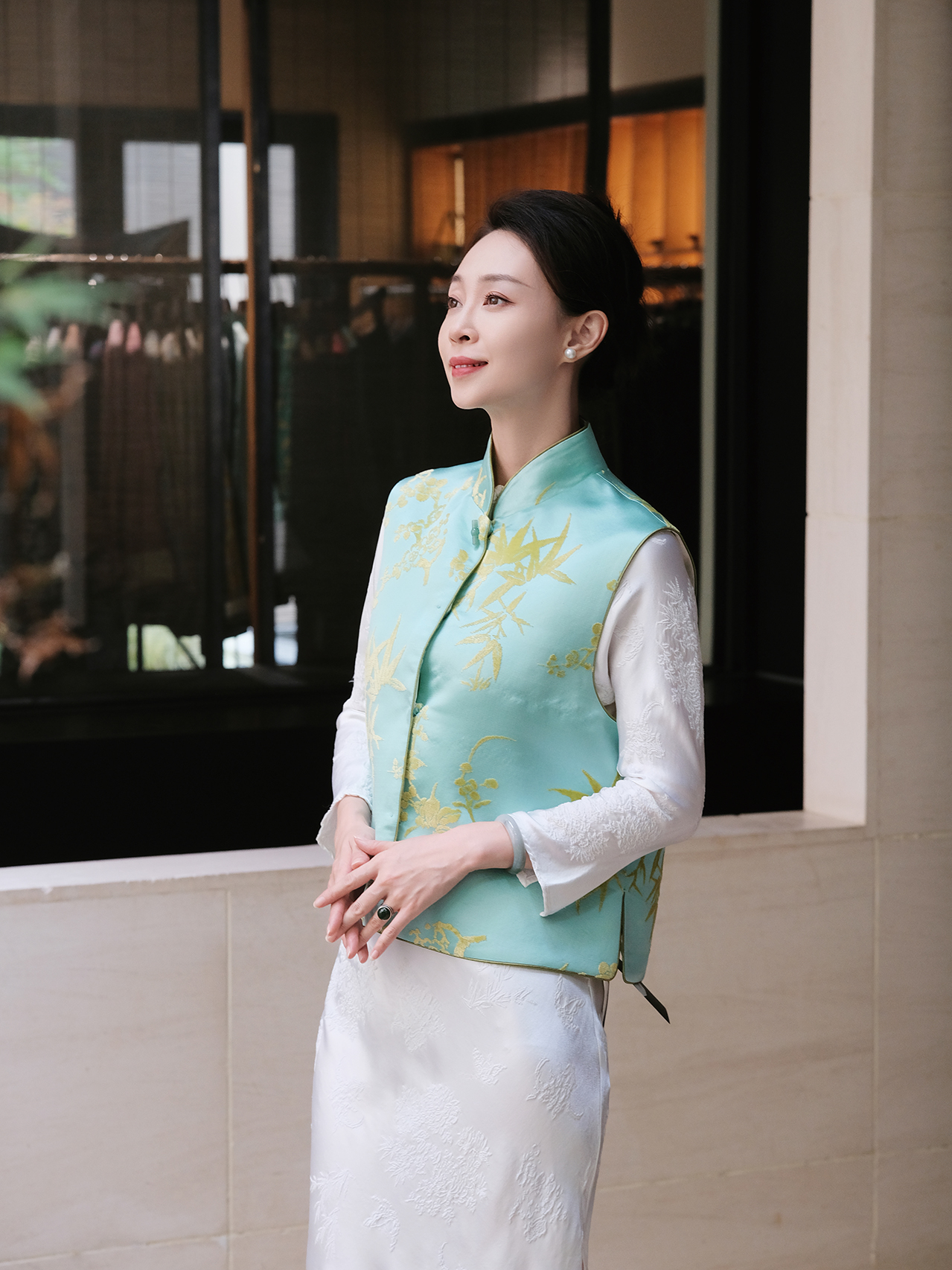 盛唐牡丹| 玉绿底色真丝漳绒马甲(里冠乐绉)