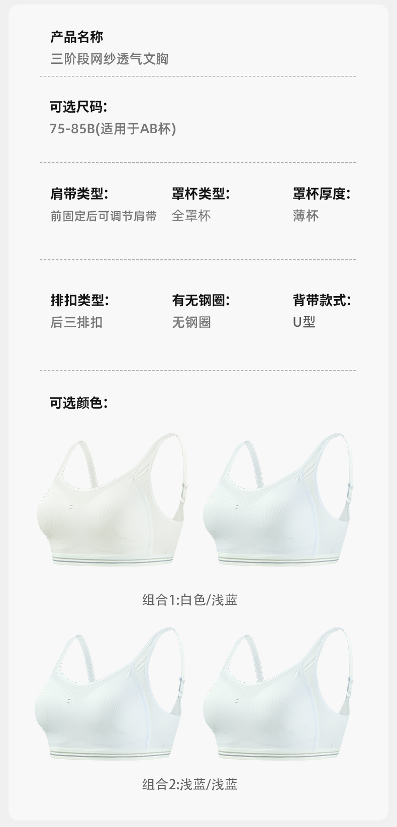 雅黛俪 【16-18岁 2件装】3阶少女文胸网纱轻薄洞洞杯发育期内衣